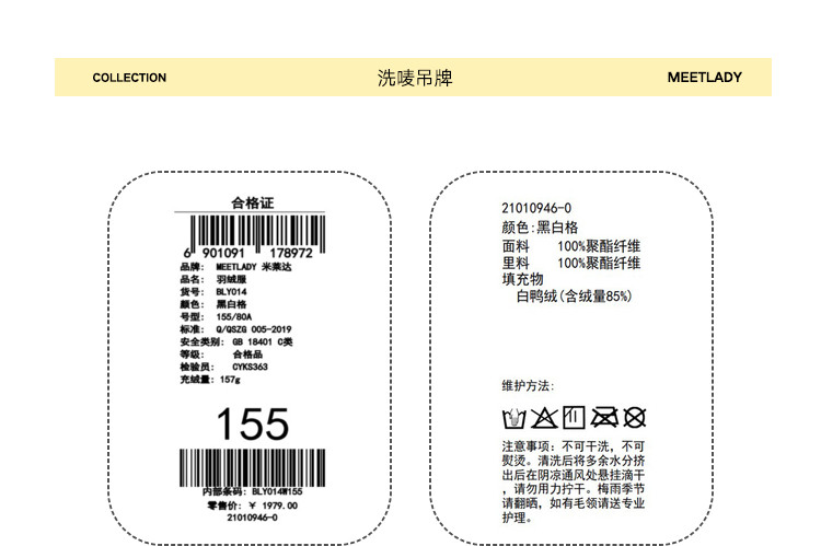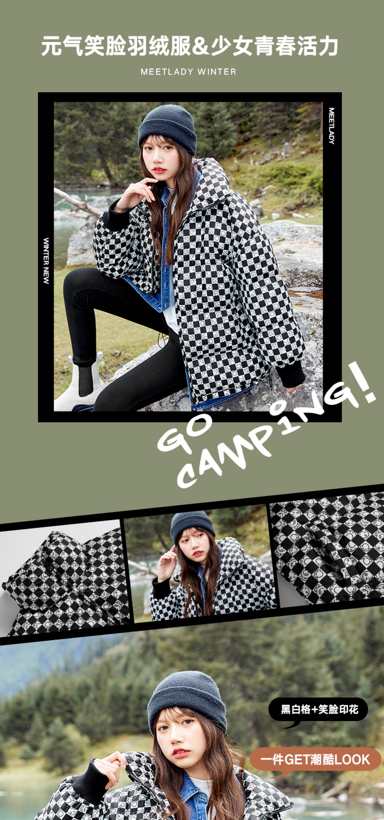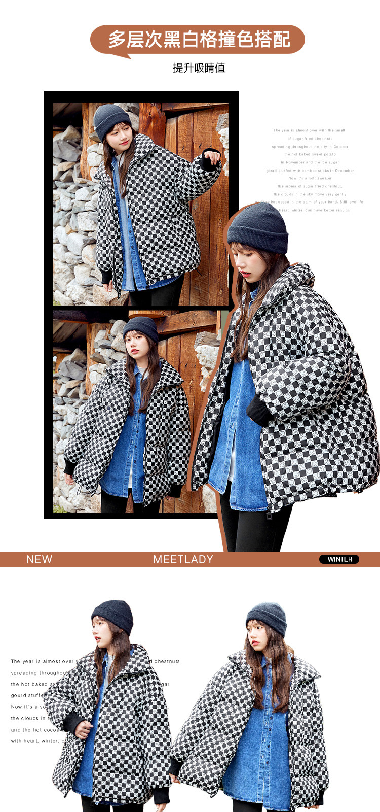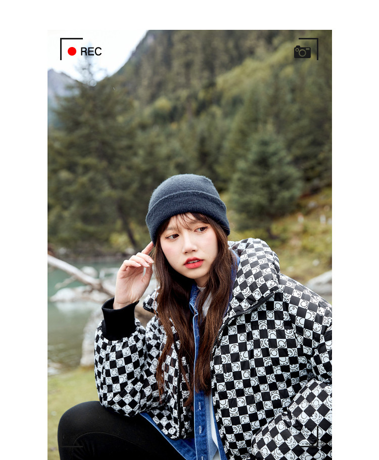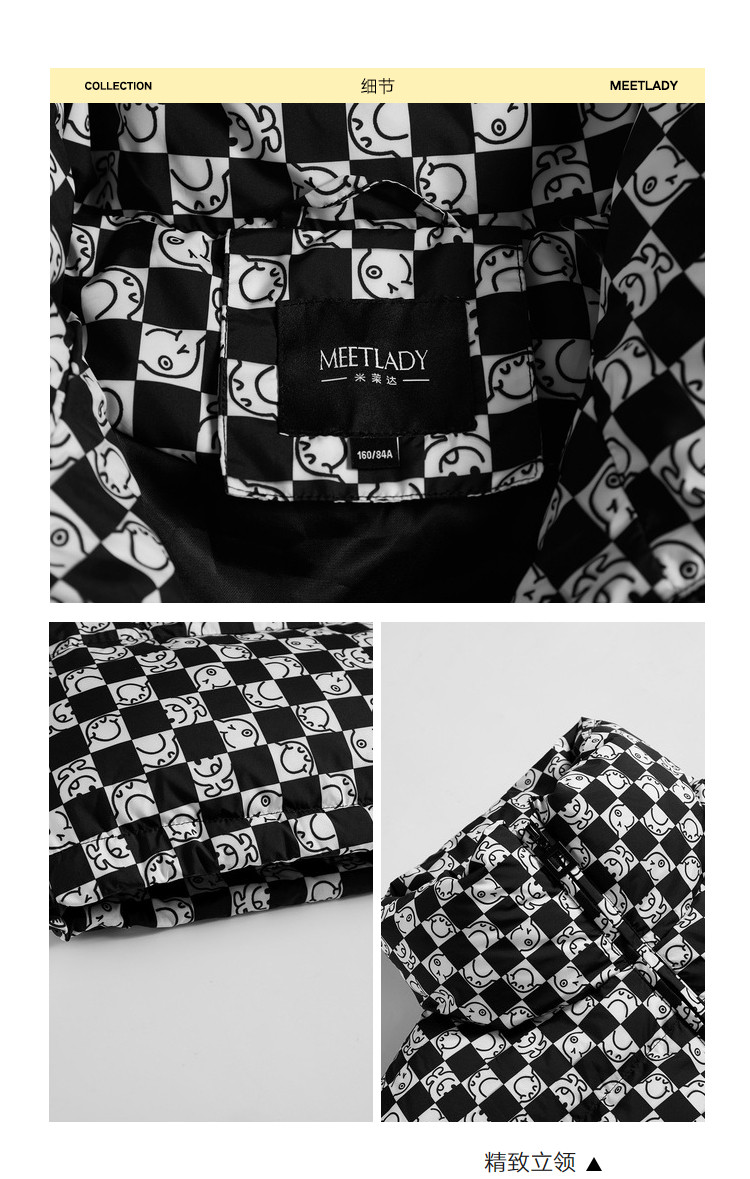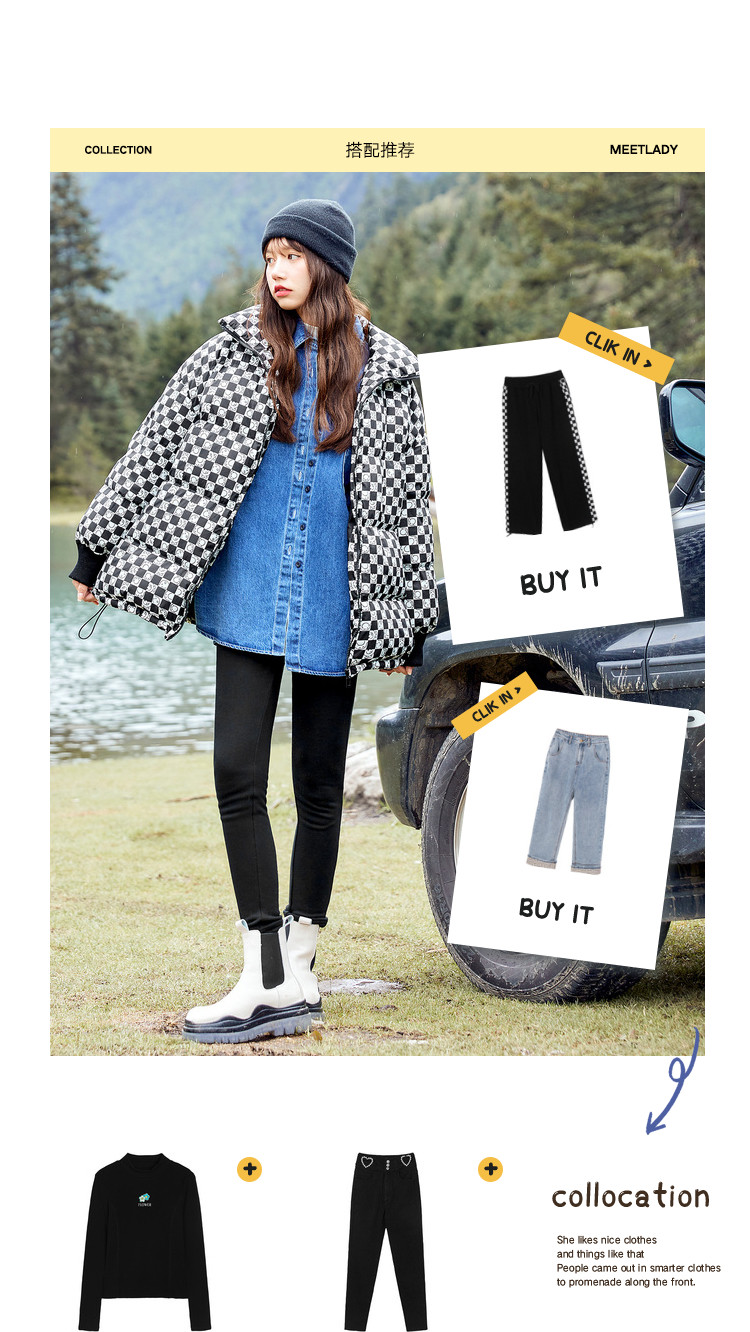 商品名称:冬季热卖格纹羽绒服女时尚宽松白鸭绒长袖加绒保暖外套潮流款 068884