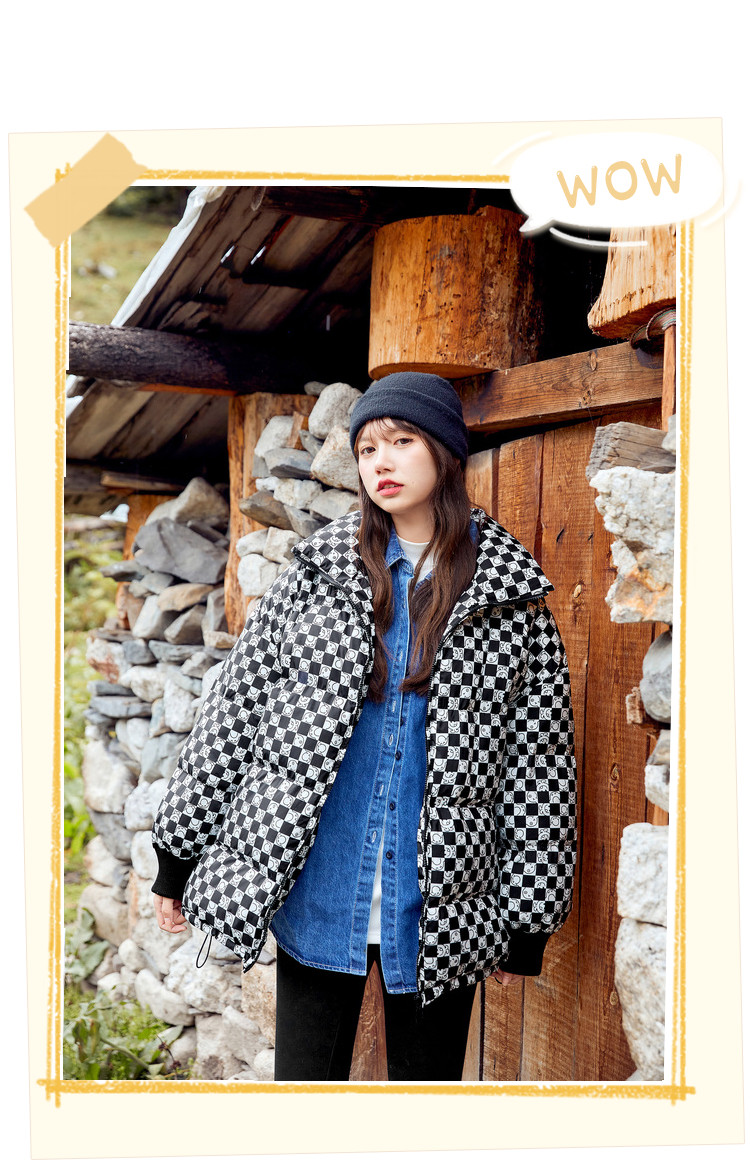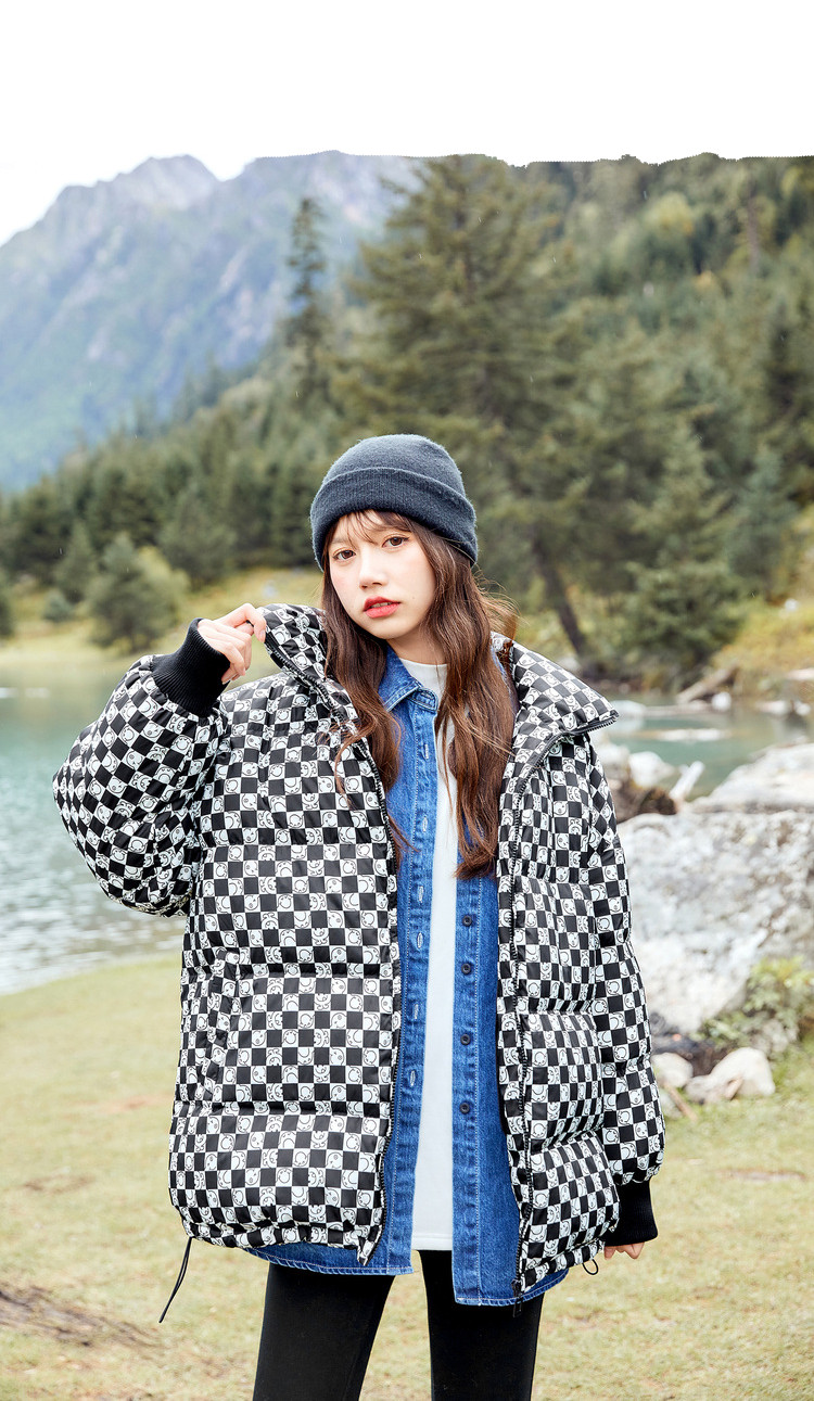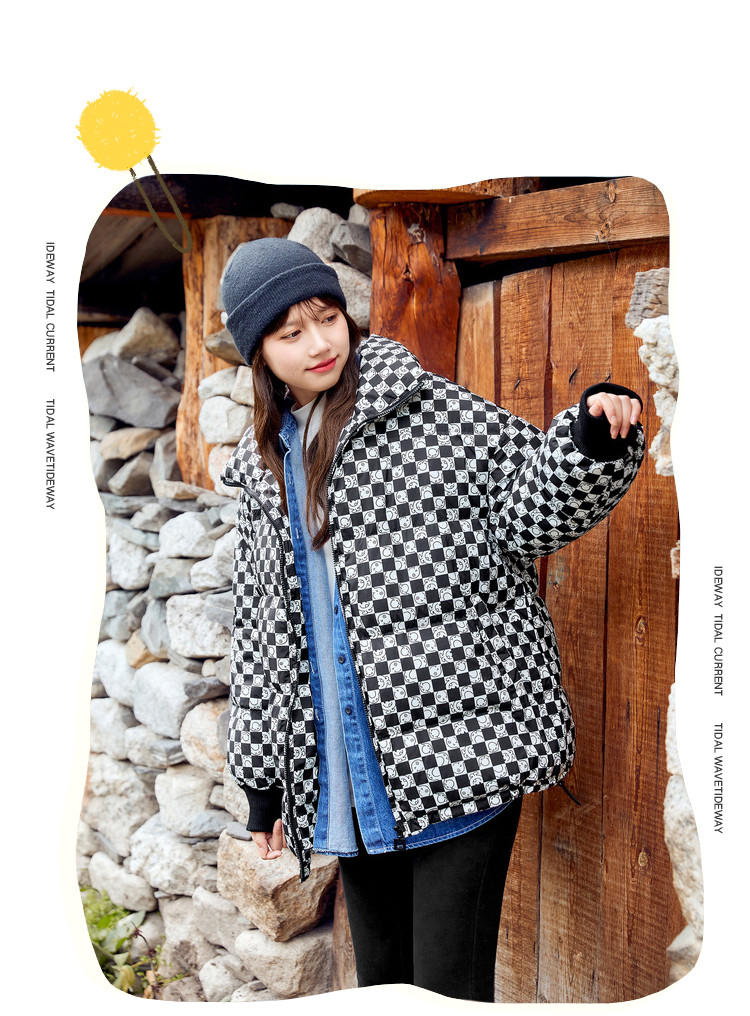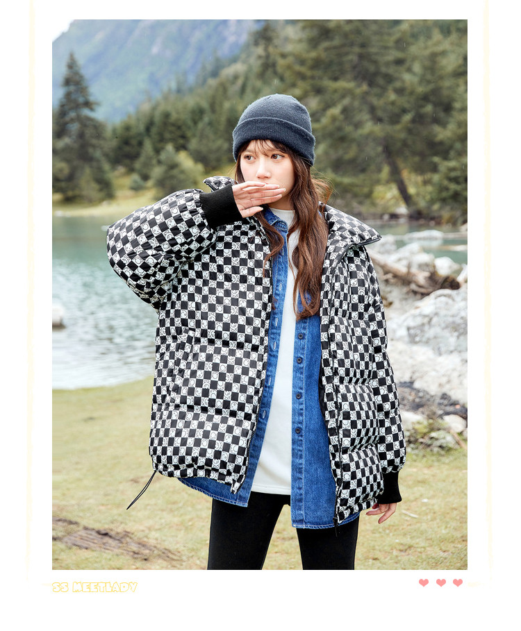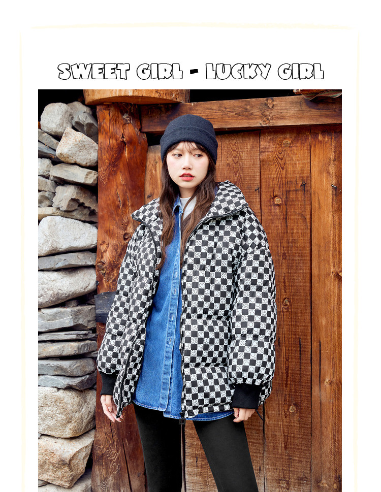 冬季热卖格纹羽绒服女时尚宽松白鸭绒长袖加绒保暖外套潮流款 068884