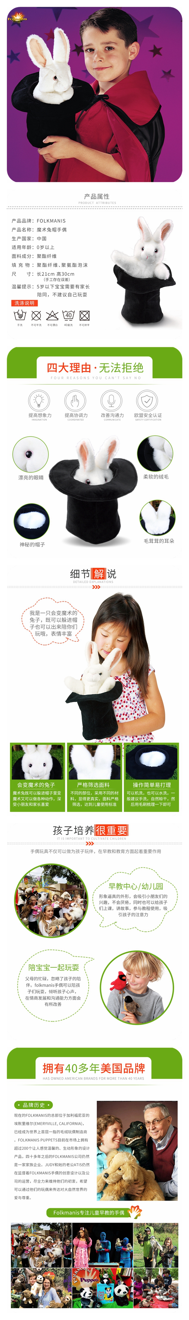 商品名称:福克曼尼斯/FOLKMNAIS 仿真互动教育手偶兔帽手偶