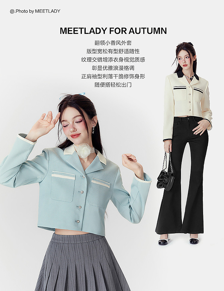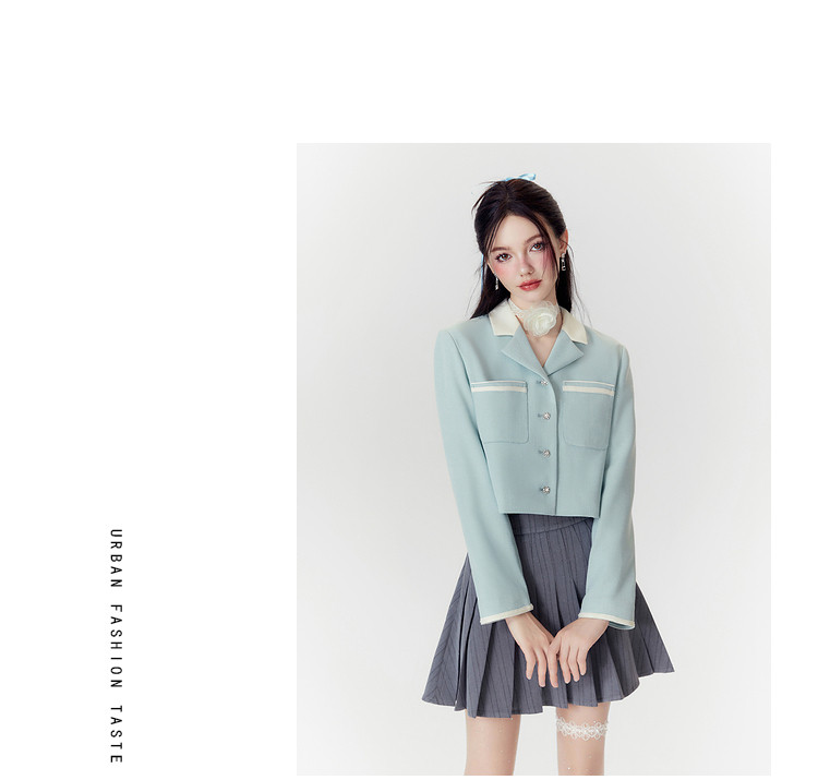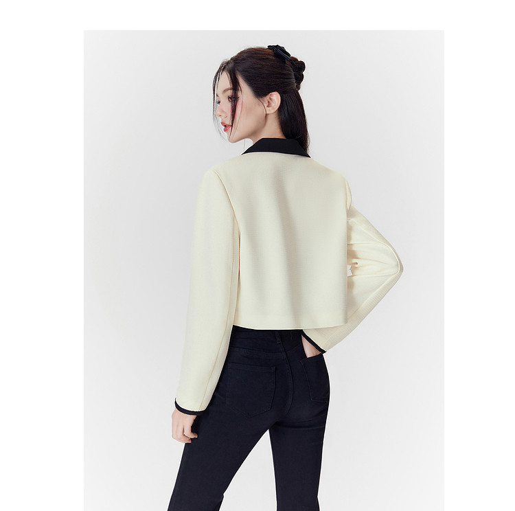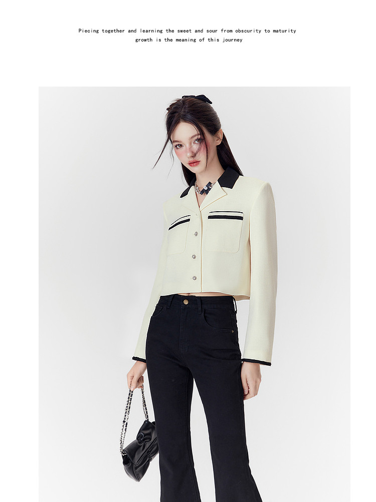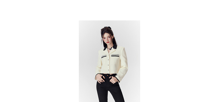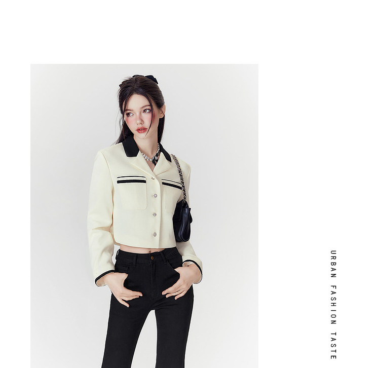 商品名称:春秋小香风翻领淑女气质撞色短外套设计感上衣 283412