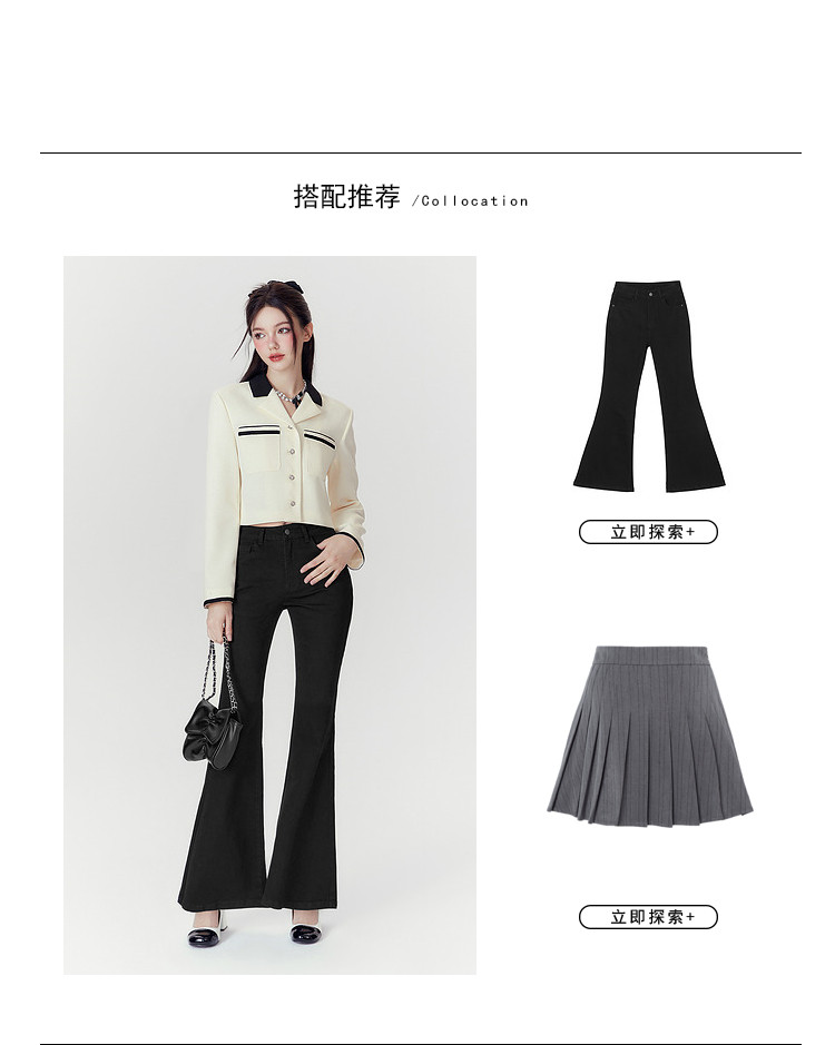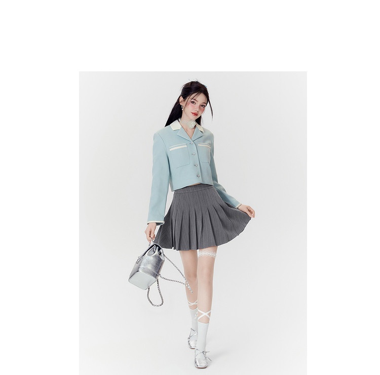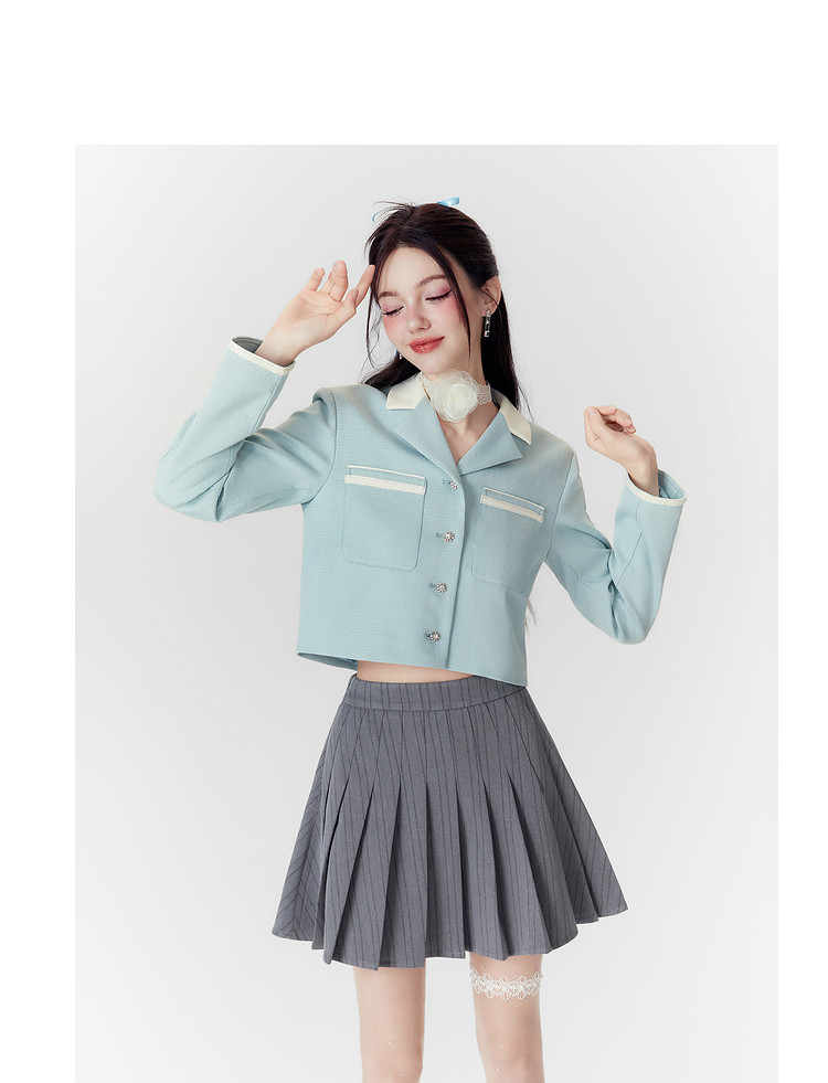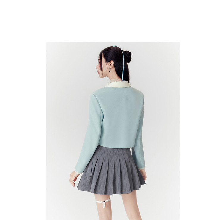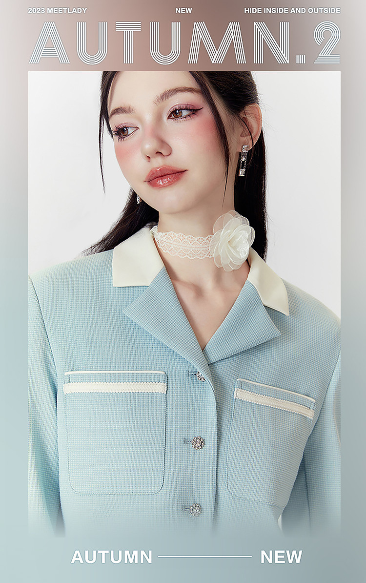 商品名称:春秋小香风翻领淑女气质撞色短外套设计感上衣 283412