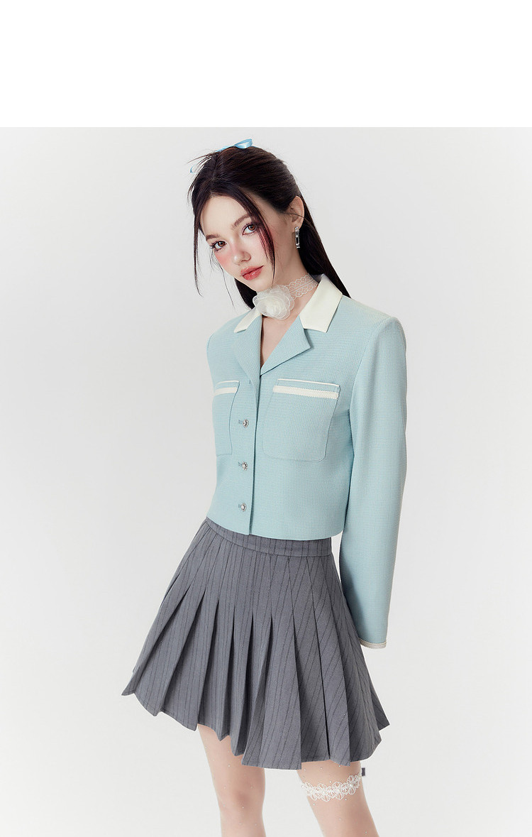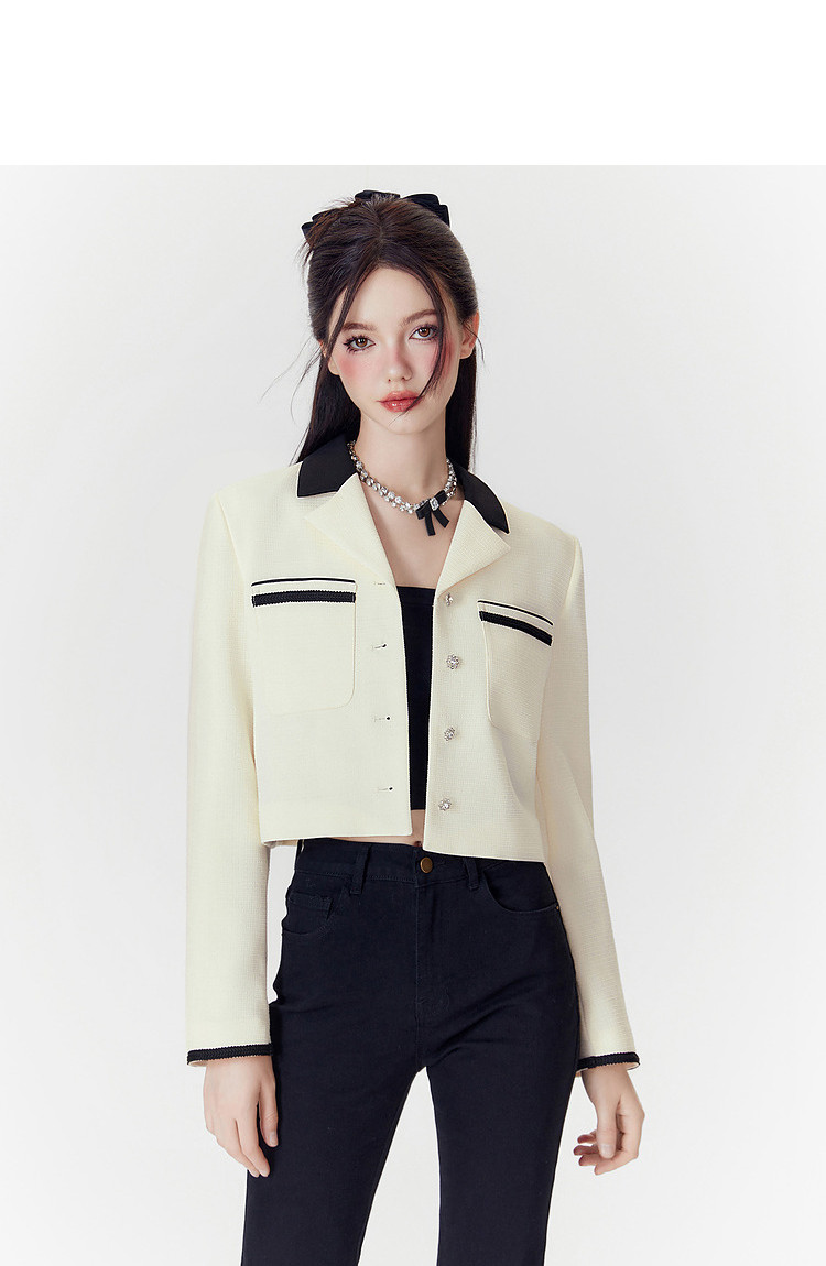春秋小香风翻领淑女气质撞色短外套设计感上衣 283412