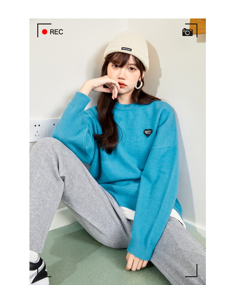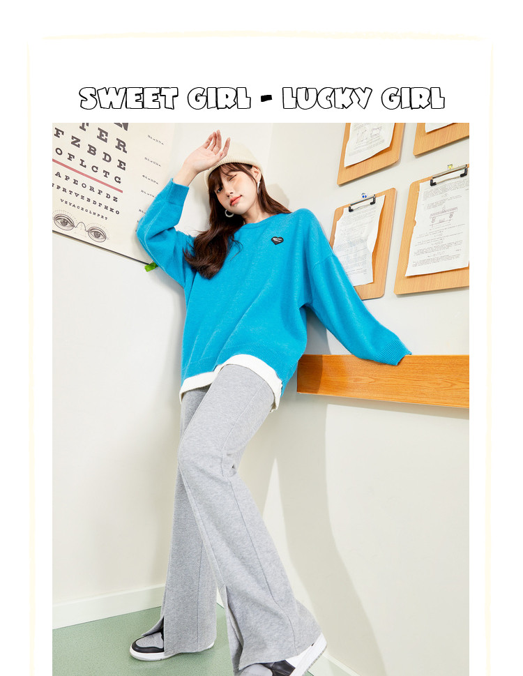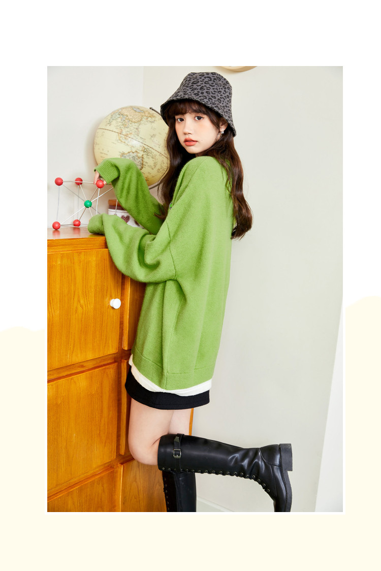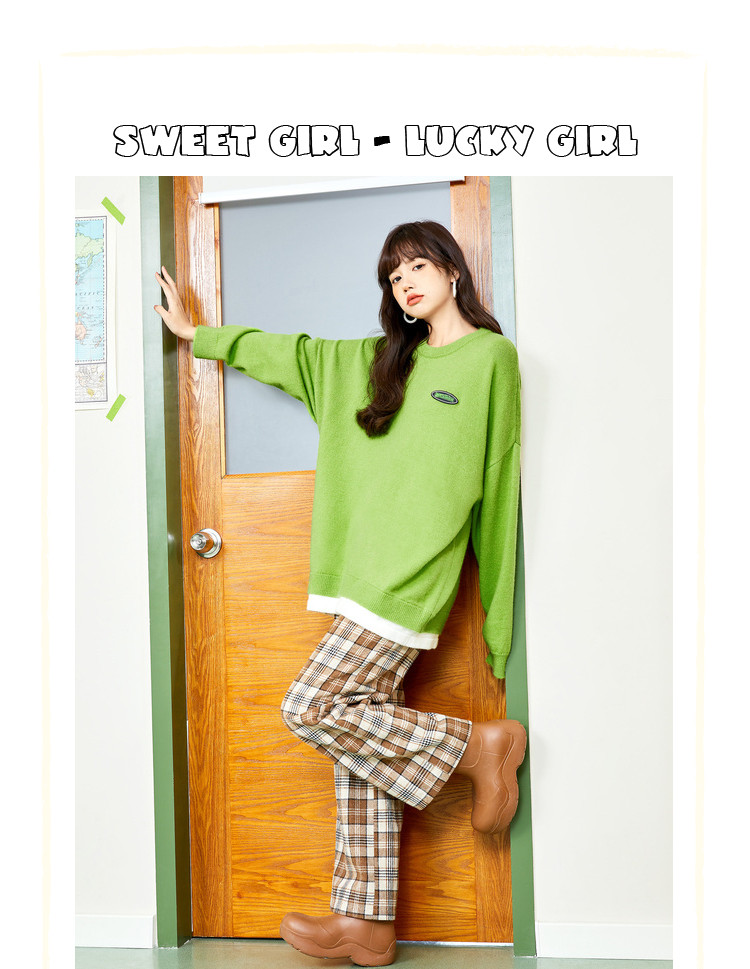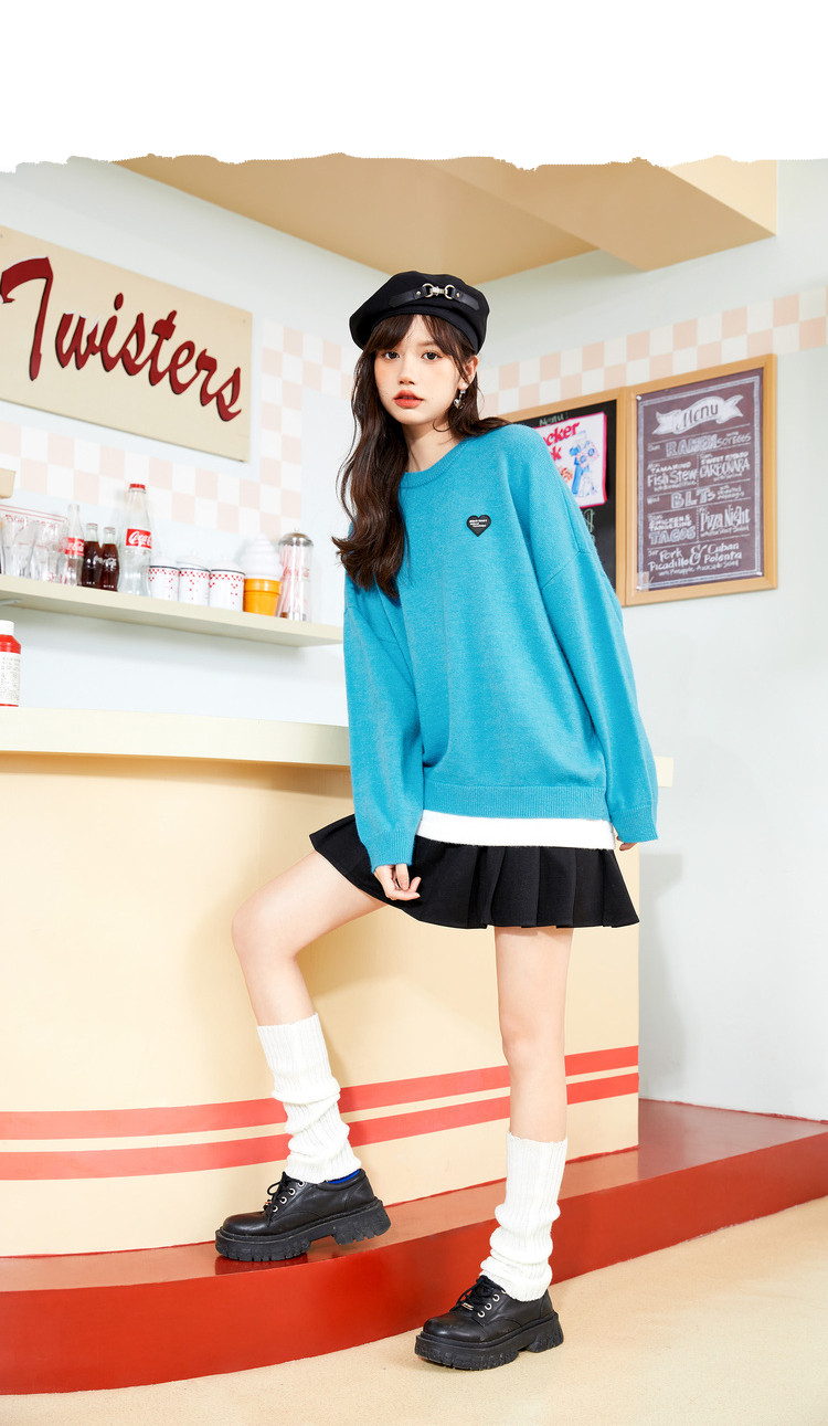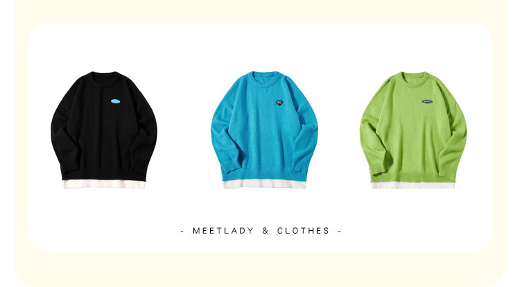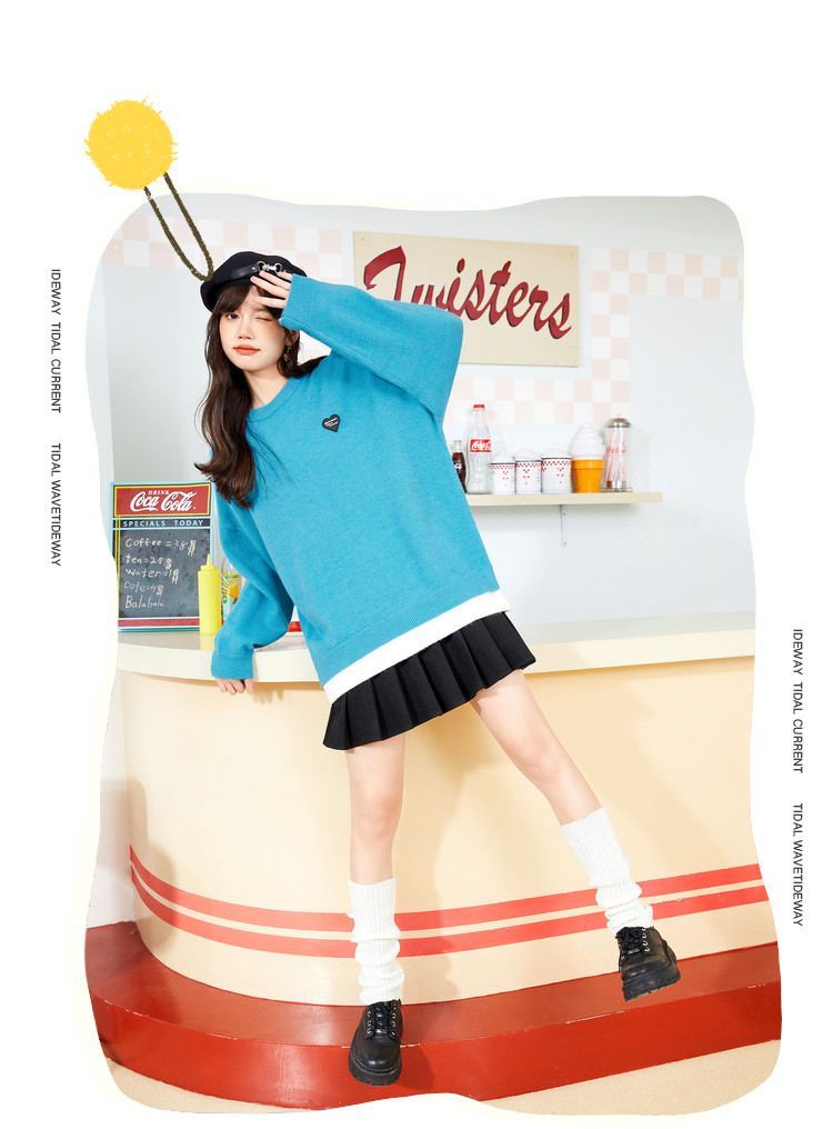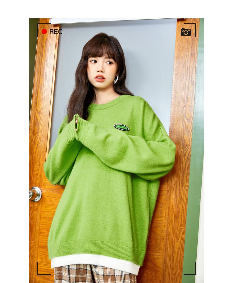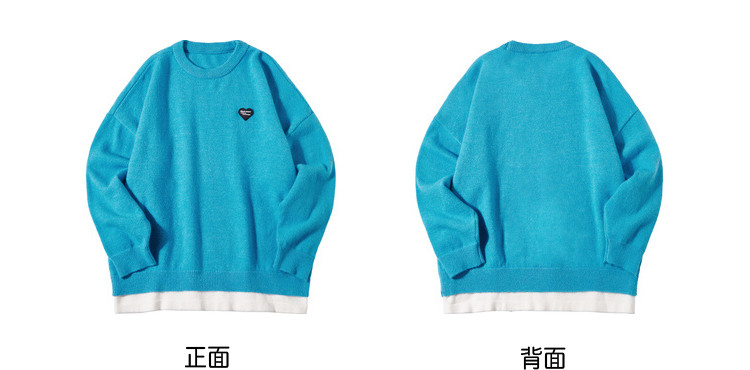 冬圆领套头毛衣女假两件拼接宽松长袖保暖针织衫 840404