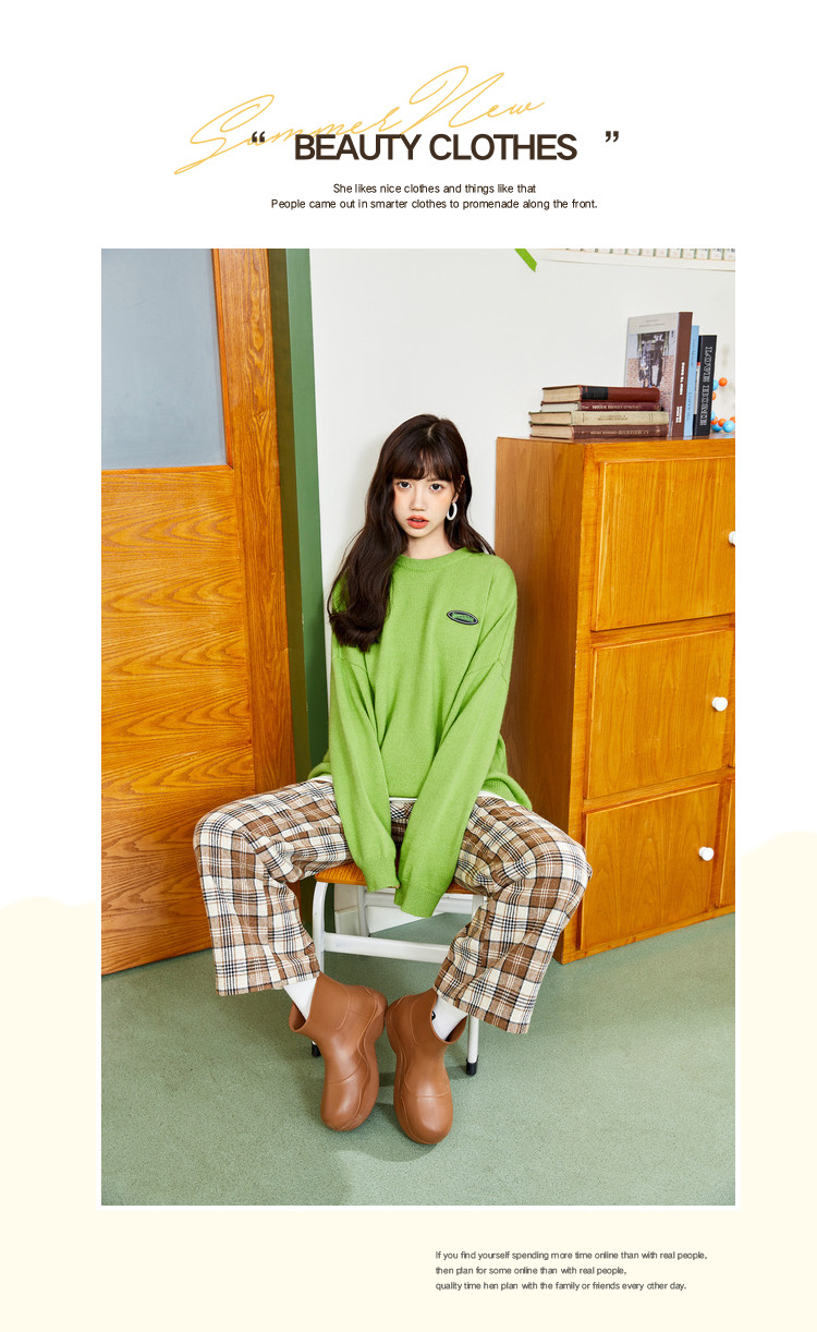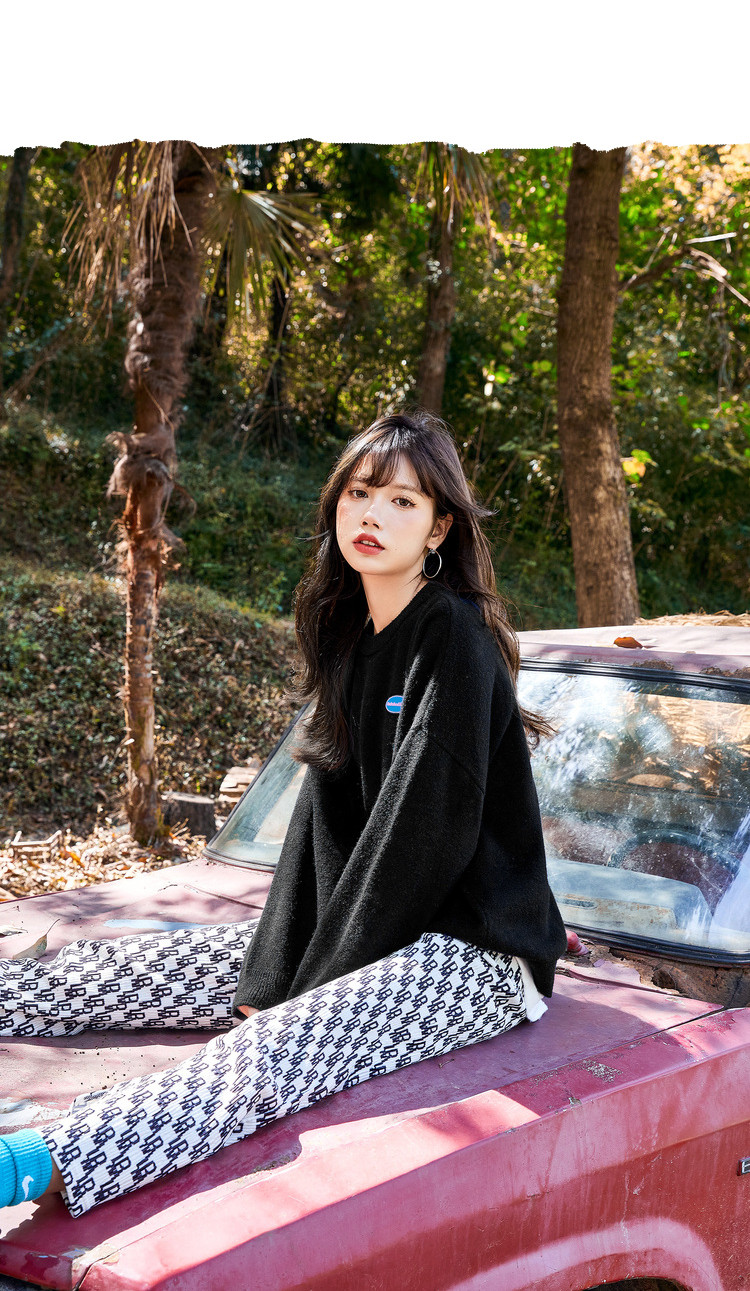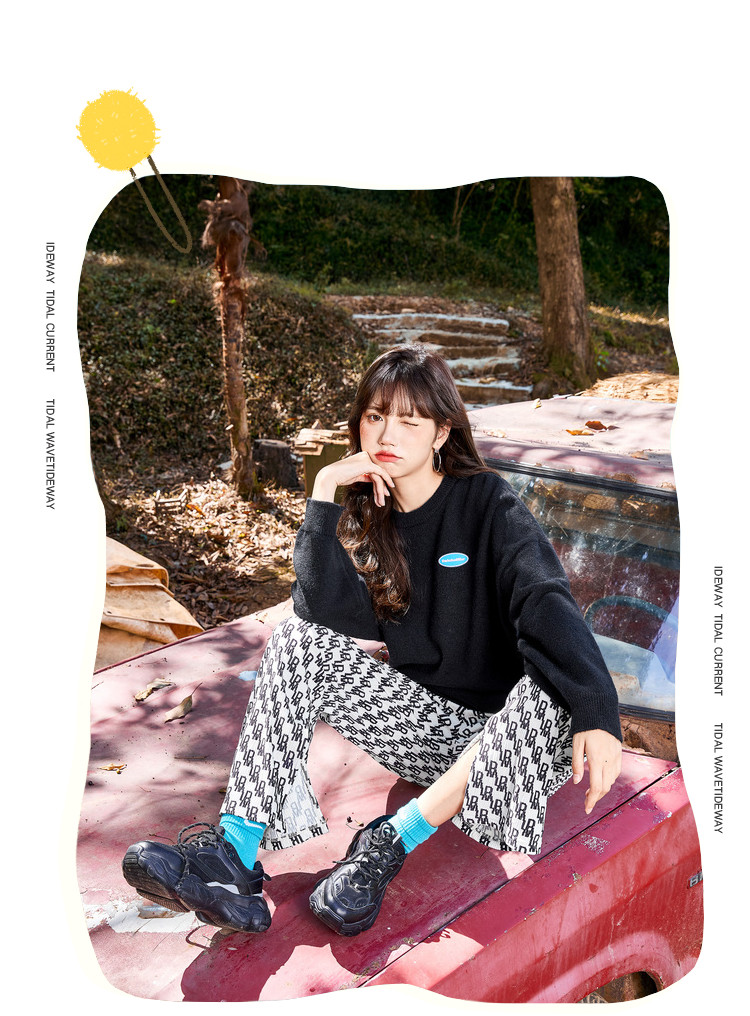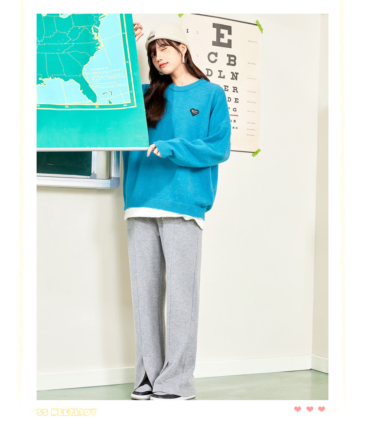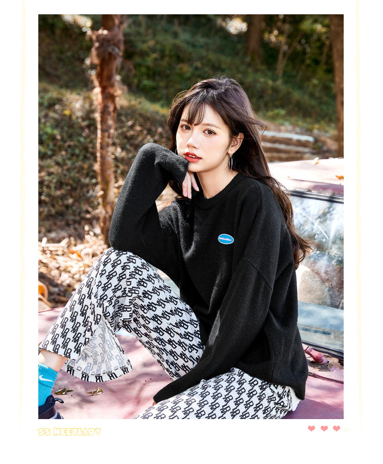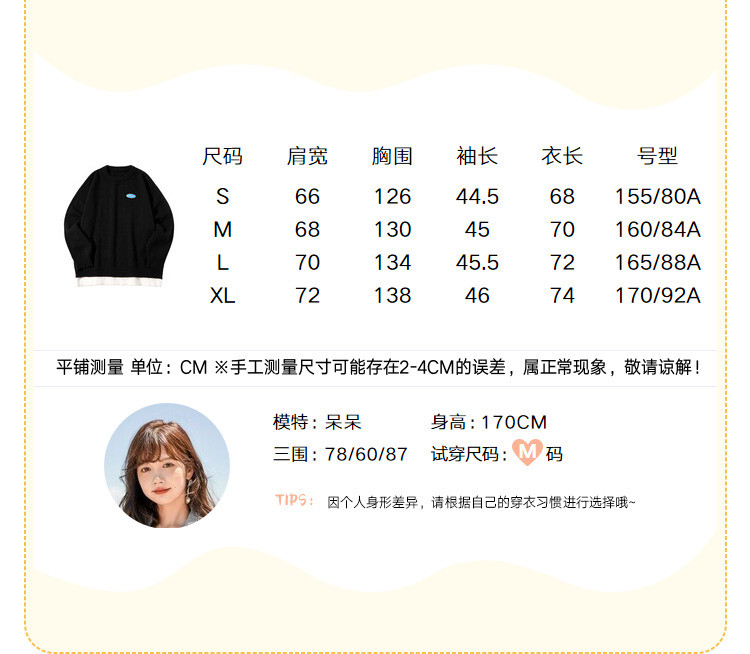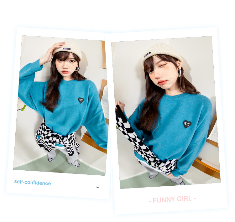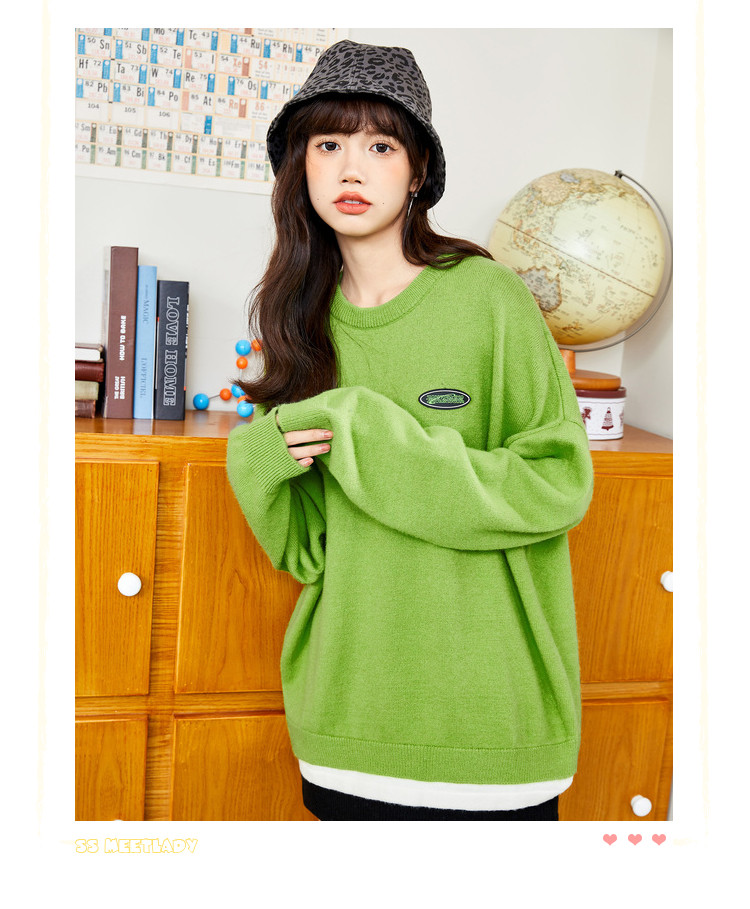 冬圆领套头毛衣女假两件拼接宽松长袖保暖针织衫 840404