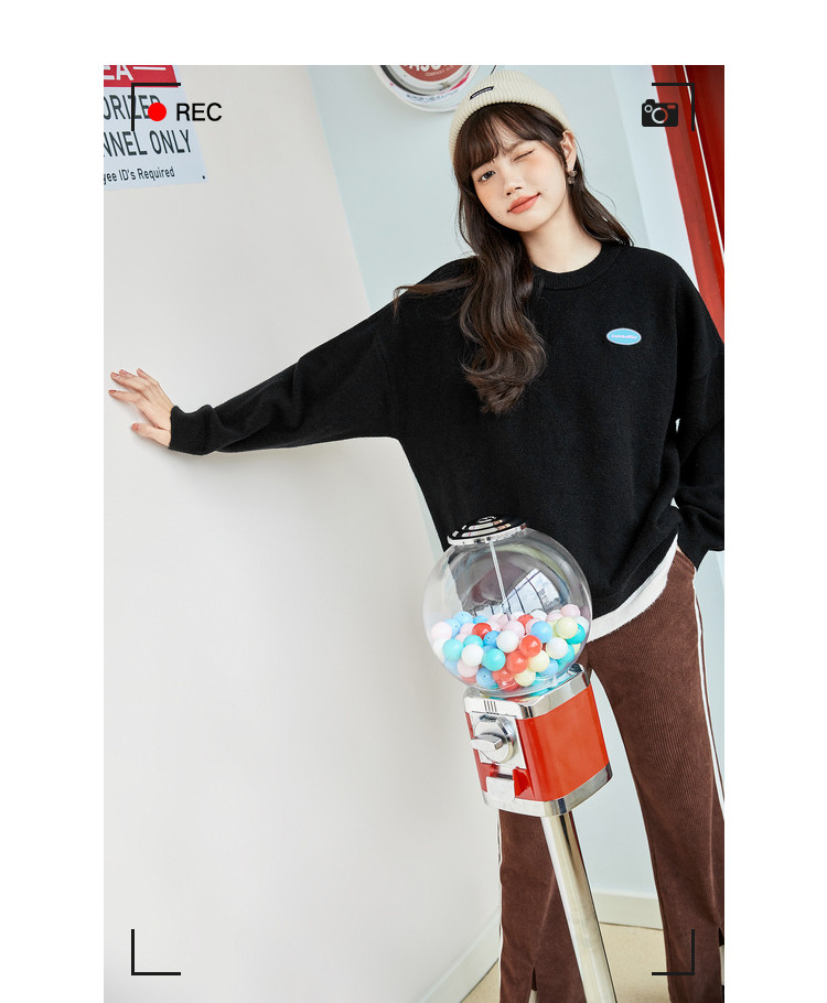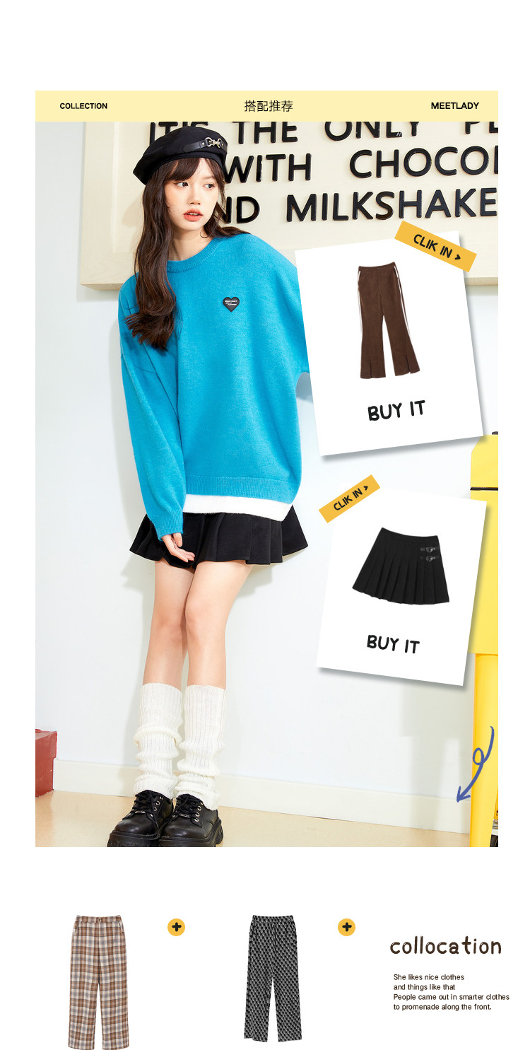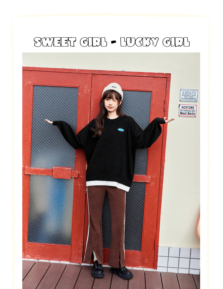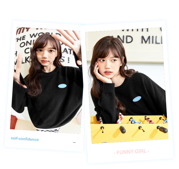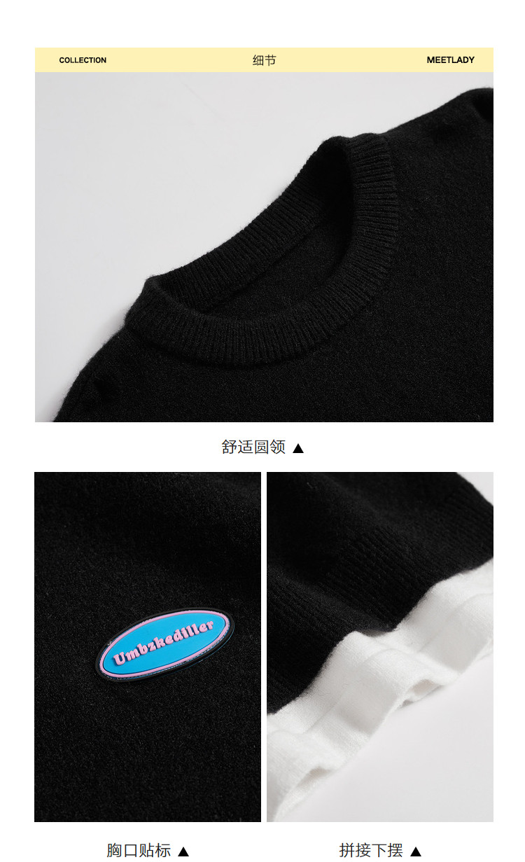 商品名称:冬圆领套头毛衣女假两件拼接宽松长袖保暖针织衫 840404