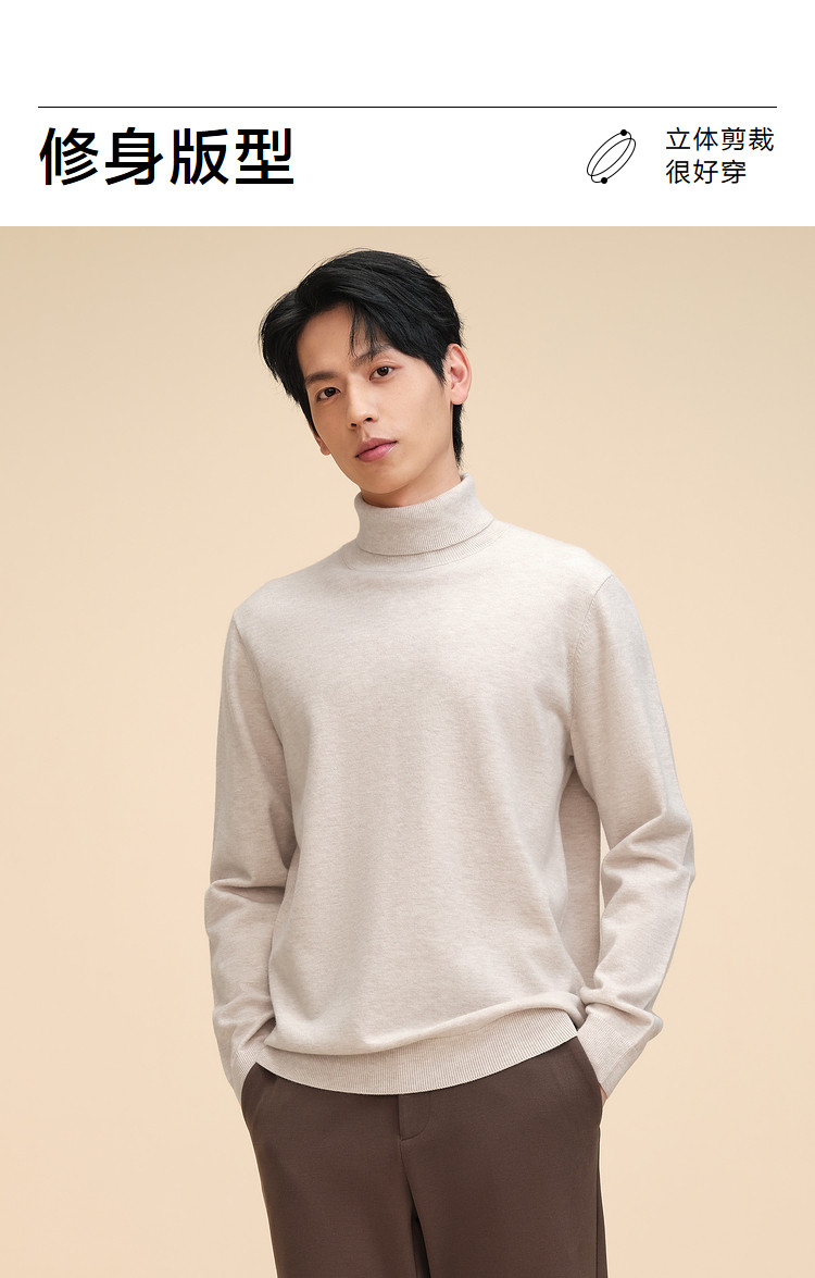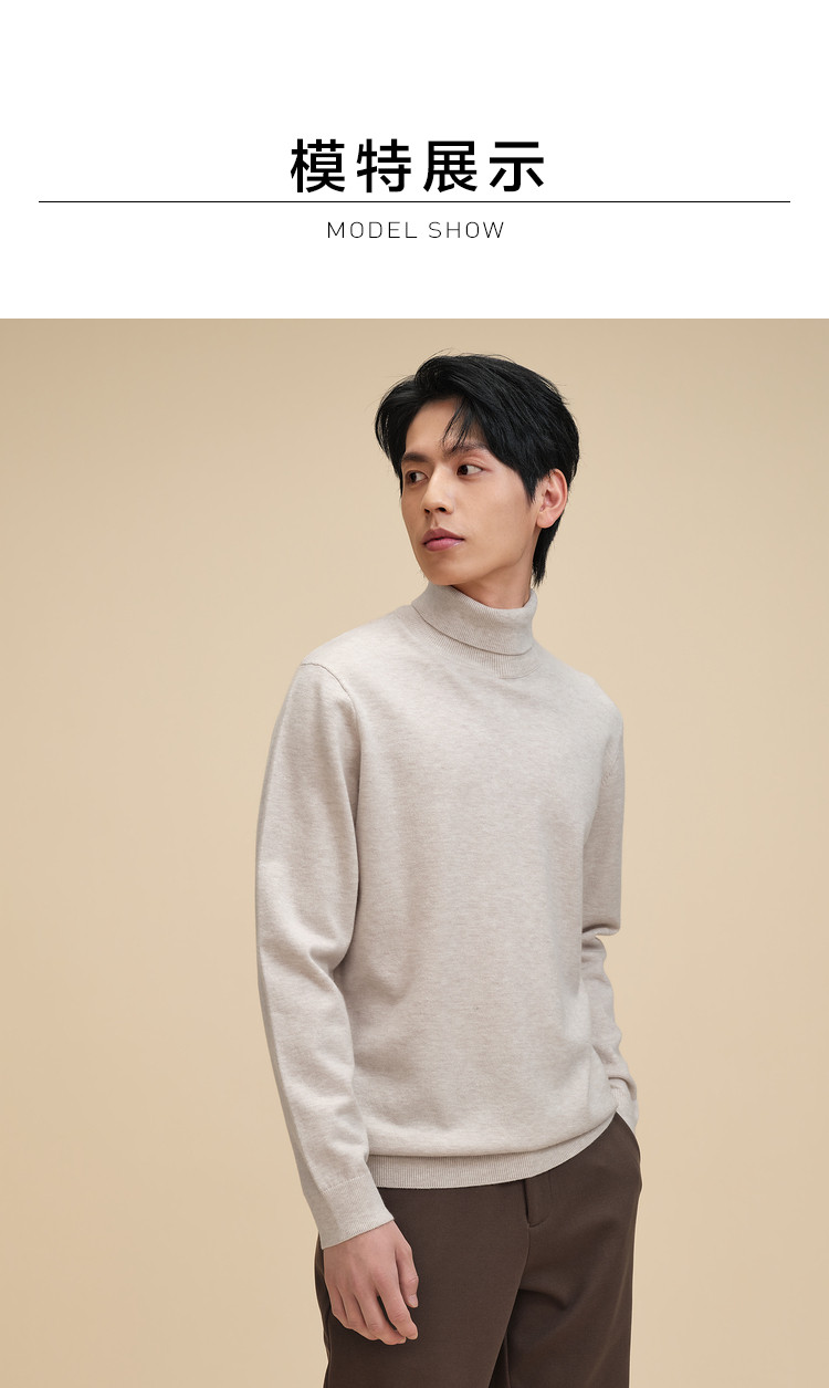 商品名称:【反季】冬季热销含羊毛可翻高领修身保暖打底衫男士长袖毛衫 829896