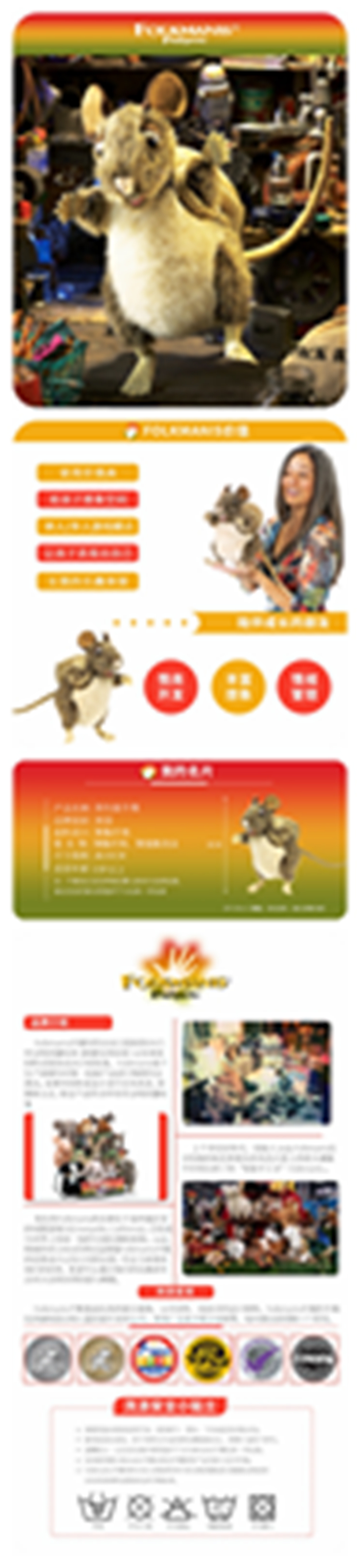 商品名称:福克曼尼斯/FOLKMANIS 仿真互动教育背包鼠手偶