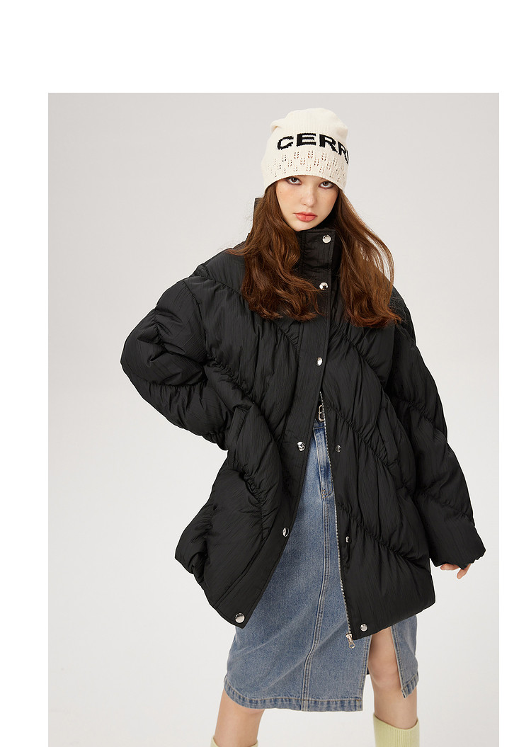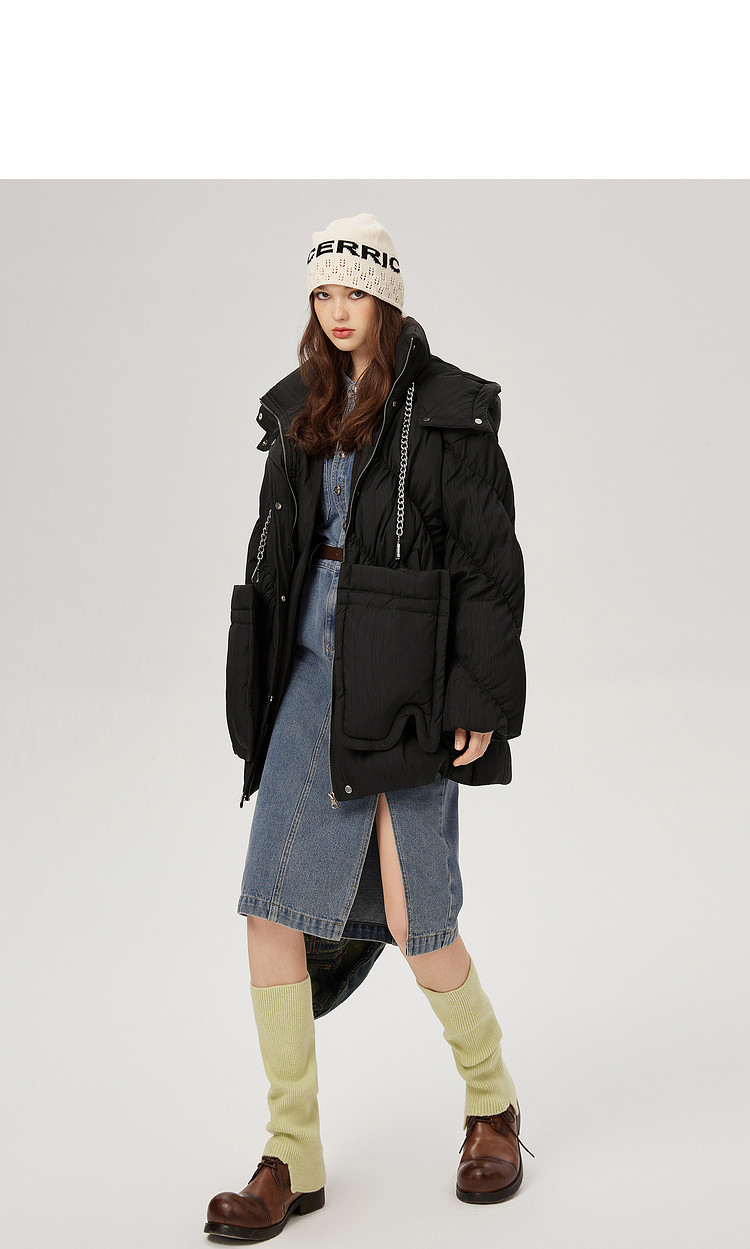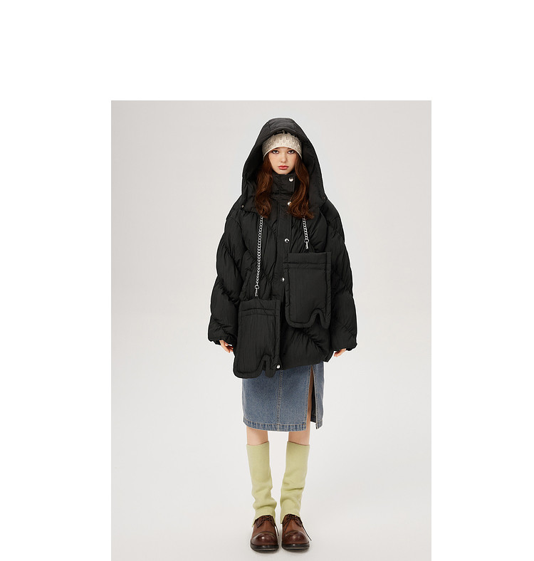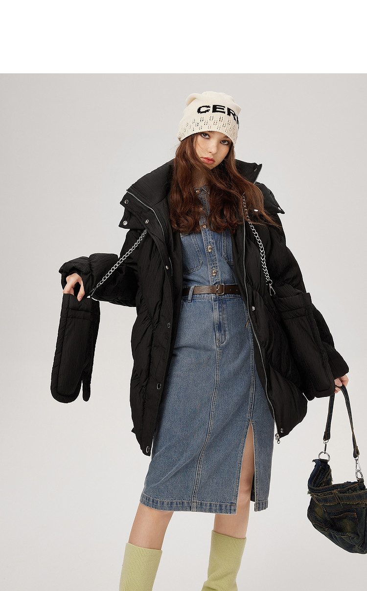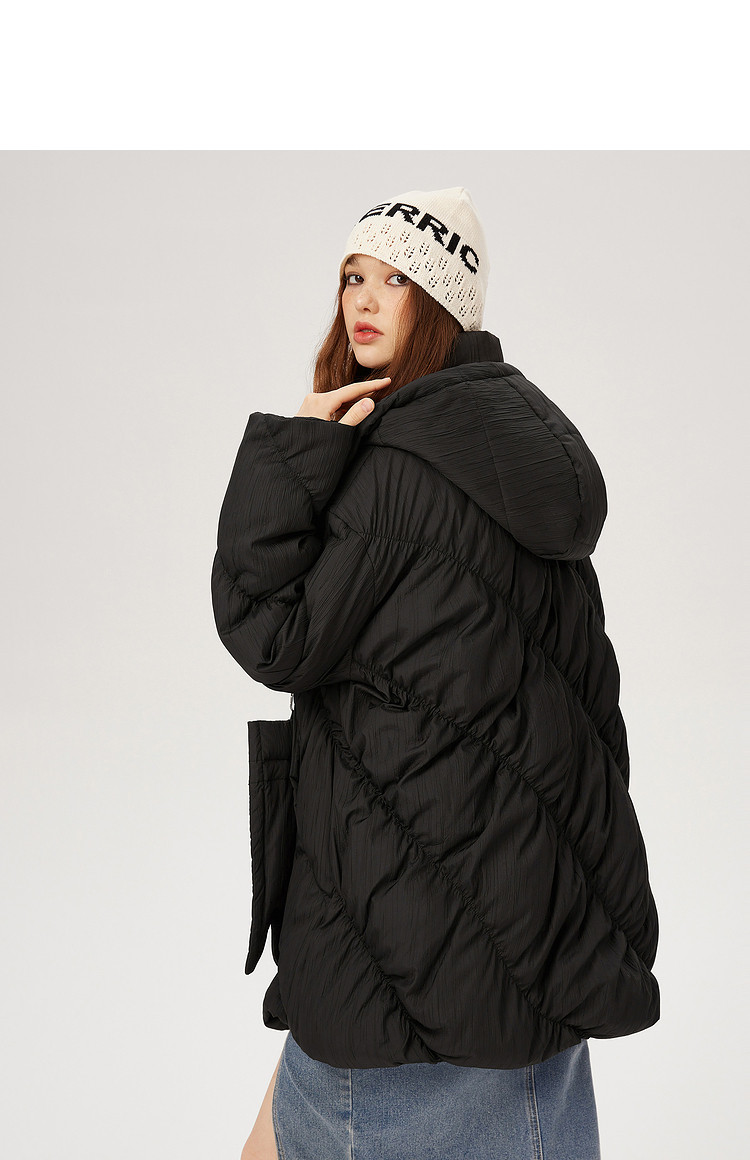 商品名称:【内送手套】冬季热卖菱格连帽轻薄加厚保暖羽绒服女冬季中长外套 525524