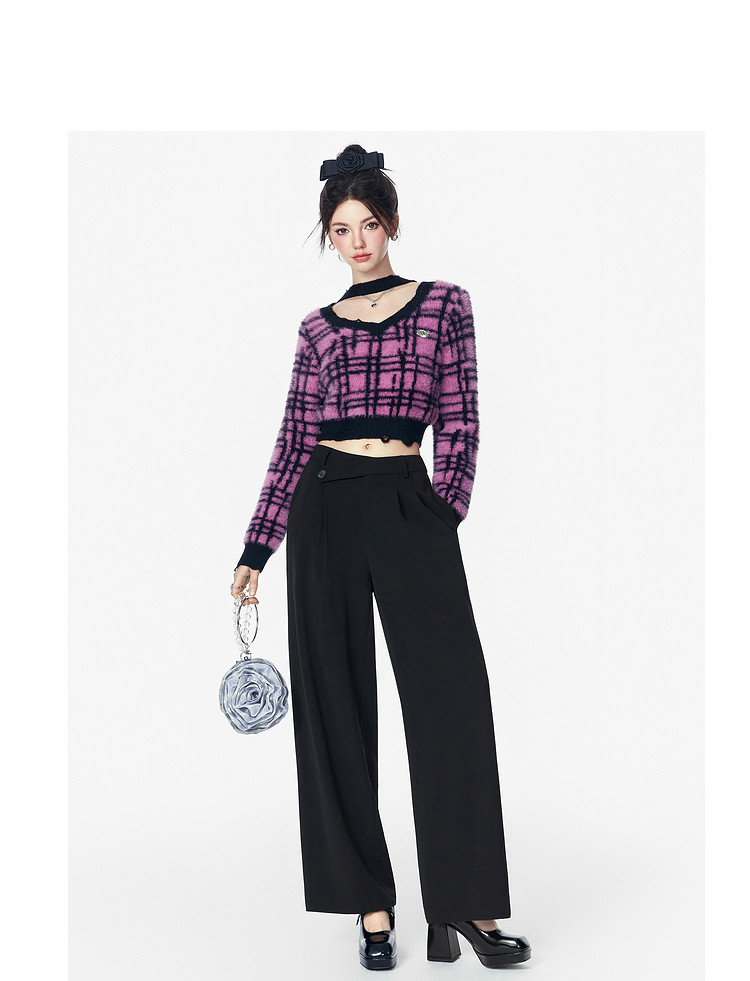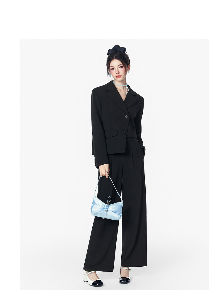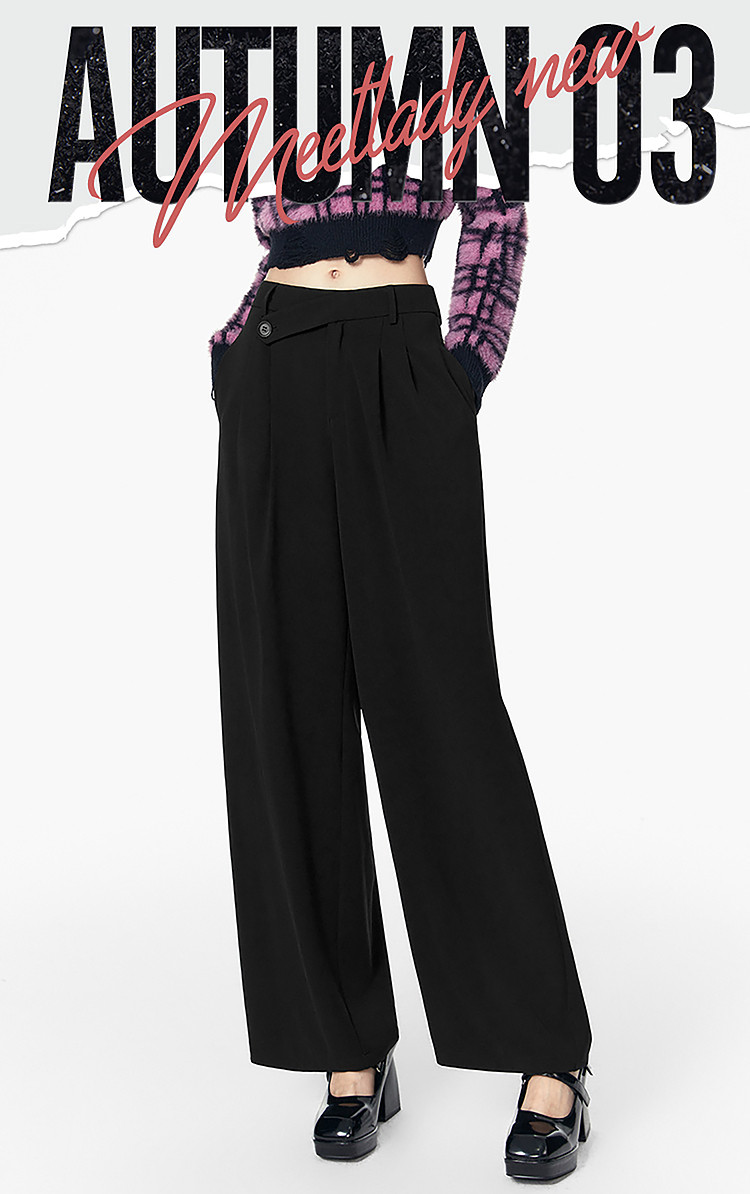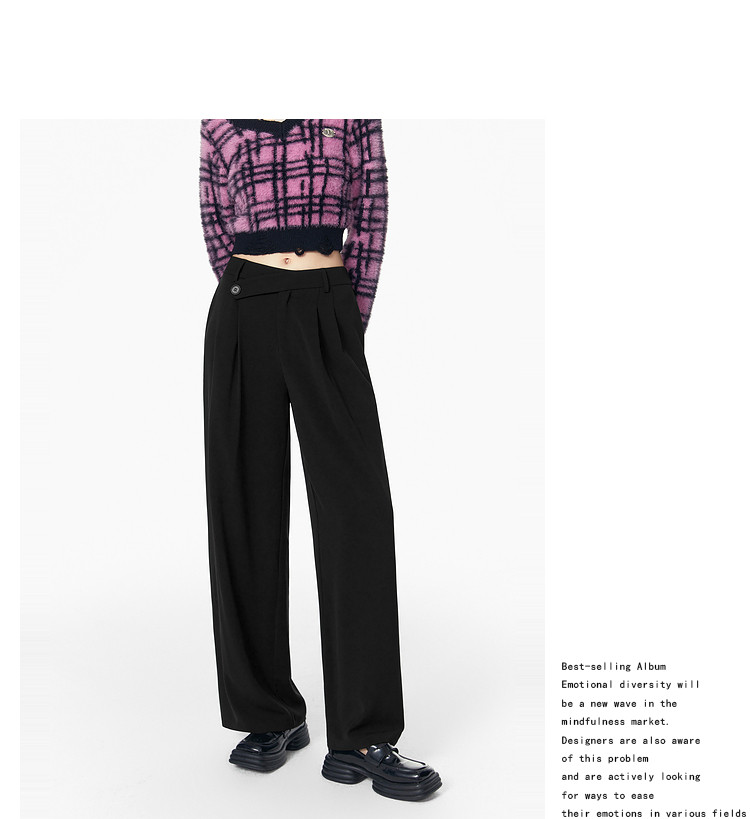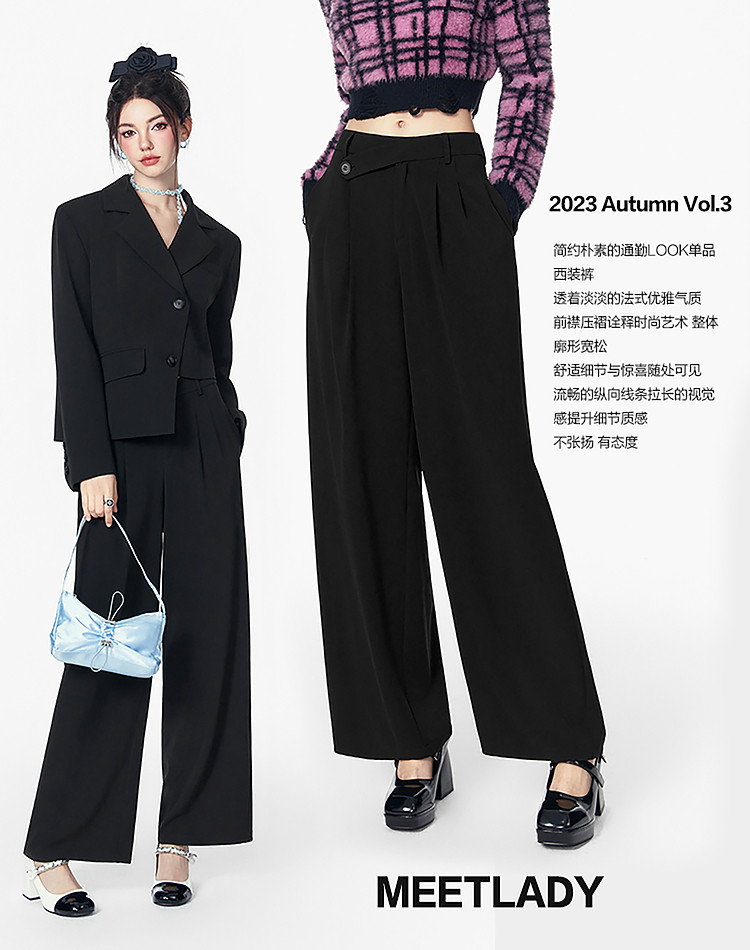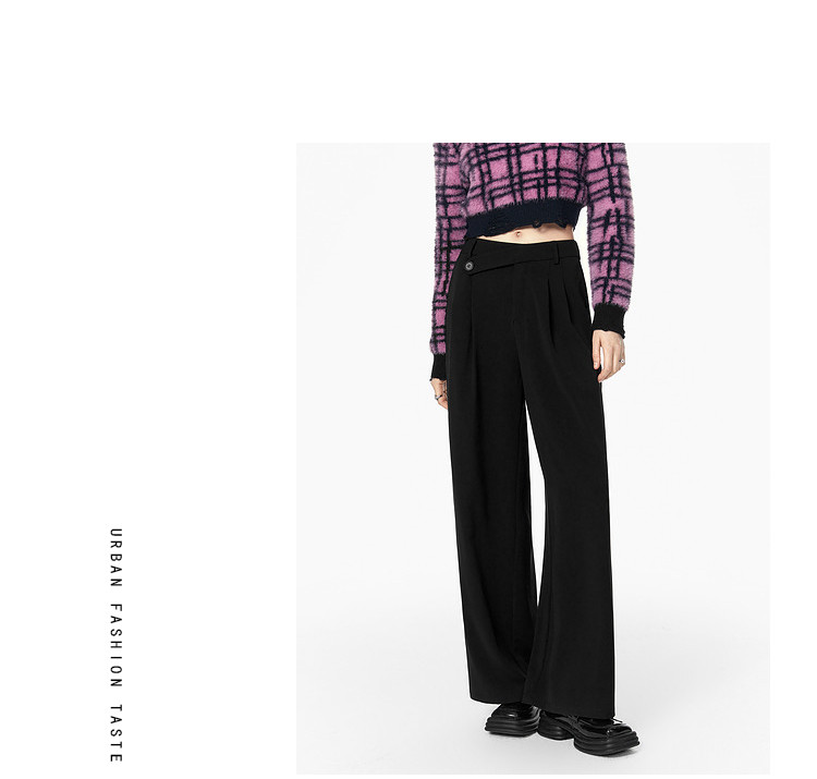 商品名称:春秋直筒宽松垂感西装裤女设计感阔腿通勤休闲裤 070740