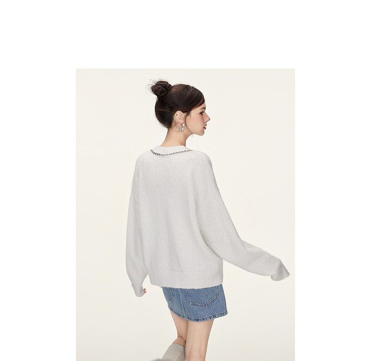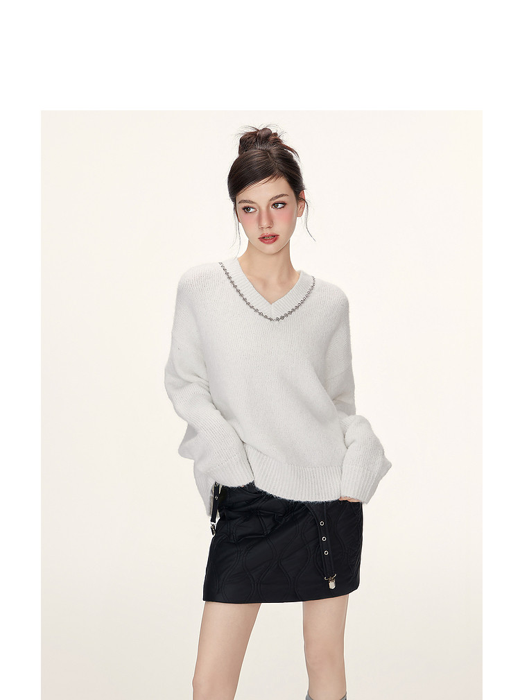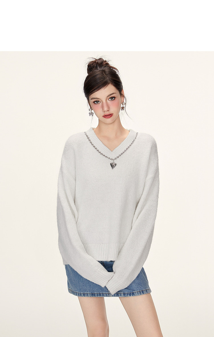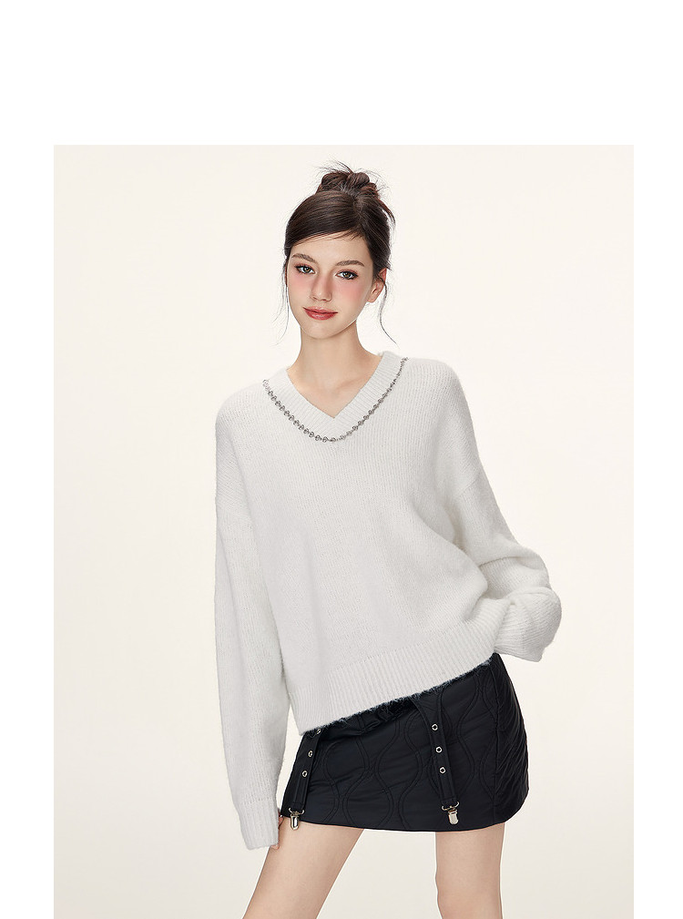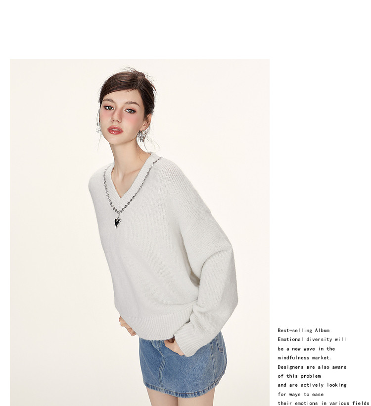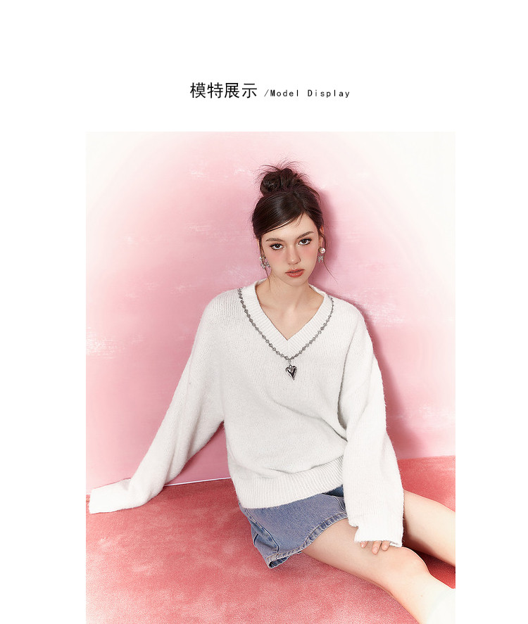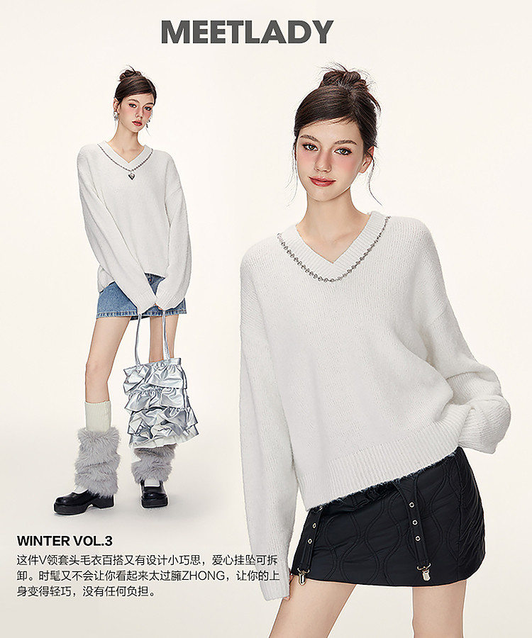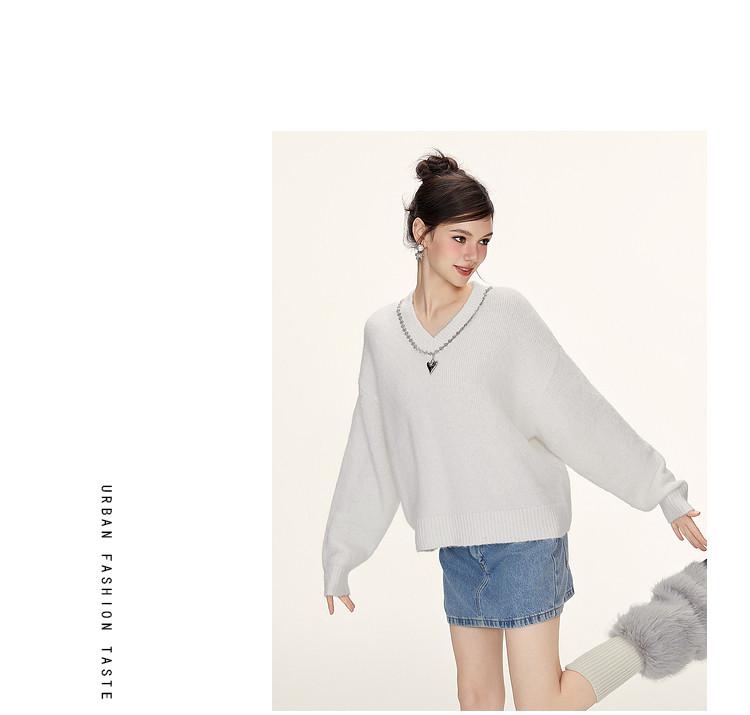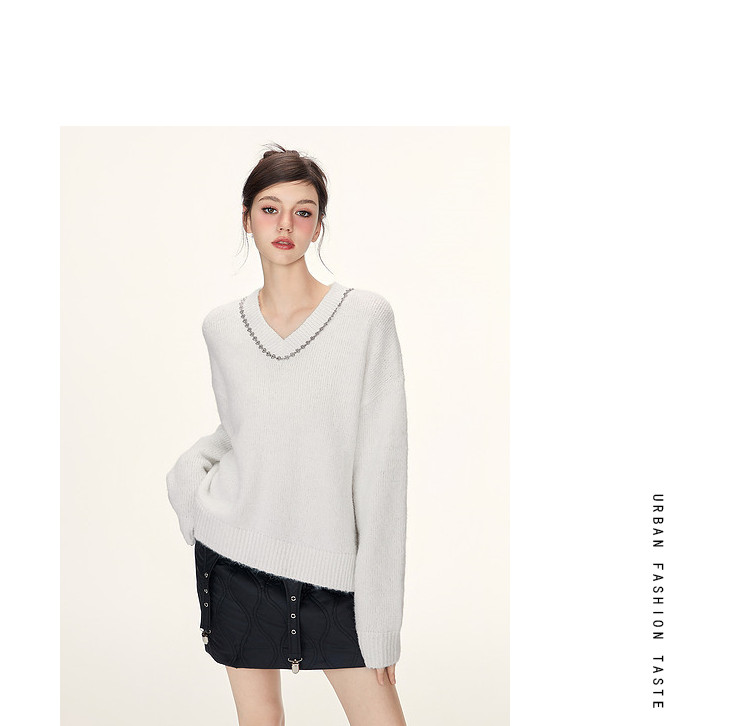 商品名称:小香风纯色百搭V领毛衣女通勤减龄套头打底针织衫 464020