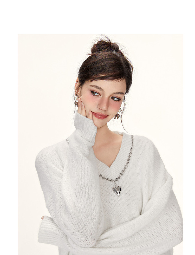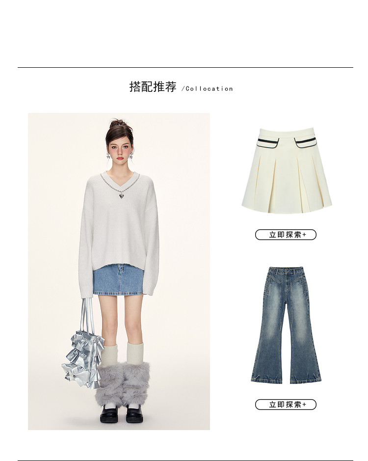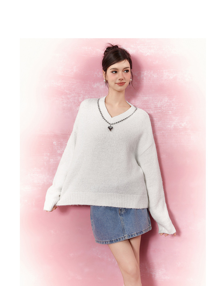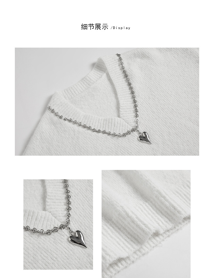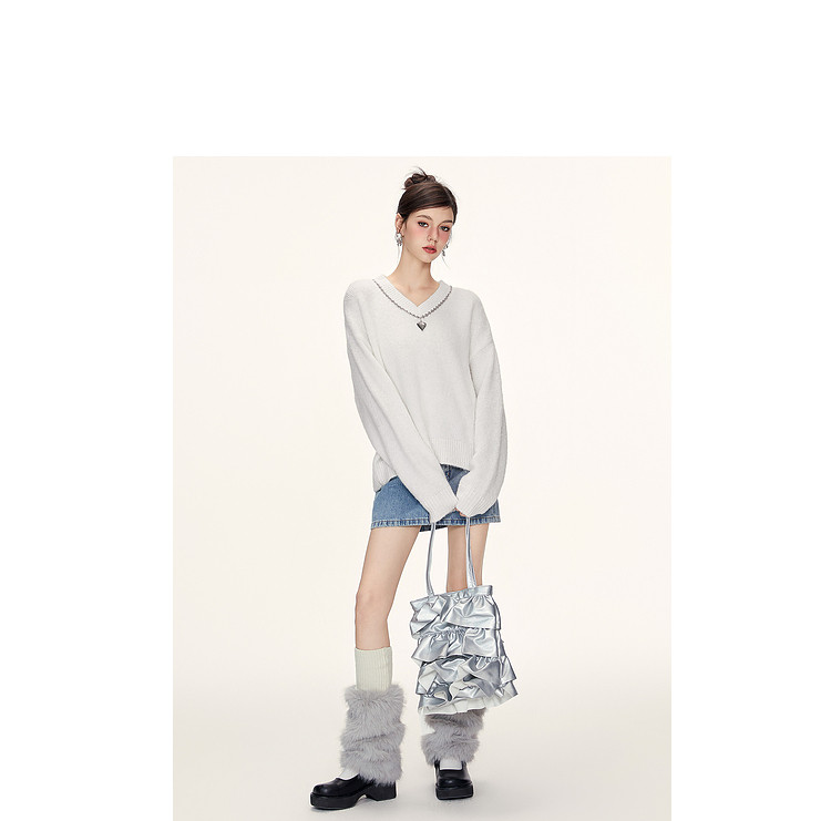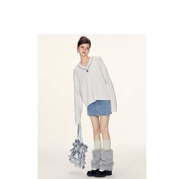 小香风纯色百搭V领毛衣女通勤减龄套头打底针织衫 464020
