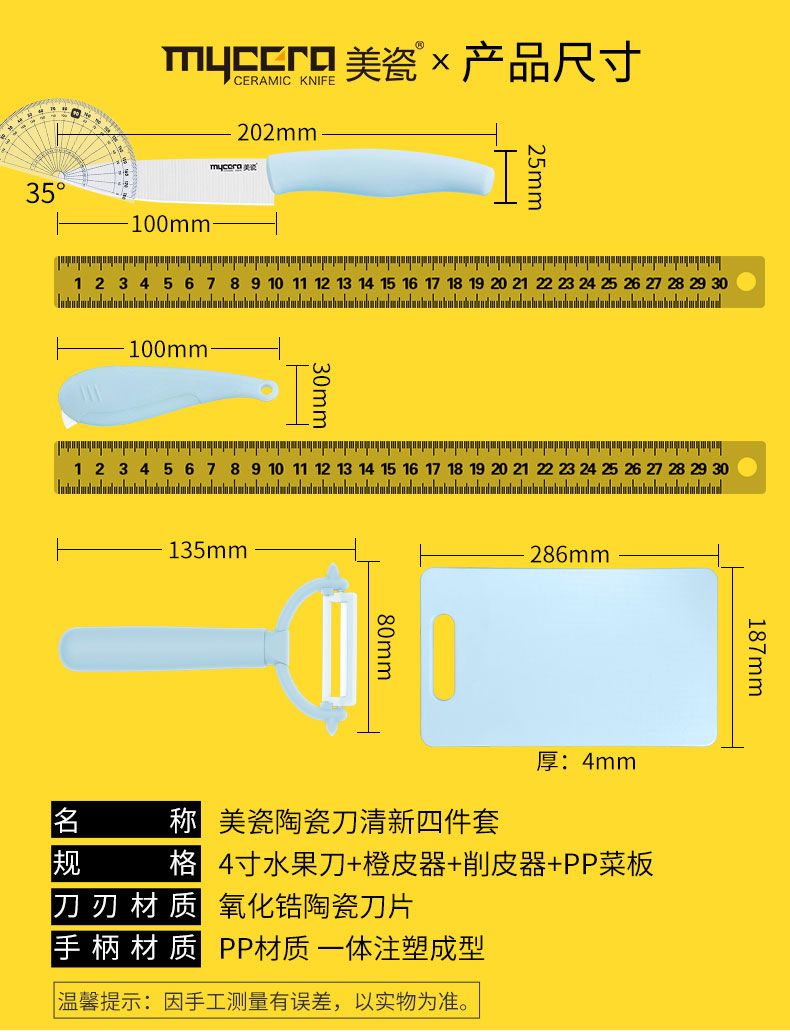 商品名称:美瓷 mycera 陶瓷刀陶瓷水果刀四件套装 刀具套装 TM02