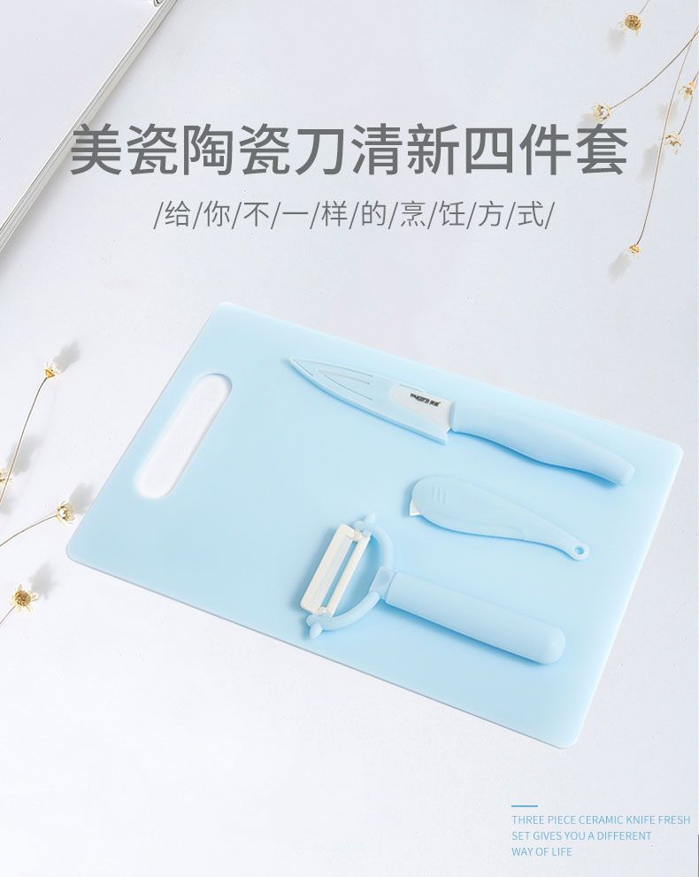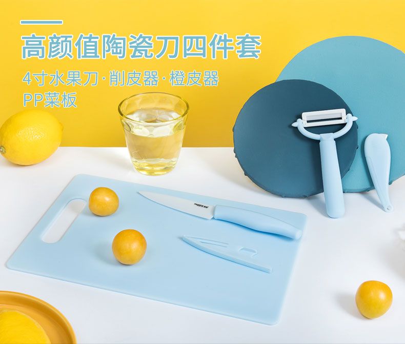 陶瓷蔬果刨+陶瓷橙皮刀+4寸陶瓷水果刀带鞘+PP菜板