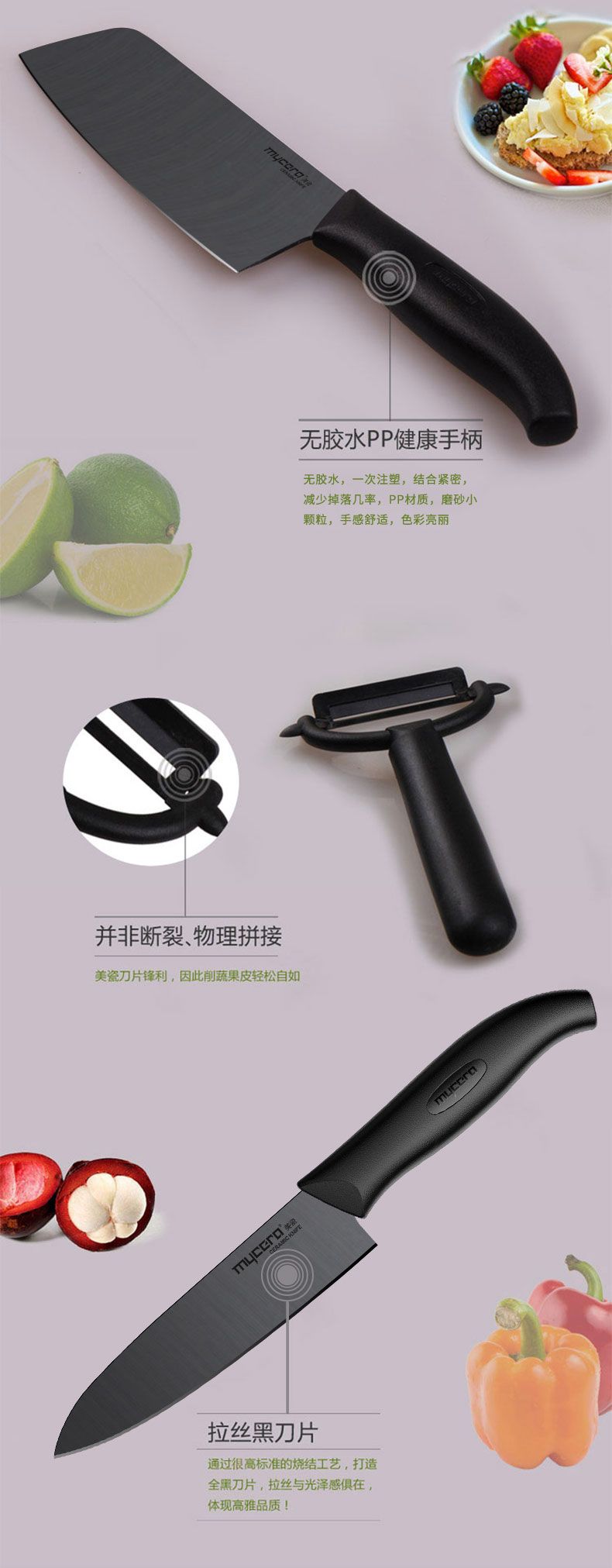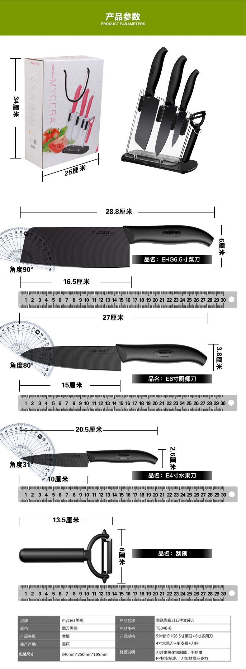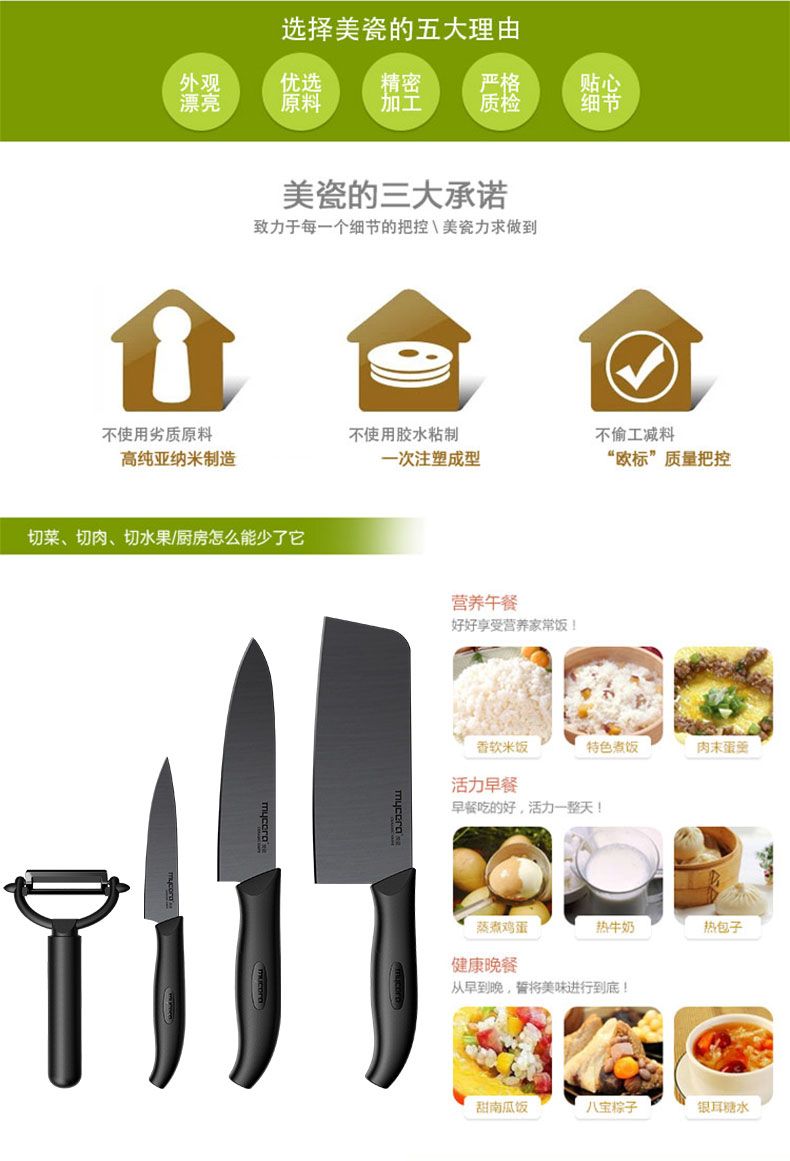 商品名称:美瓷 mycera 陶瓷刀厨房刀具五件套TE04B-B