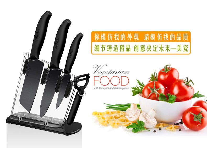 4寸水果刀+6寸厨师刀+6.5寸菜刀++陶瓷蔬果刨+刀架