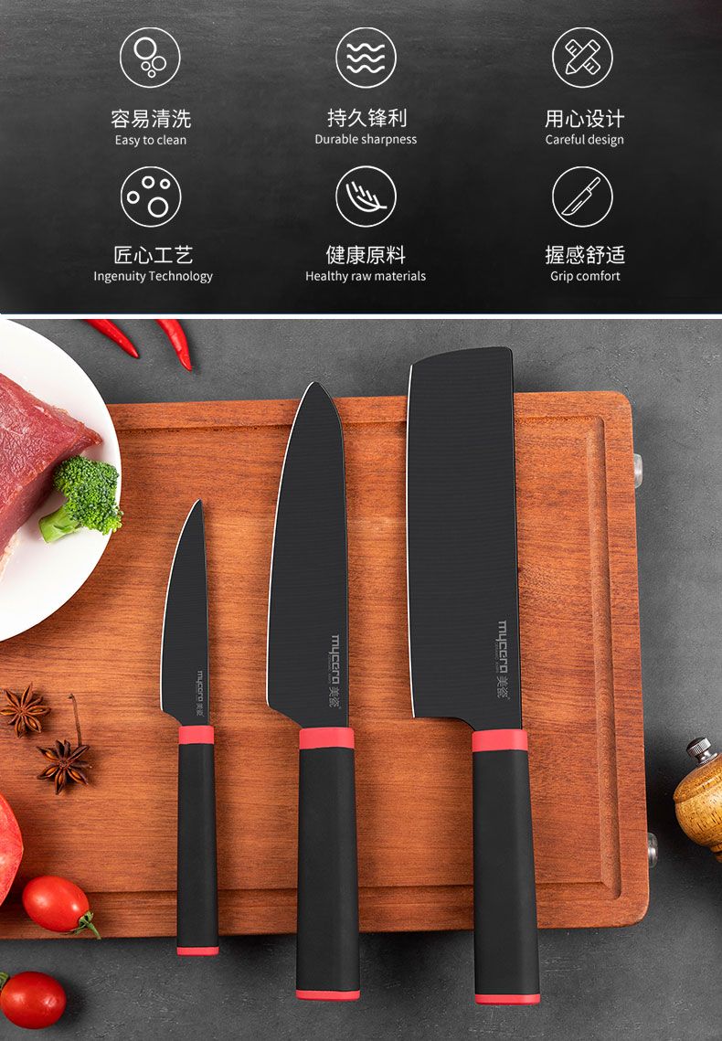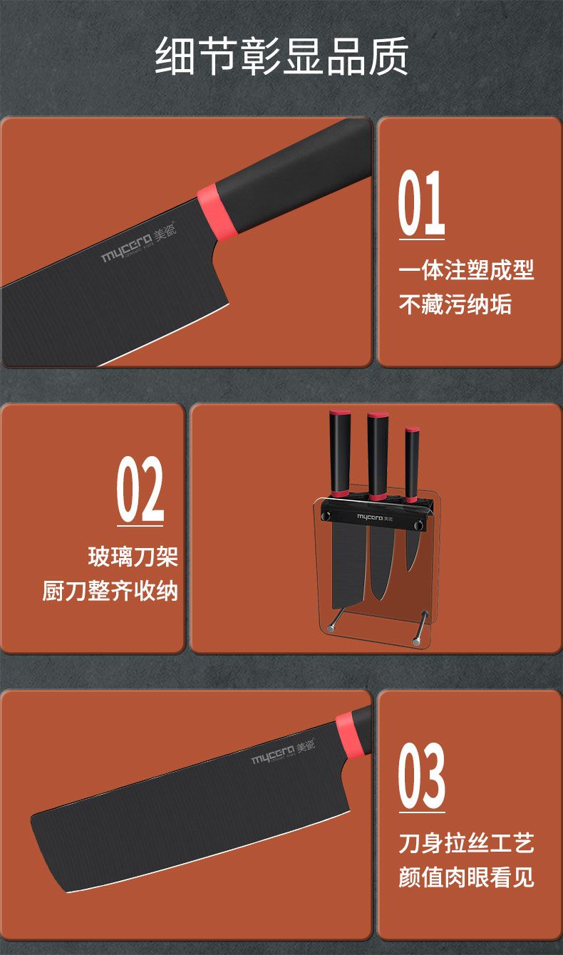 4寸水果刀+6寸厨师刀+6.5寸菜刀+钢化刀架