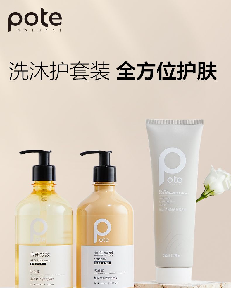 柏缇生姜洗发露500ml*1+柏提紧致弹弹沐浴露500ml*1送 护发素260ml*1+洗发露体验装10ml*5+沐浴露体验装10ml*5+沐浴球*1