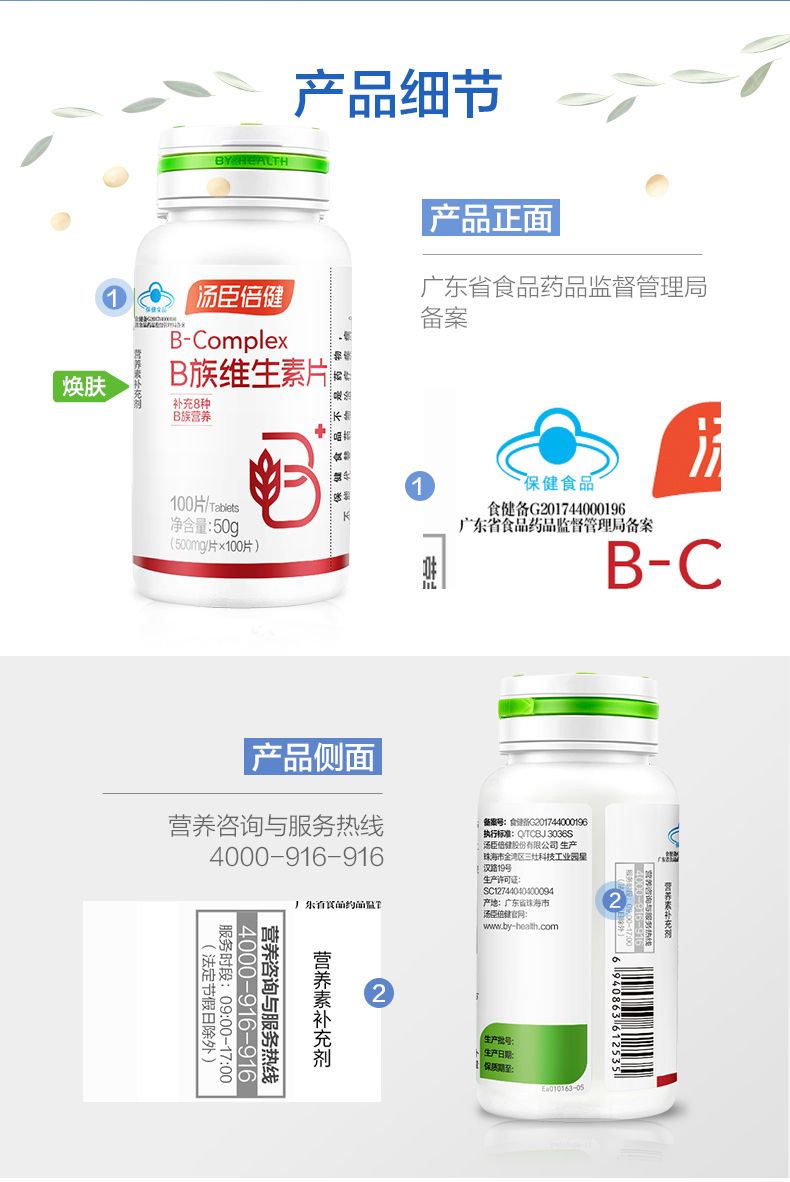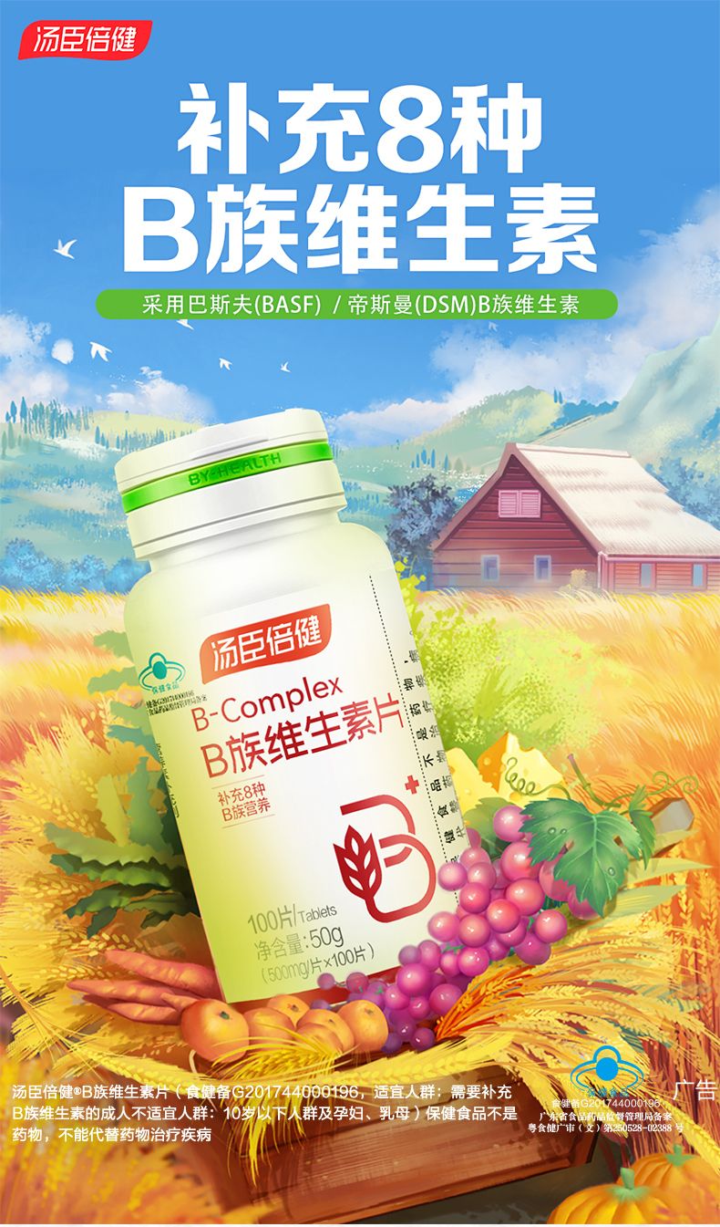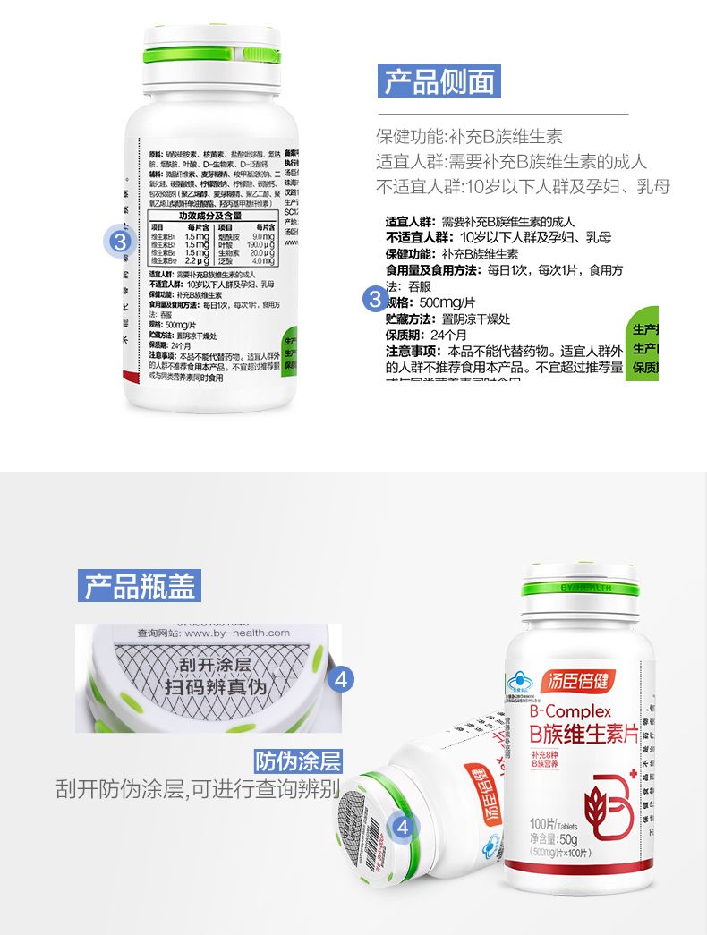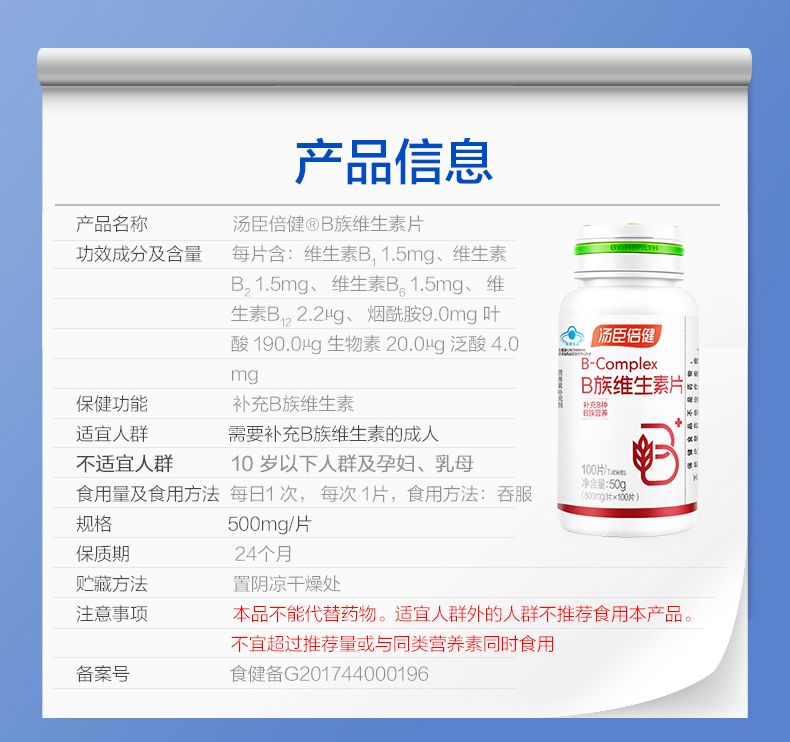 商品名称:汤臣倍健B族维生素片复合维生素 vb b1b2b6 b12叶酸b族
