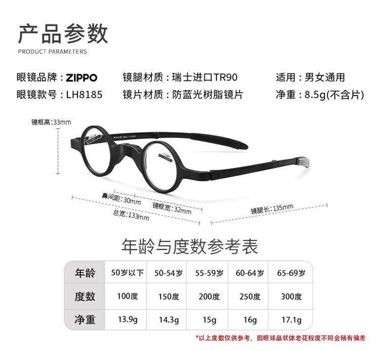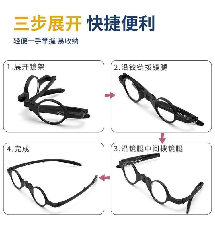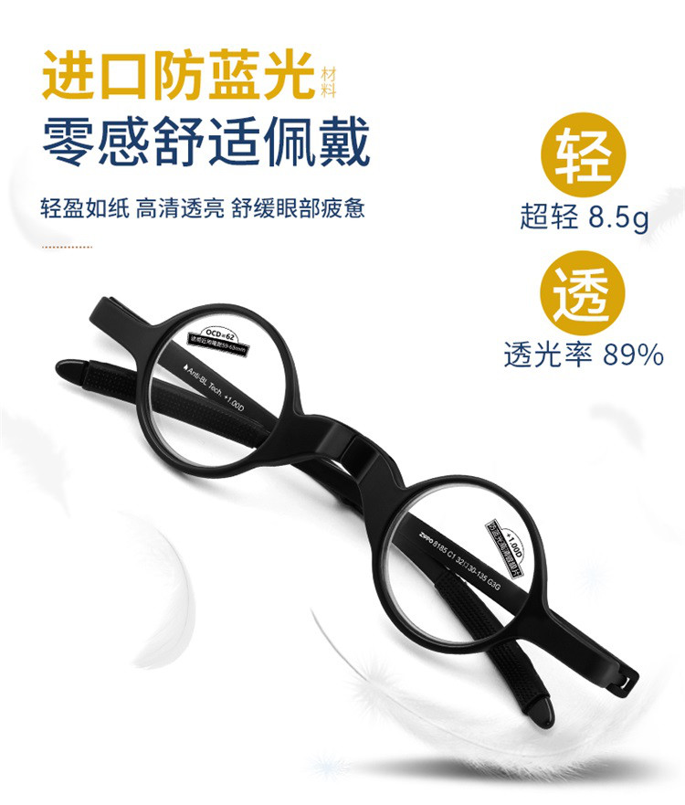 商品名称:圆框复古可折叠老花镜男女适用防蓝光高清镀膜显年轻眼镜 414942
