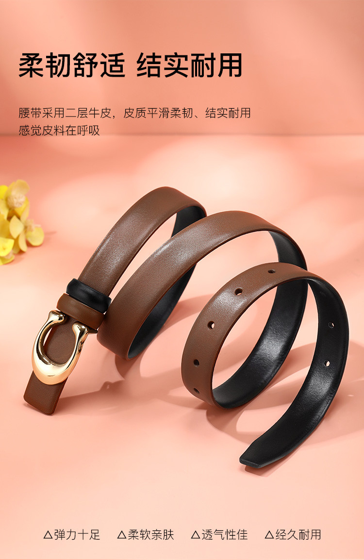 商品名称:【轻奢高档】二层牛皮皮带女裤带复古休闲针扣牛仔裤带女皮带腰带 663582