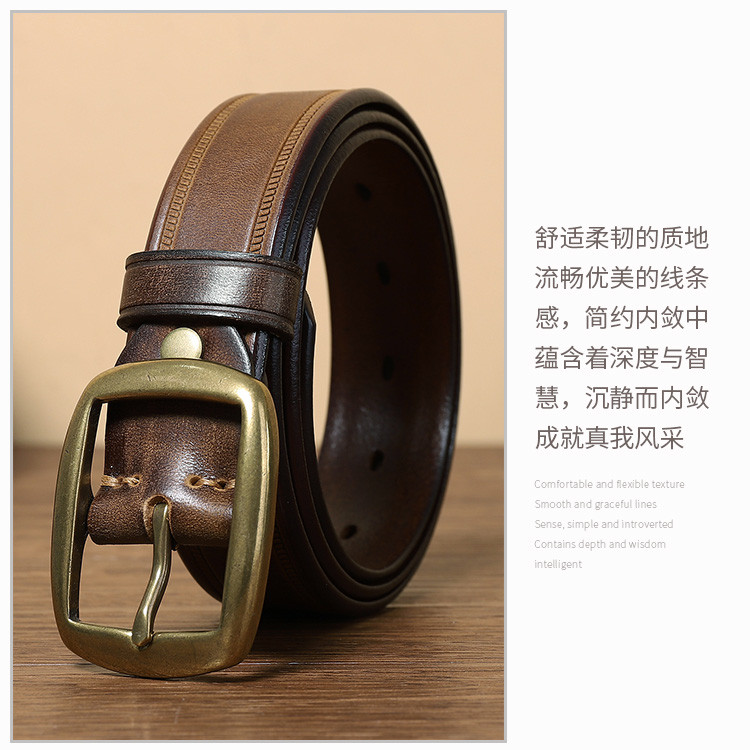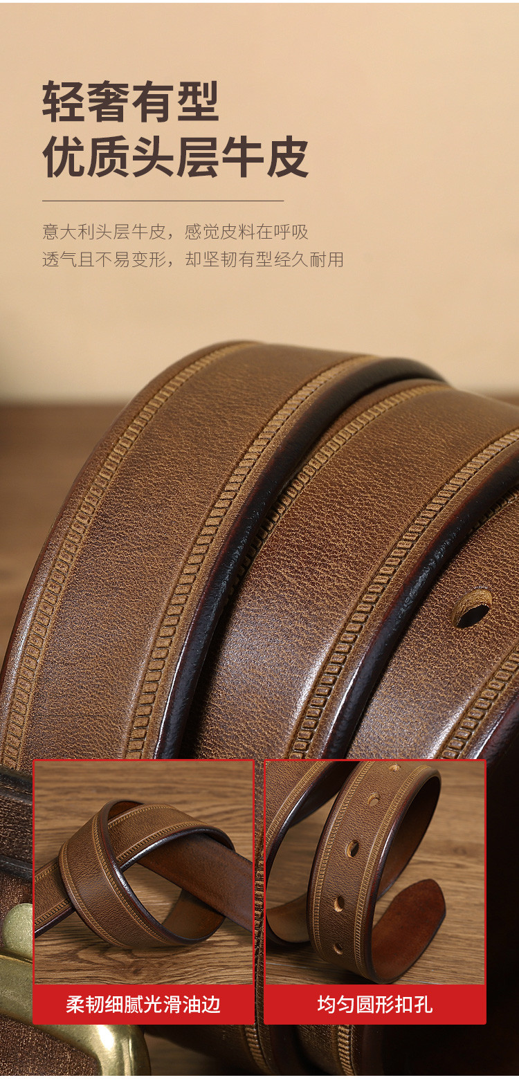 【头层牛皮】之宝皮带男士真皮针扣轻奢小众腰带生日礼物礼盒男 163934