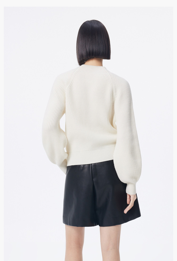 春季气质通勤温柔时尚纯色灯笼袖毛毛衣上衣内搭 674395
