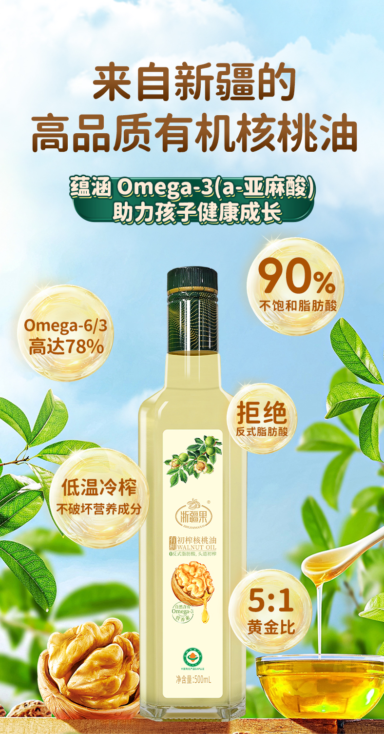 商品名称:浙疆果有机核桃油礼盒 500ml*2