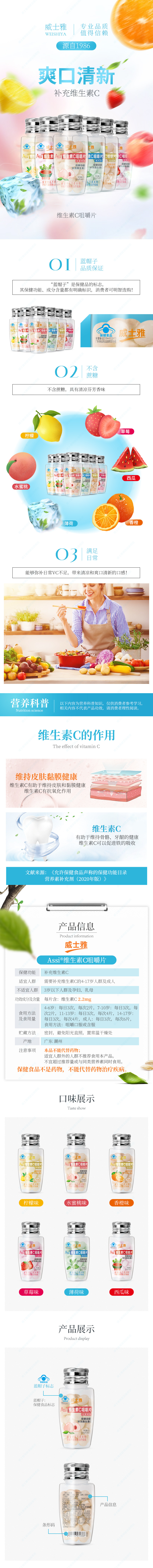 商品名称:威士雅维生素C咀嚼片儿童维C片40片/瓶*6瓶装