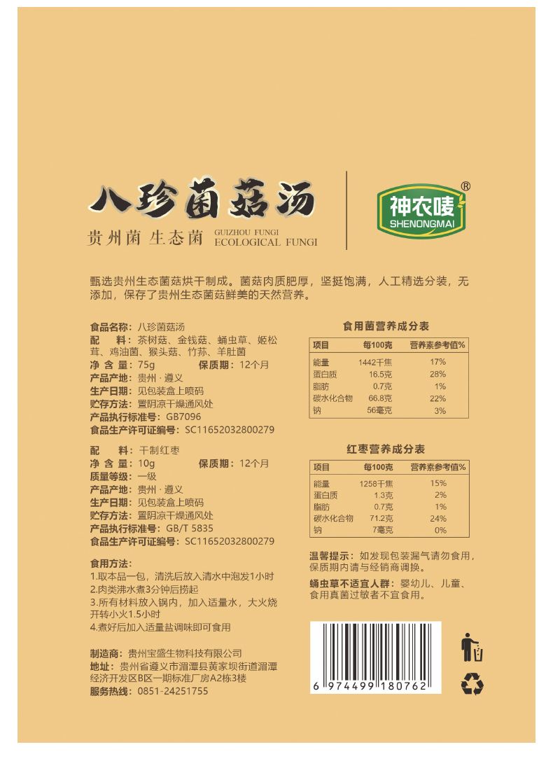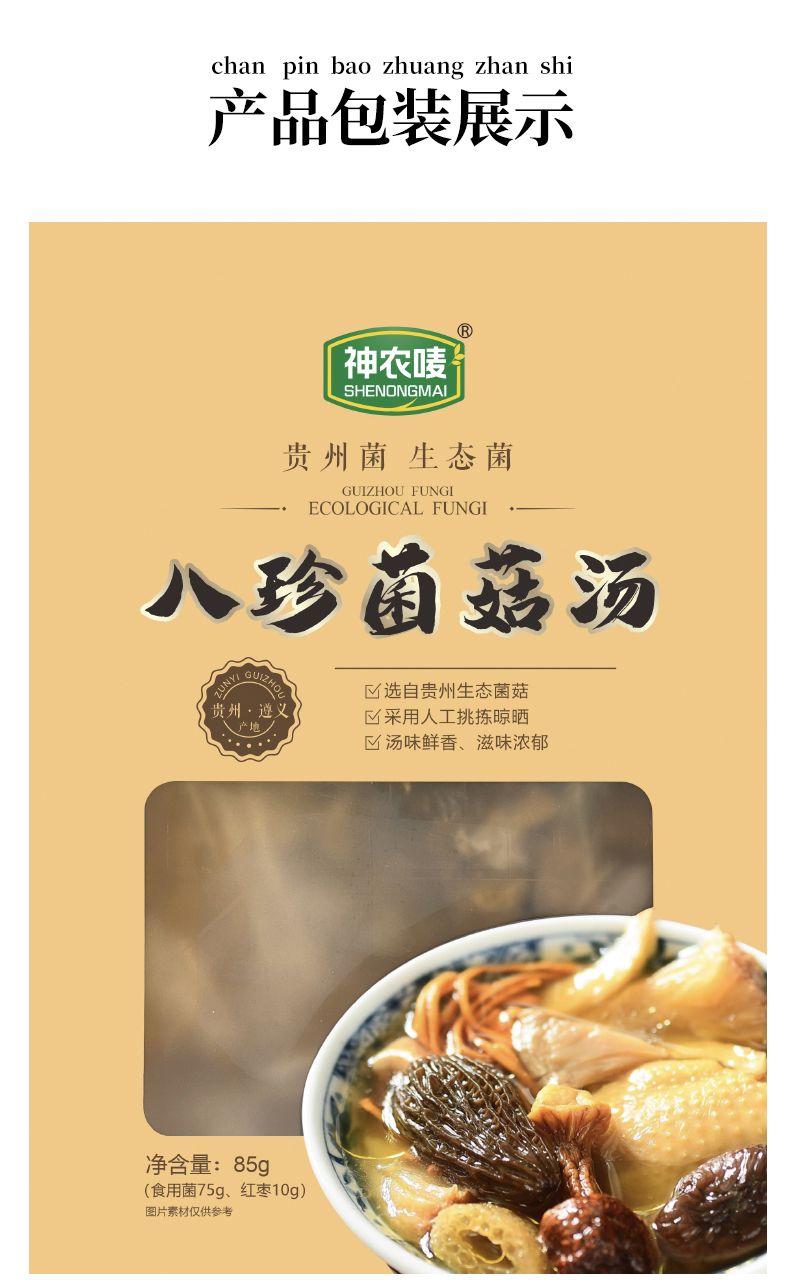 商品名称:神农唛八珍菌菇汤85g*3盒