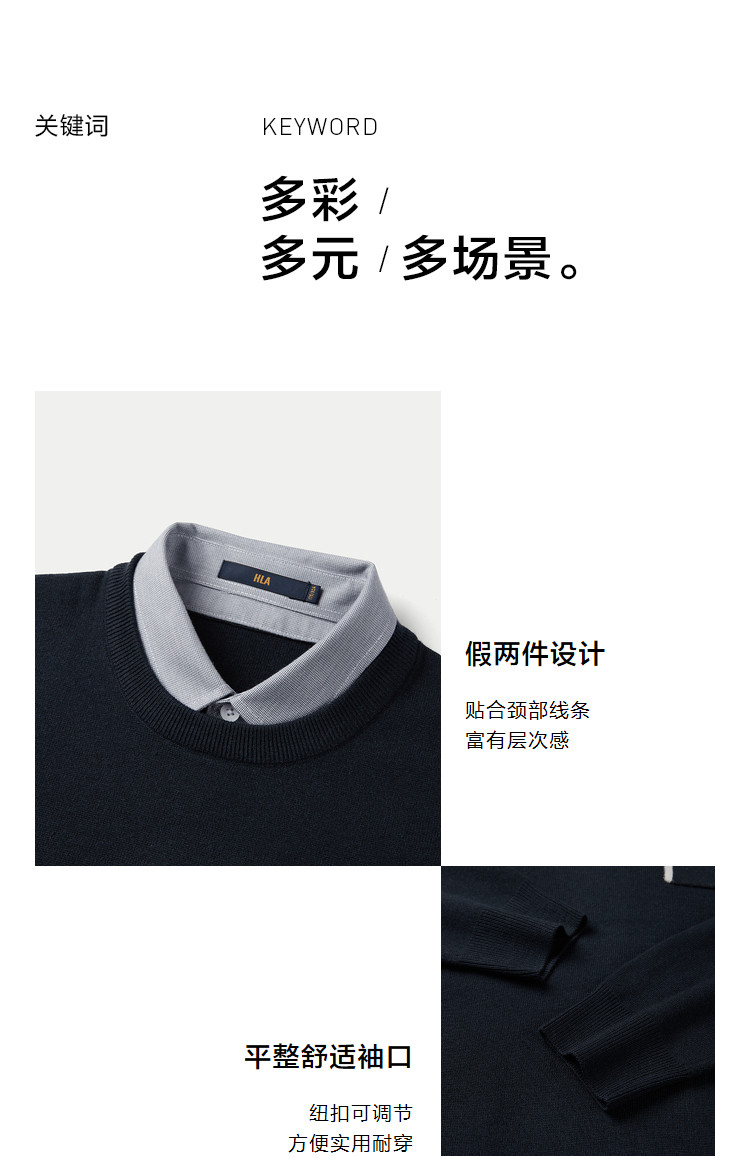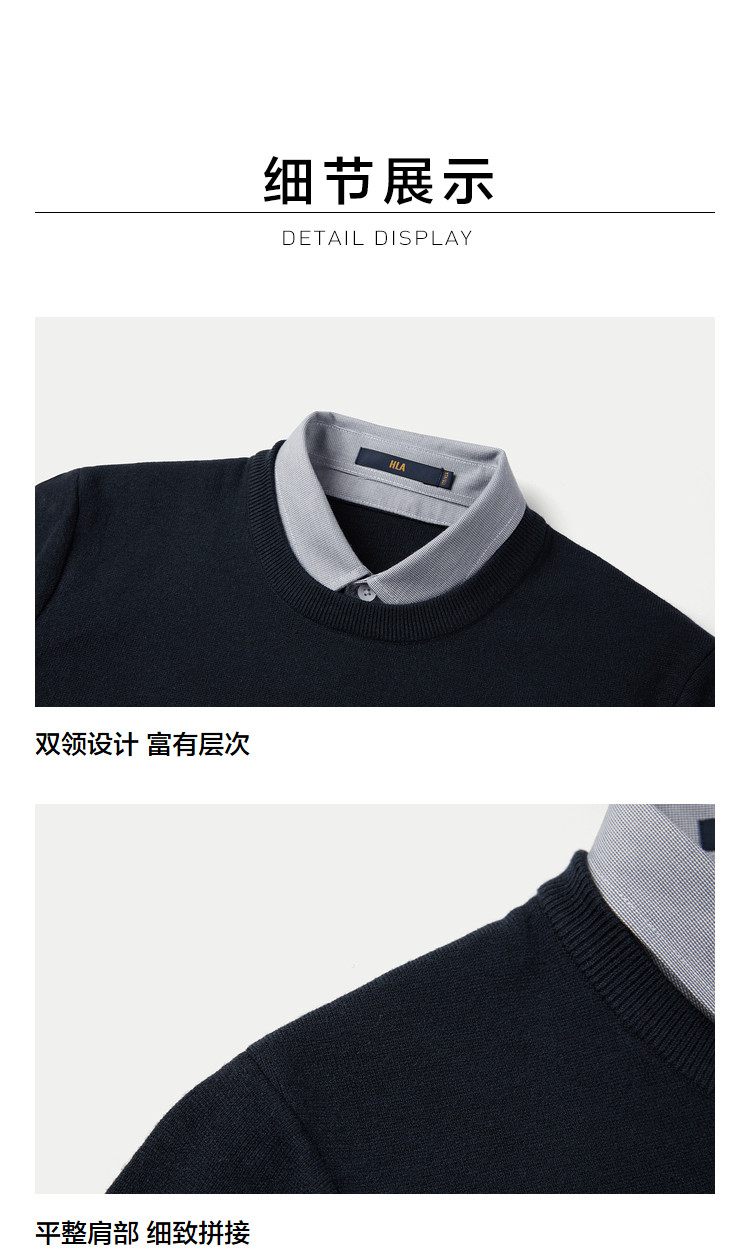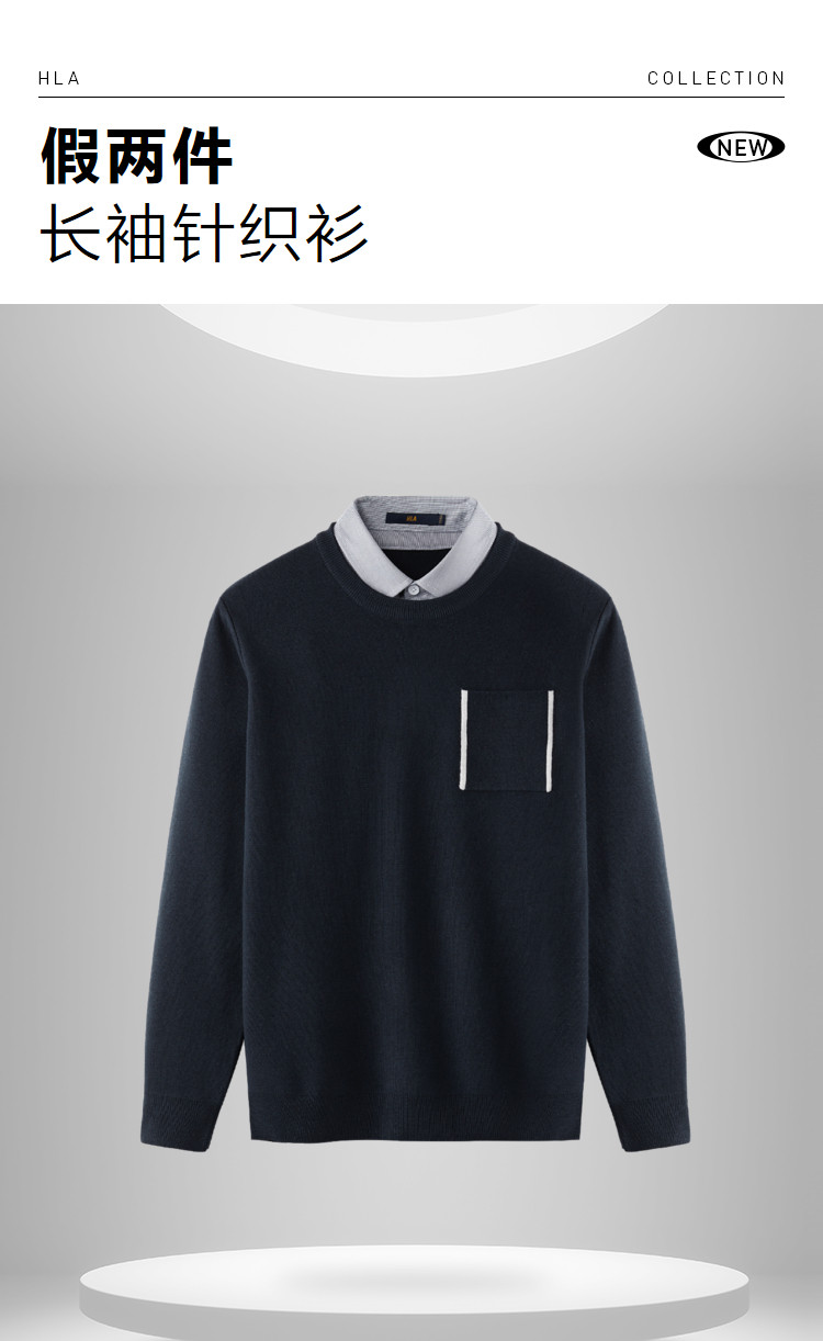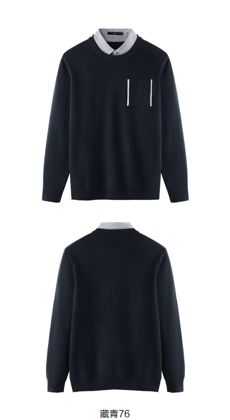 商品名称:【反季】冬季热销简约纯色加厚保暖双领假两件男士长袖针织衫 240712