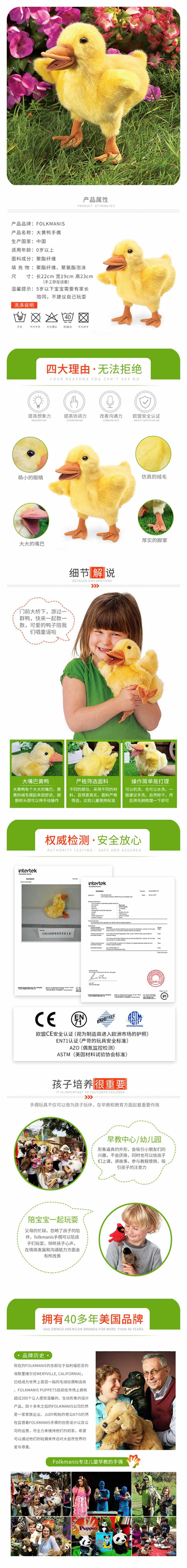 商品名称:福克曼尼斯/FOLKMANIS 仿真互动教育黄鸭子手偶