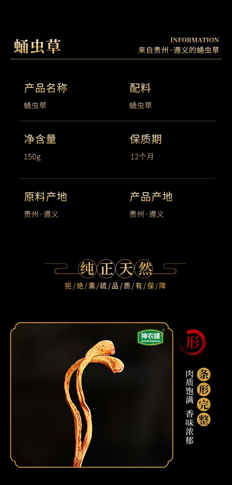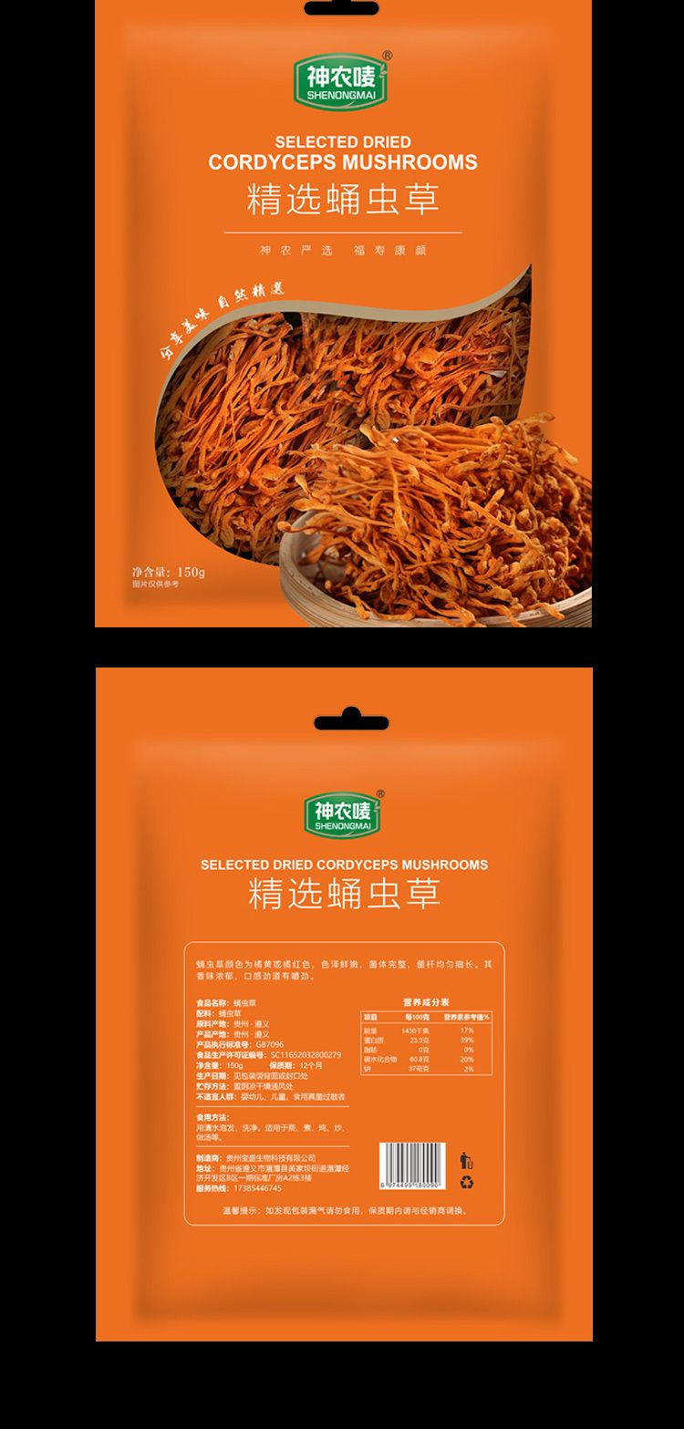 商品名称:神农唛精选蛹虫草150g*4袋