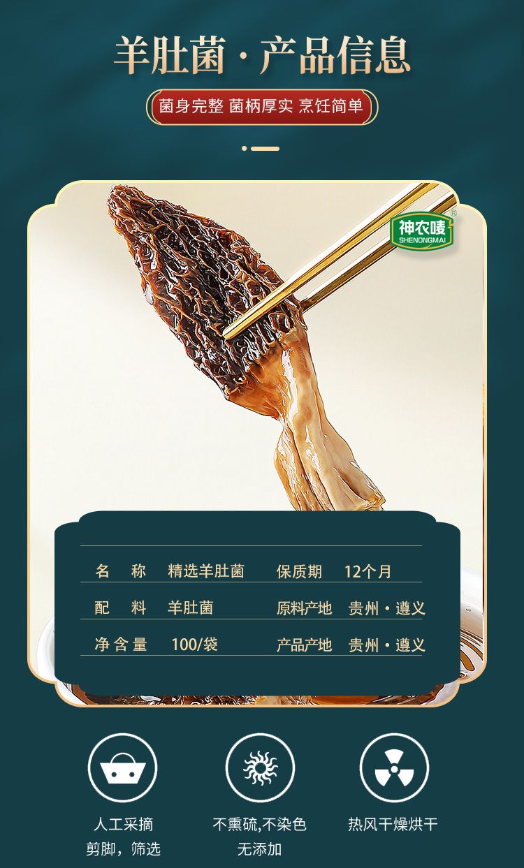 商品名称:神农唛精选羊肚菌100g*2盒