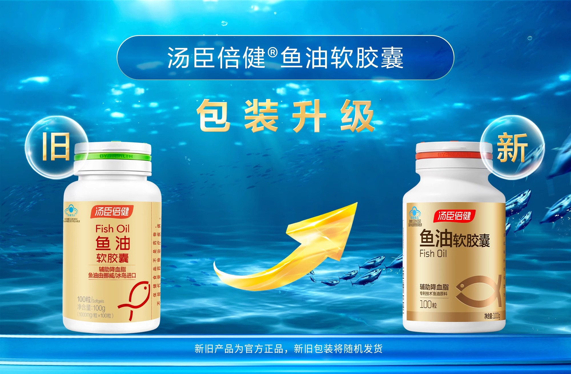 汤臣倍健鱼油软胶囊(100粒)可搭DHA鱼肝油大豆磷脂油 成人中老年人辅助降血脂