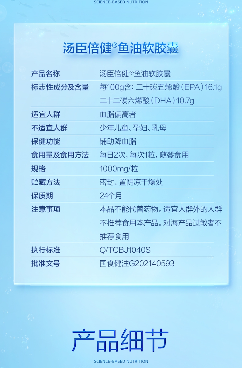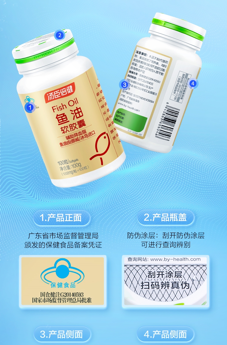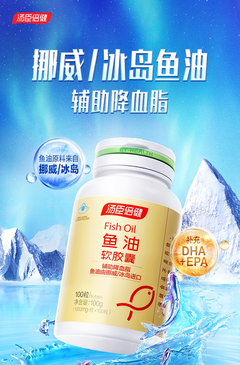 商品名称:汤臣倍健鱼油软胶囊(100粒)可搭DHA鱼肝油大豆磷脂油 成人中老年人辅助降血脂