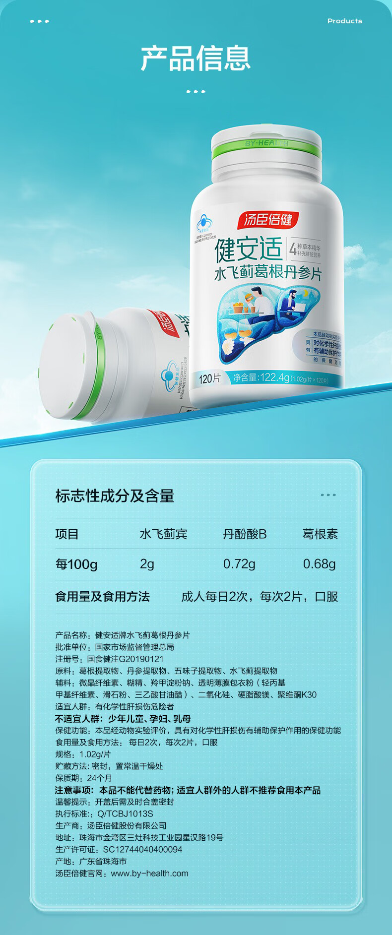 商品名称:汤臣倍健 健安适水飞蓟葛根丹参片彩盒装 120片