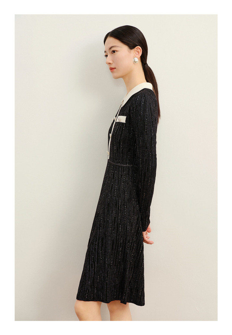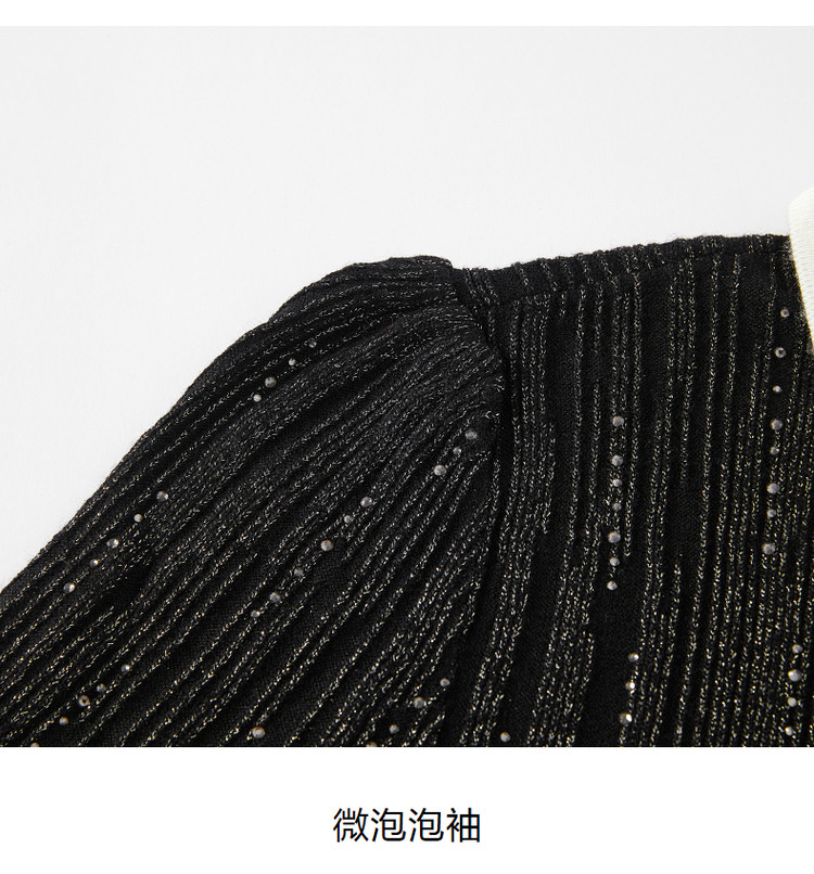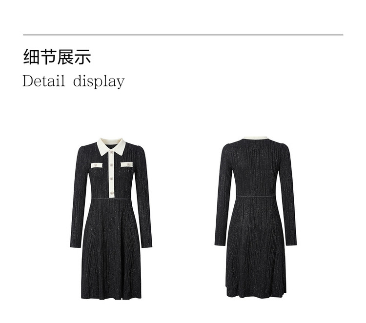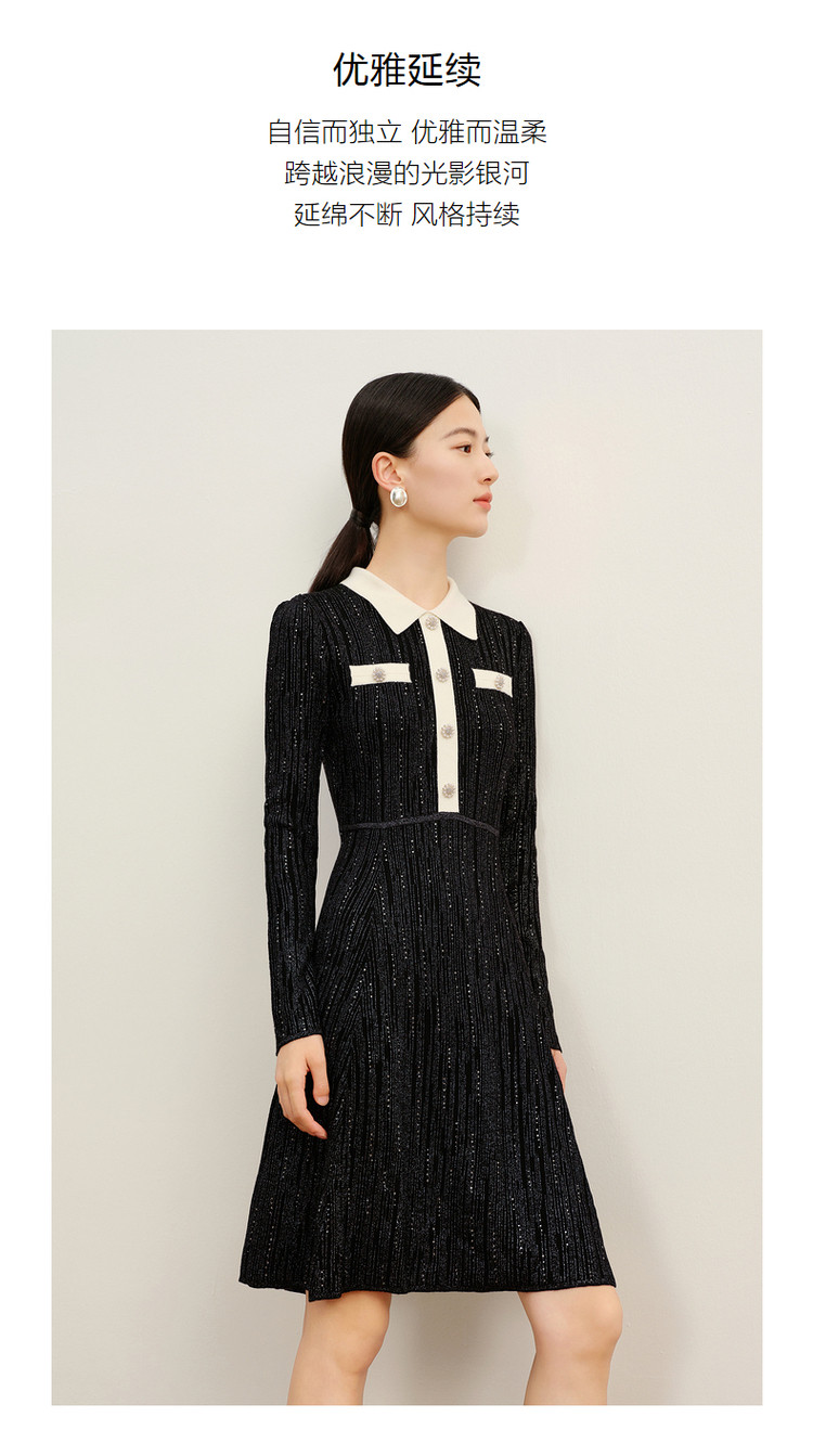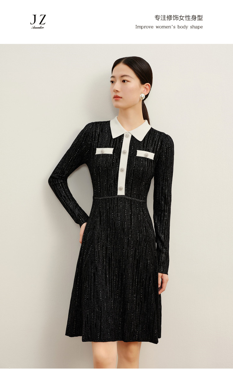 商品名称:玖姿旗下安娜蔻系列法式小香风翻领泡泡袖针织连衣裙女冬季 562572