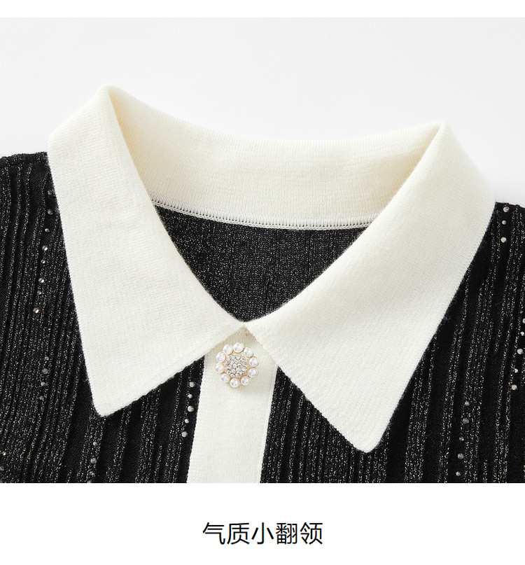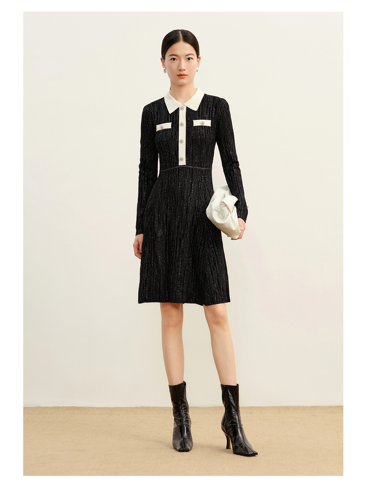 玖姿旗下安娜蔻系列法式小香风翻领泡泡袖针织连衣裙女冬季 562572