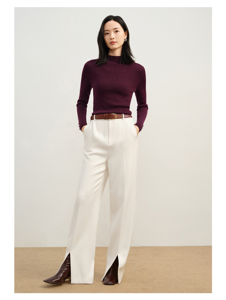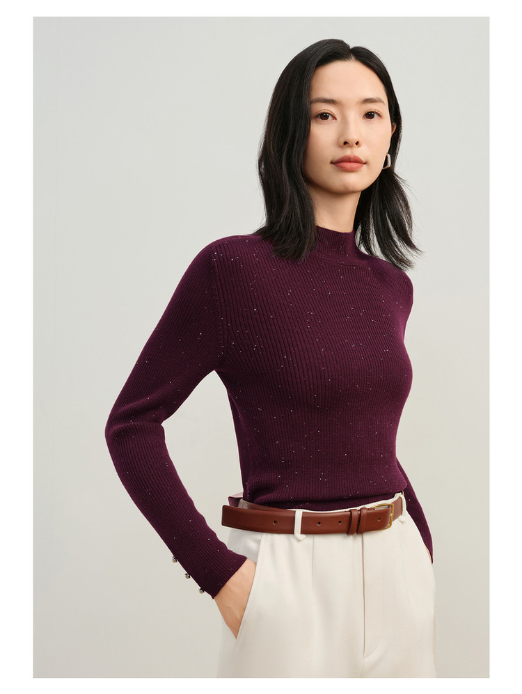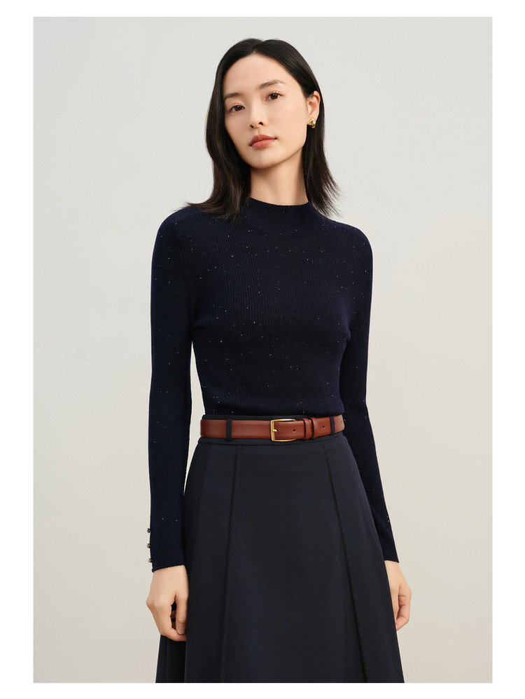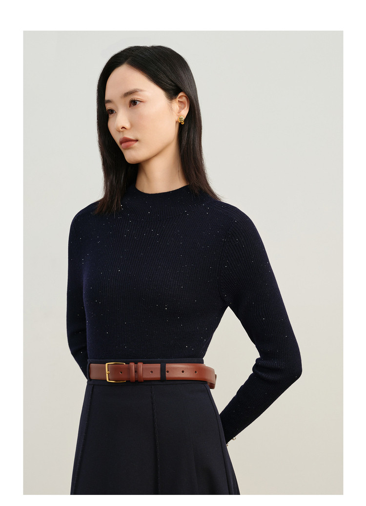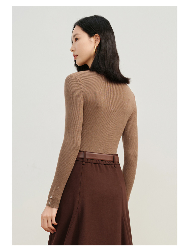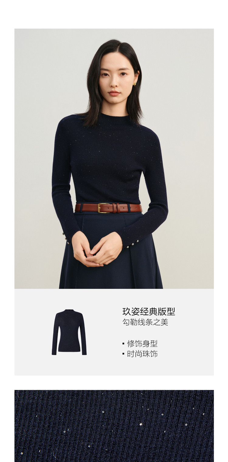 玖姿旗下安娜蔻系列优雅半高领修身柔软针织毛衫打底衫女冬季 277260
