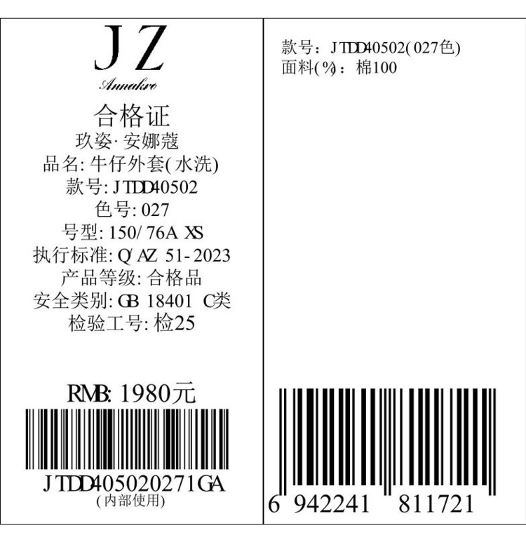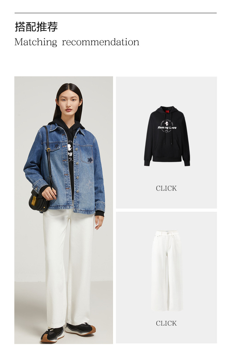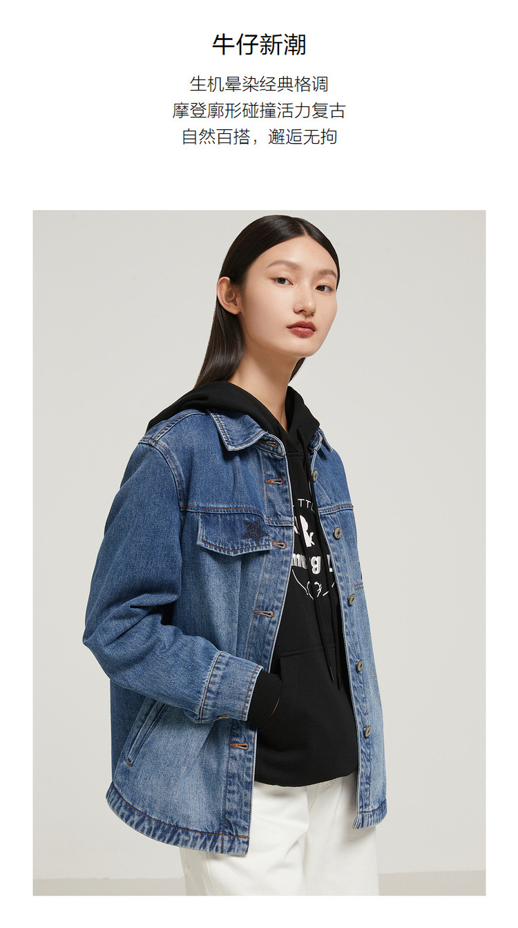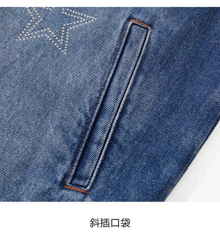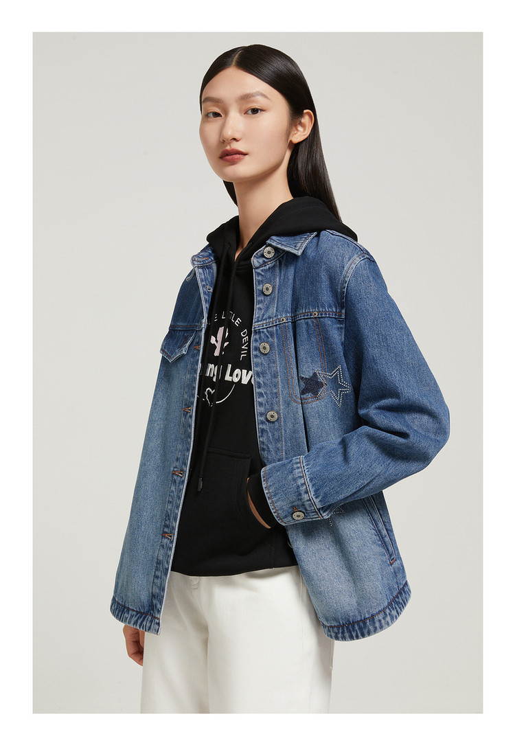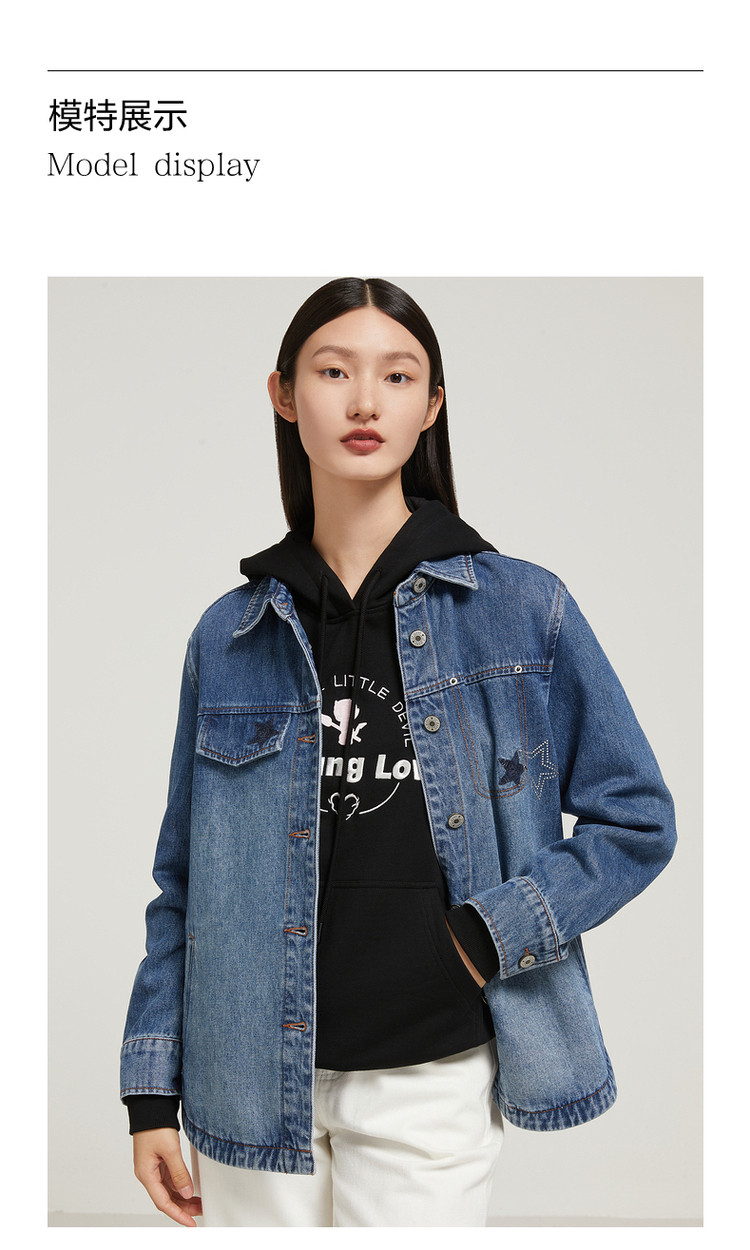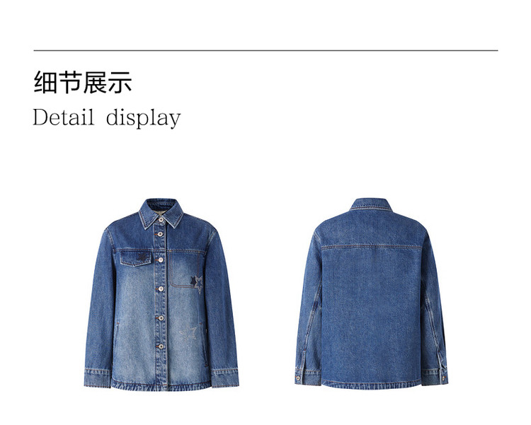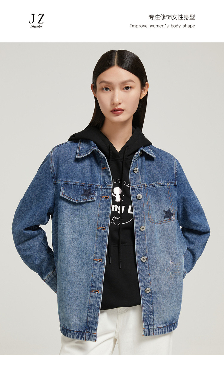 商品名称:玖姿旗下安娜蔻系列星星烫钻宽松渐变牛仔丹宁休闲外套女 068044