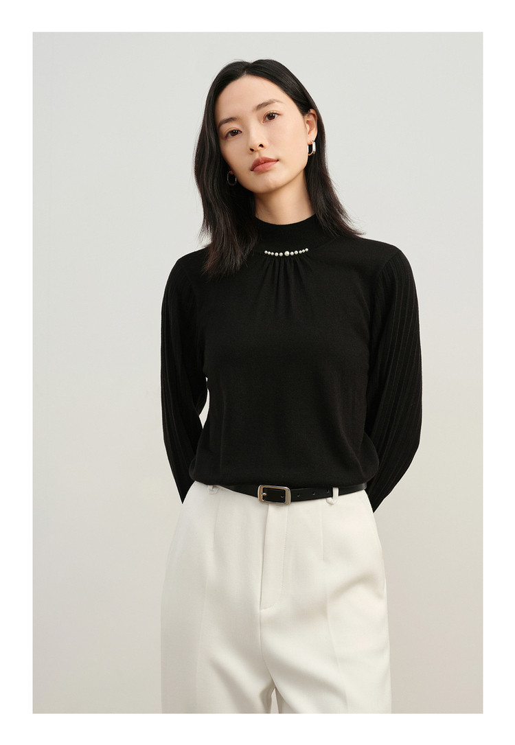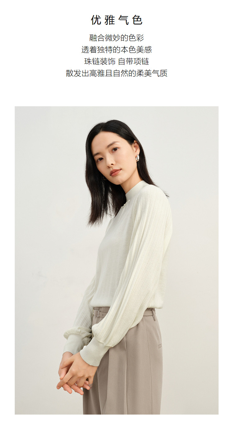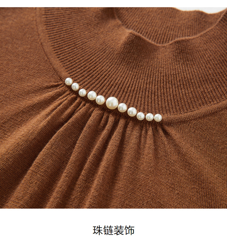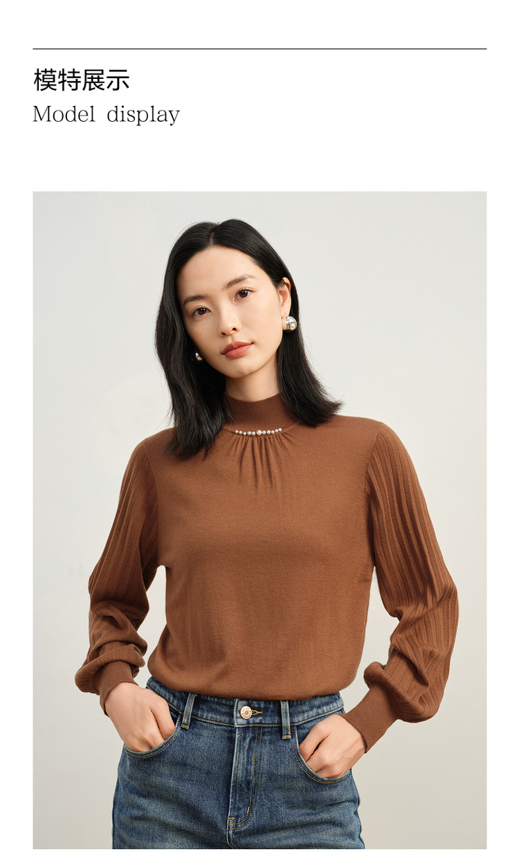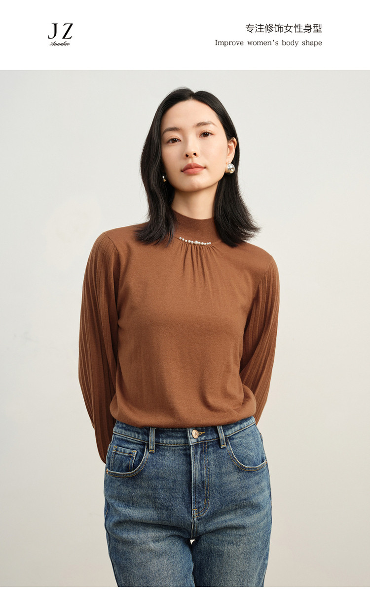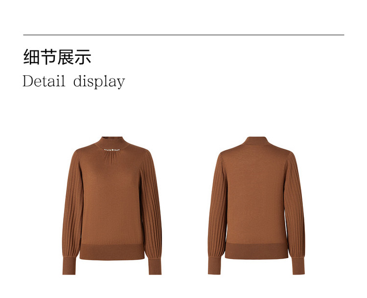 商品名称:玖姿旗下安娜蔻系列雅致美拉德色系串珠半高领针织毛衣女冬季 187404