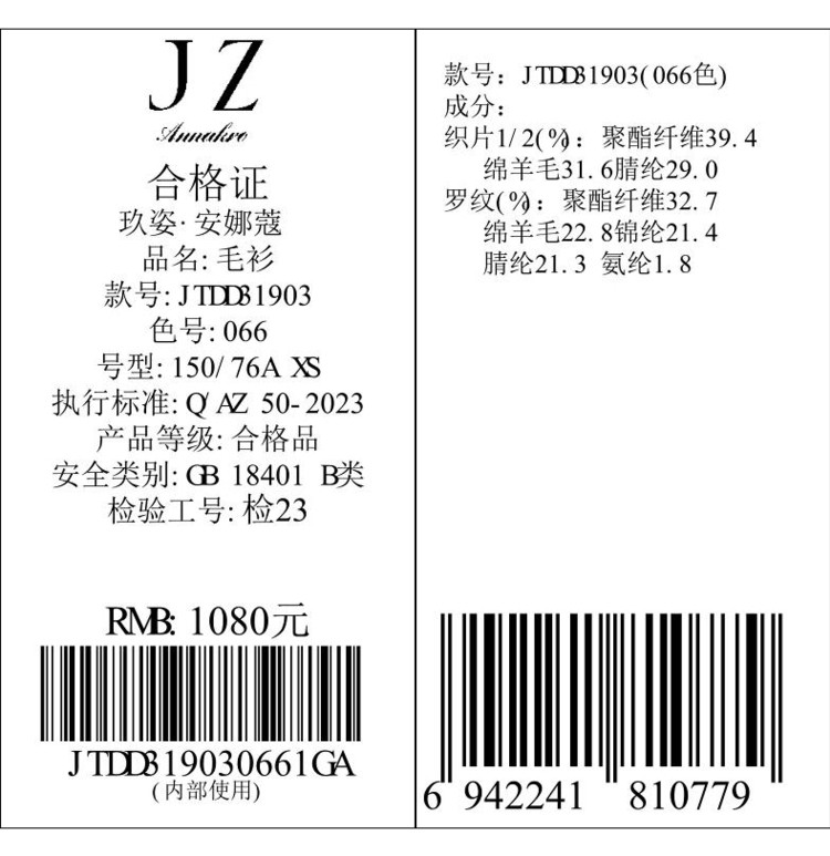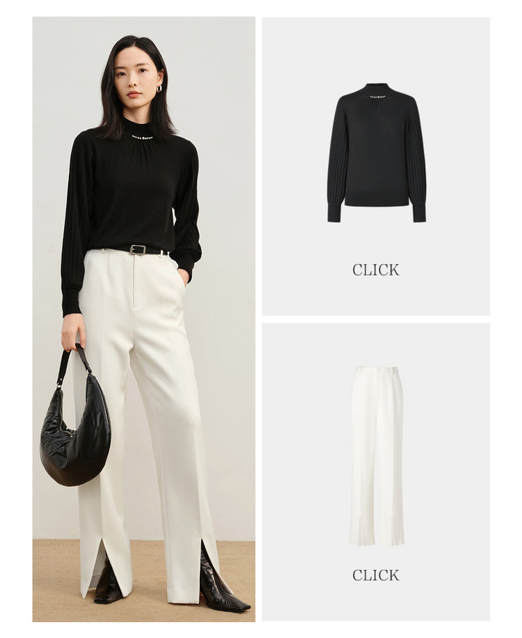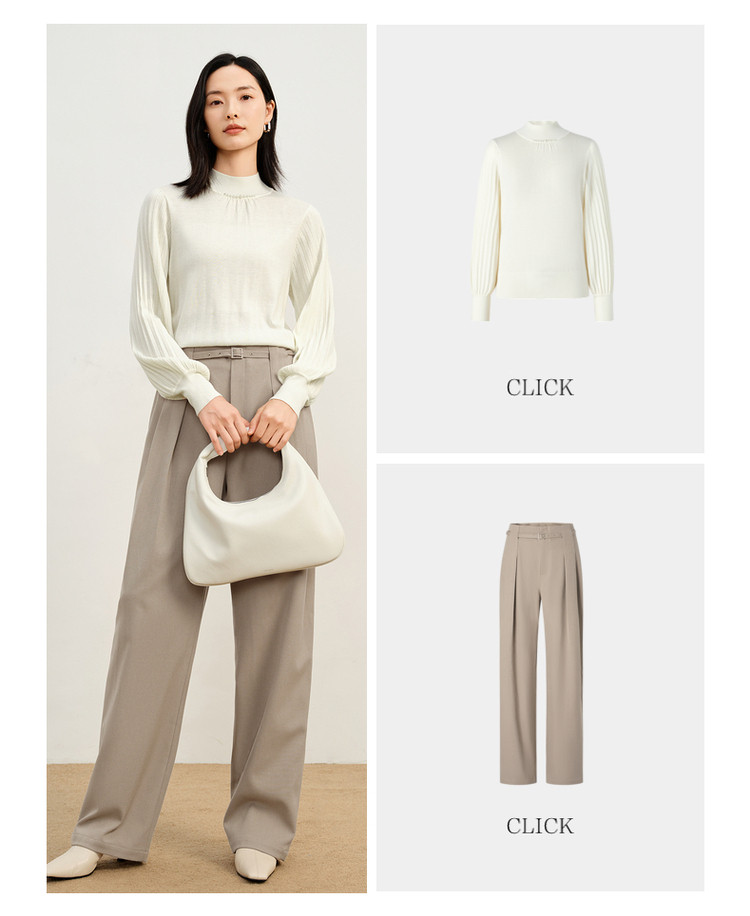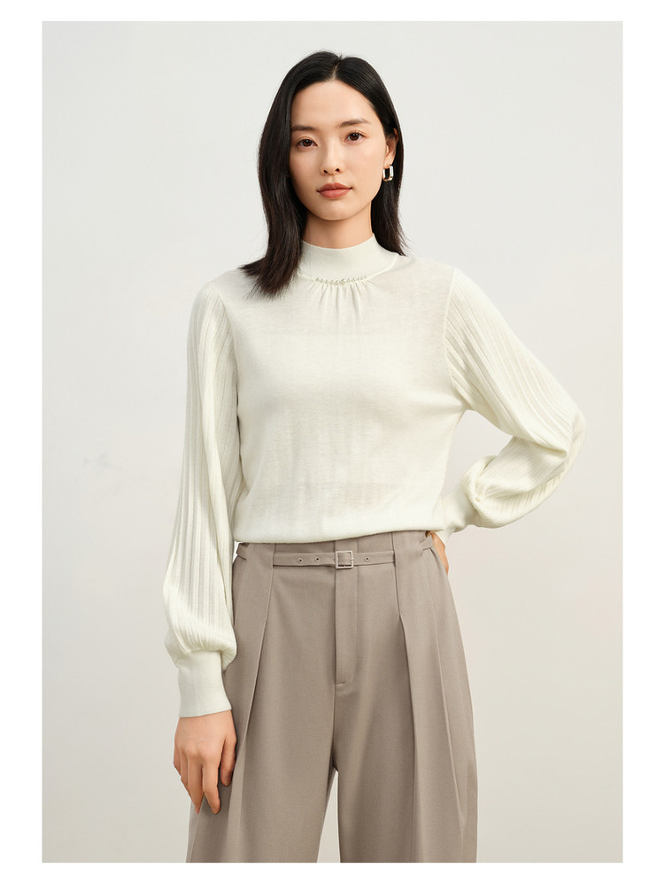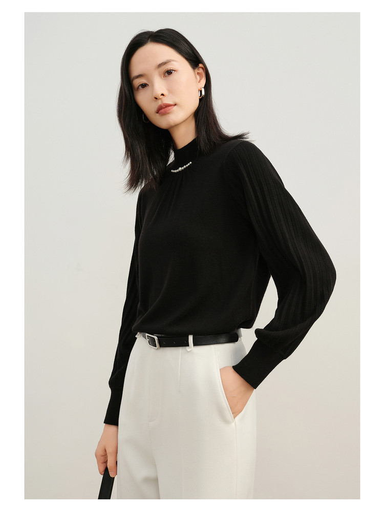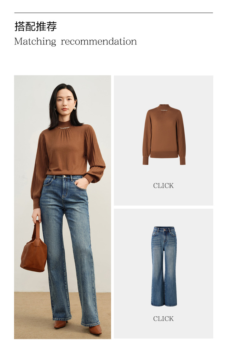 商品名称:玖姿旗下安娜蔻系列雅致美拉德色系串珠半高领针织毛衣女冬季 187404