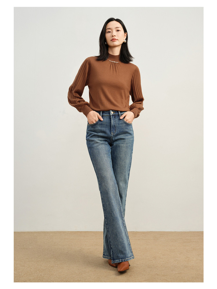 玖姿旗下安娜蔻系列雅致美拉德色系串珠半高领针织毛衣女冬季 187404