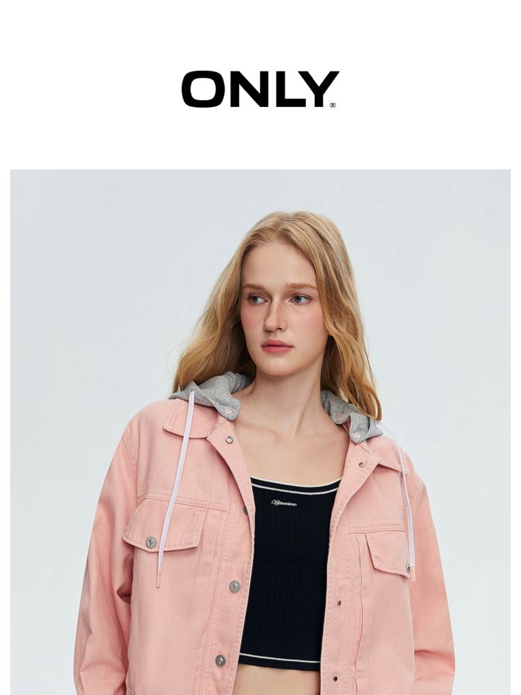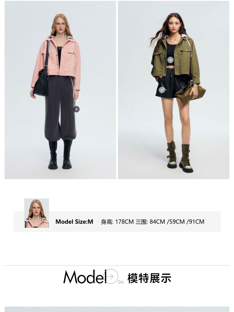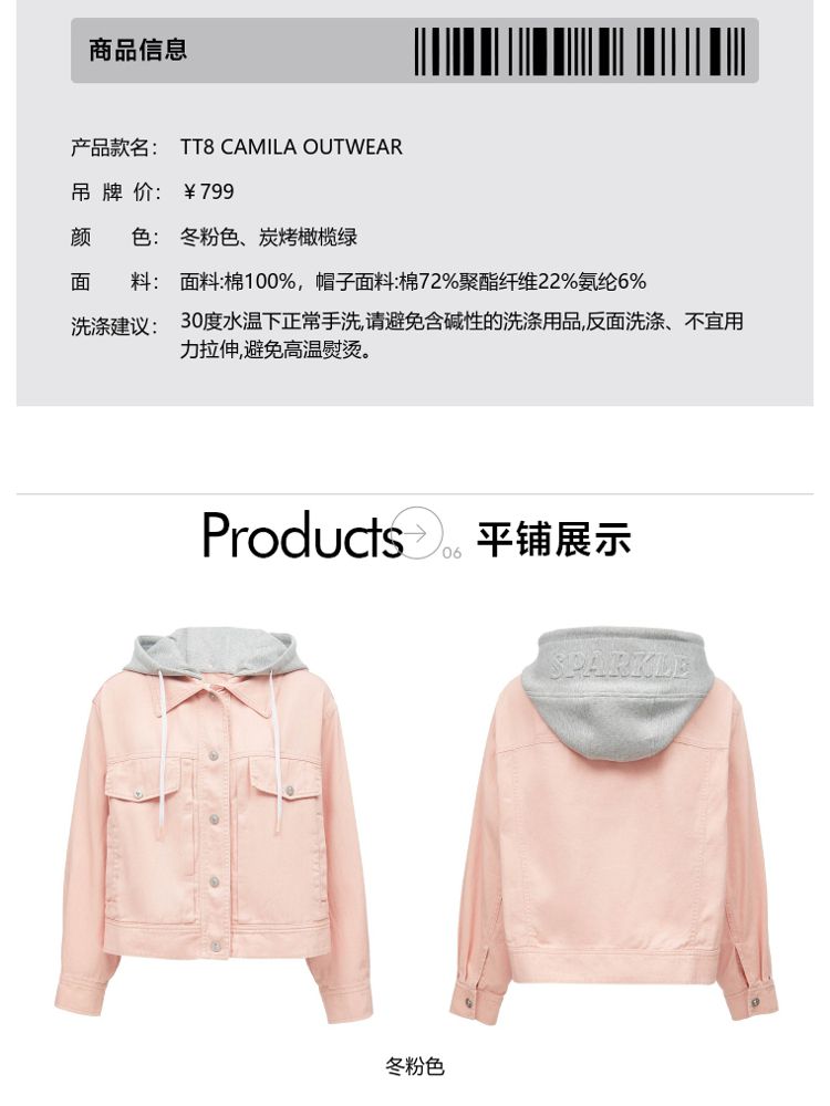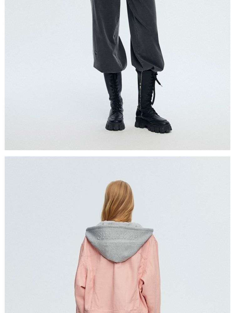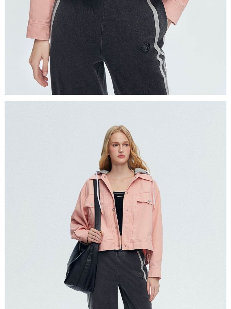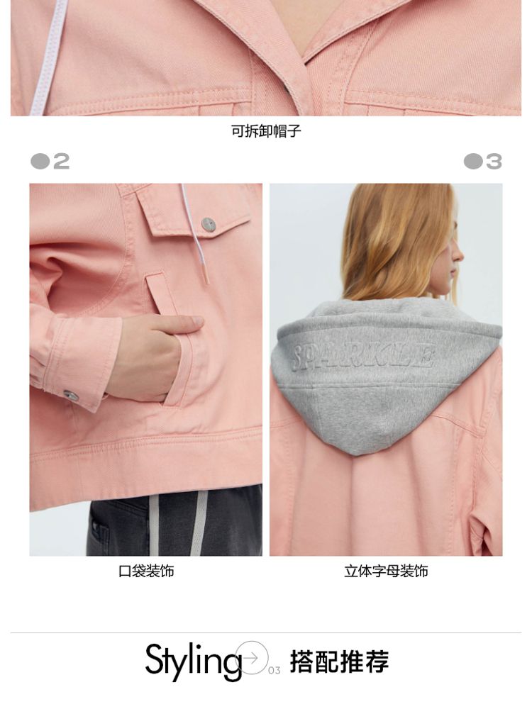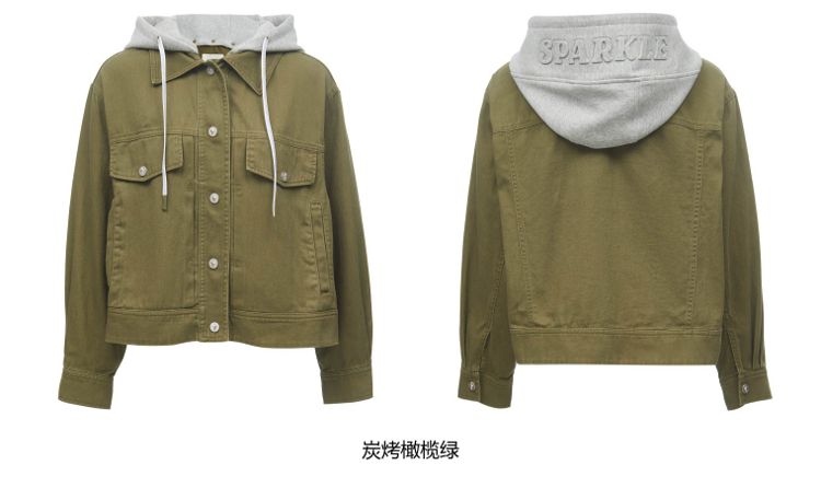 商品名称:【立体字母装饰】春季夏简约休闲拼接落肩连帽短款外套女 437018