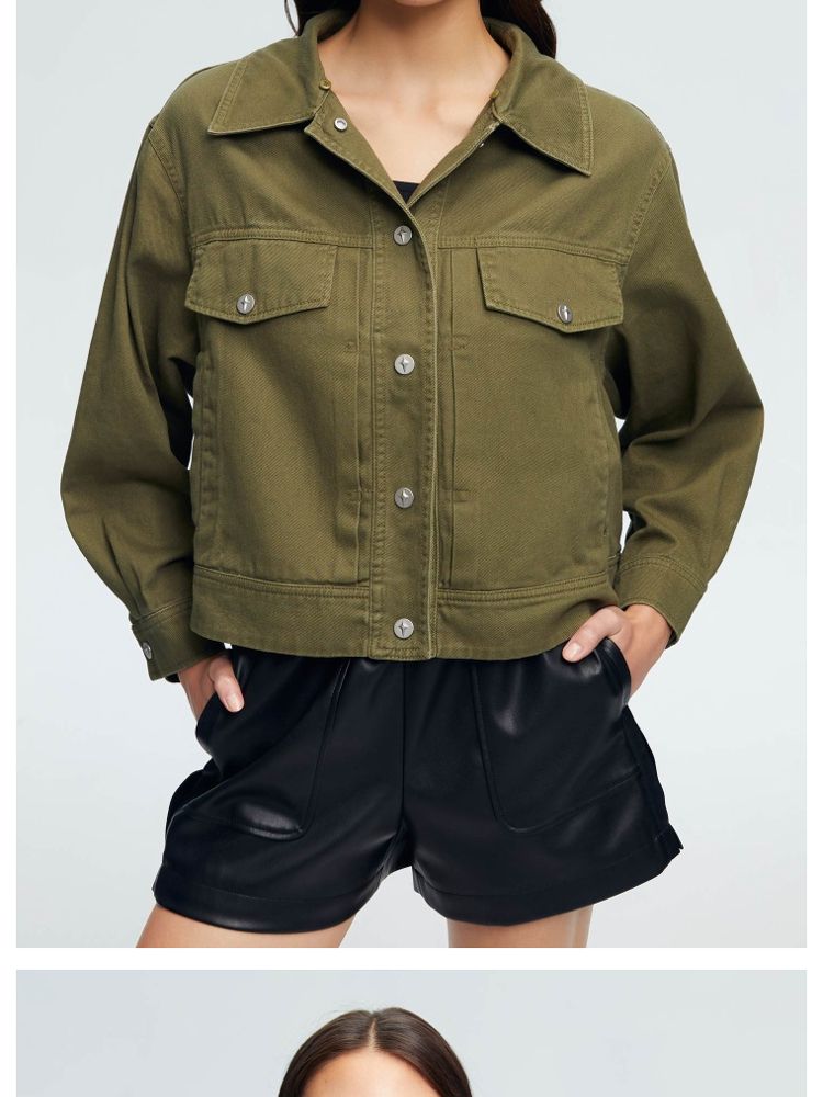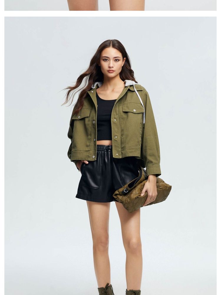 【立体字母装饰】春季夏简约休闲拼接落肩连帽短款外套女 437018