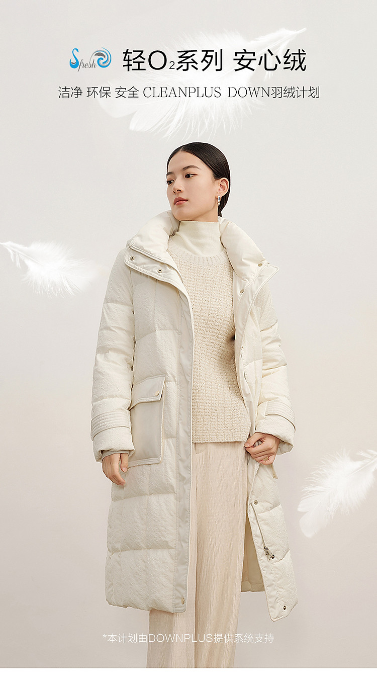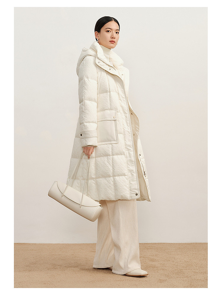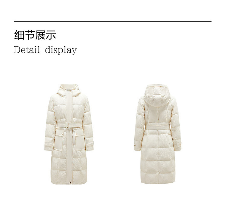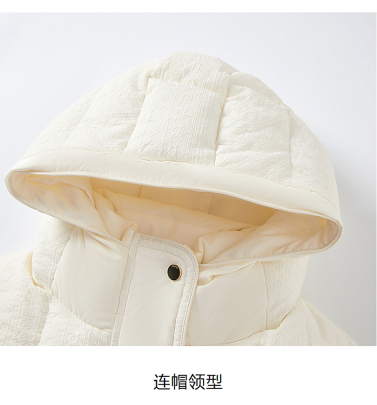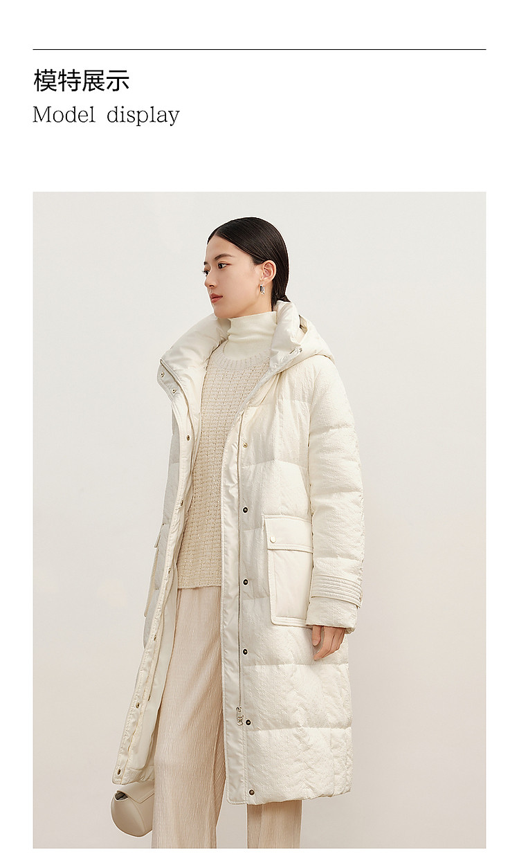 商品名称:玖姿旗下安娜蔻系列肌理温柔风帽领羽绒长款女冬季 865420