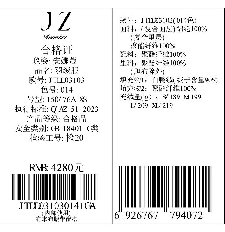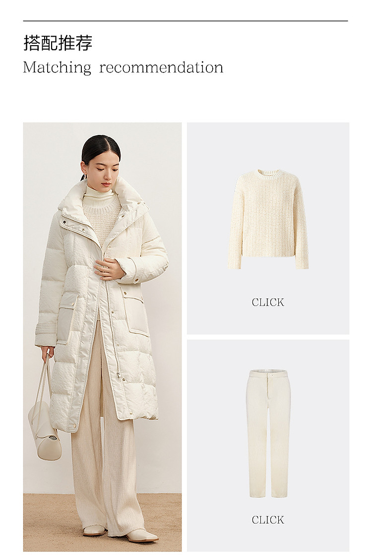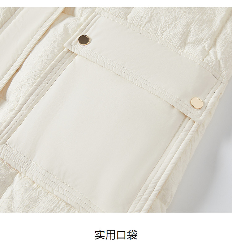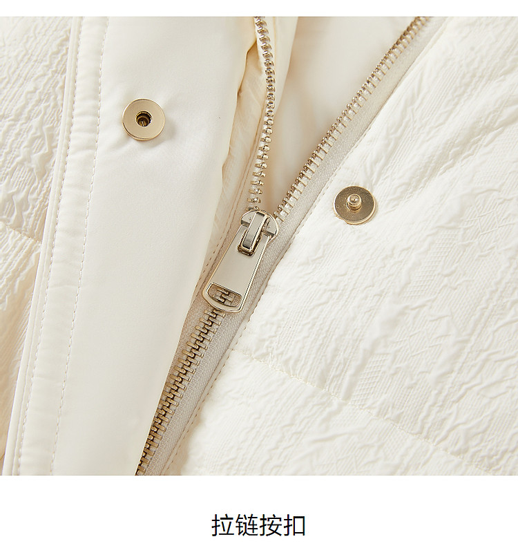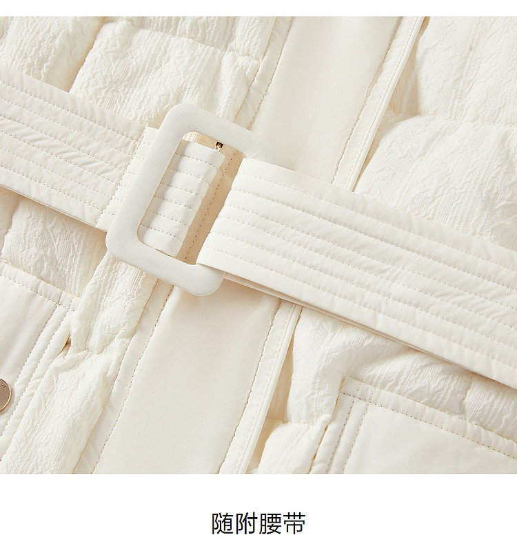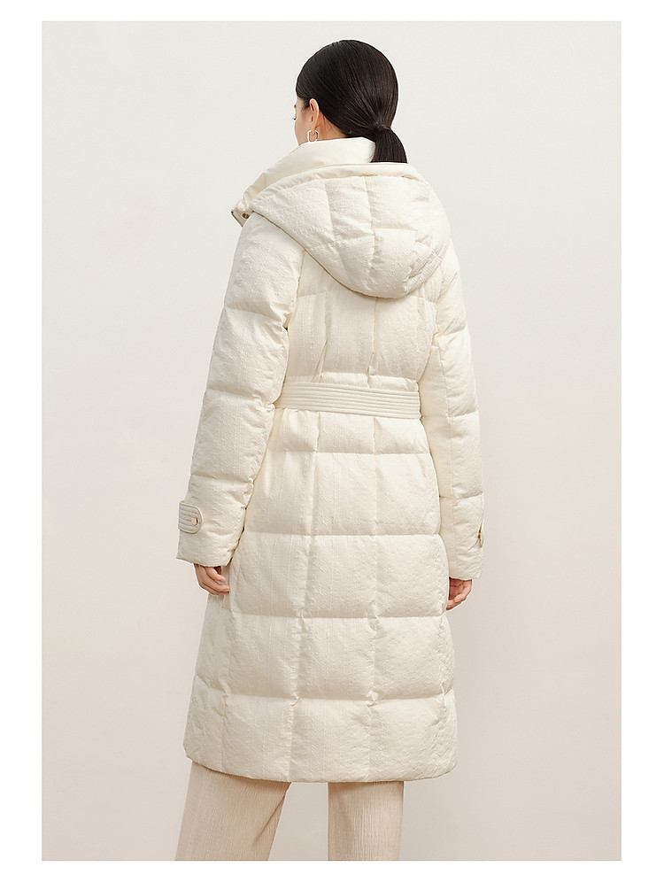 商品名称:玖姿旗下安娜蔻系列肌理温柔风帽领羽绒长款女冬季 865420