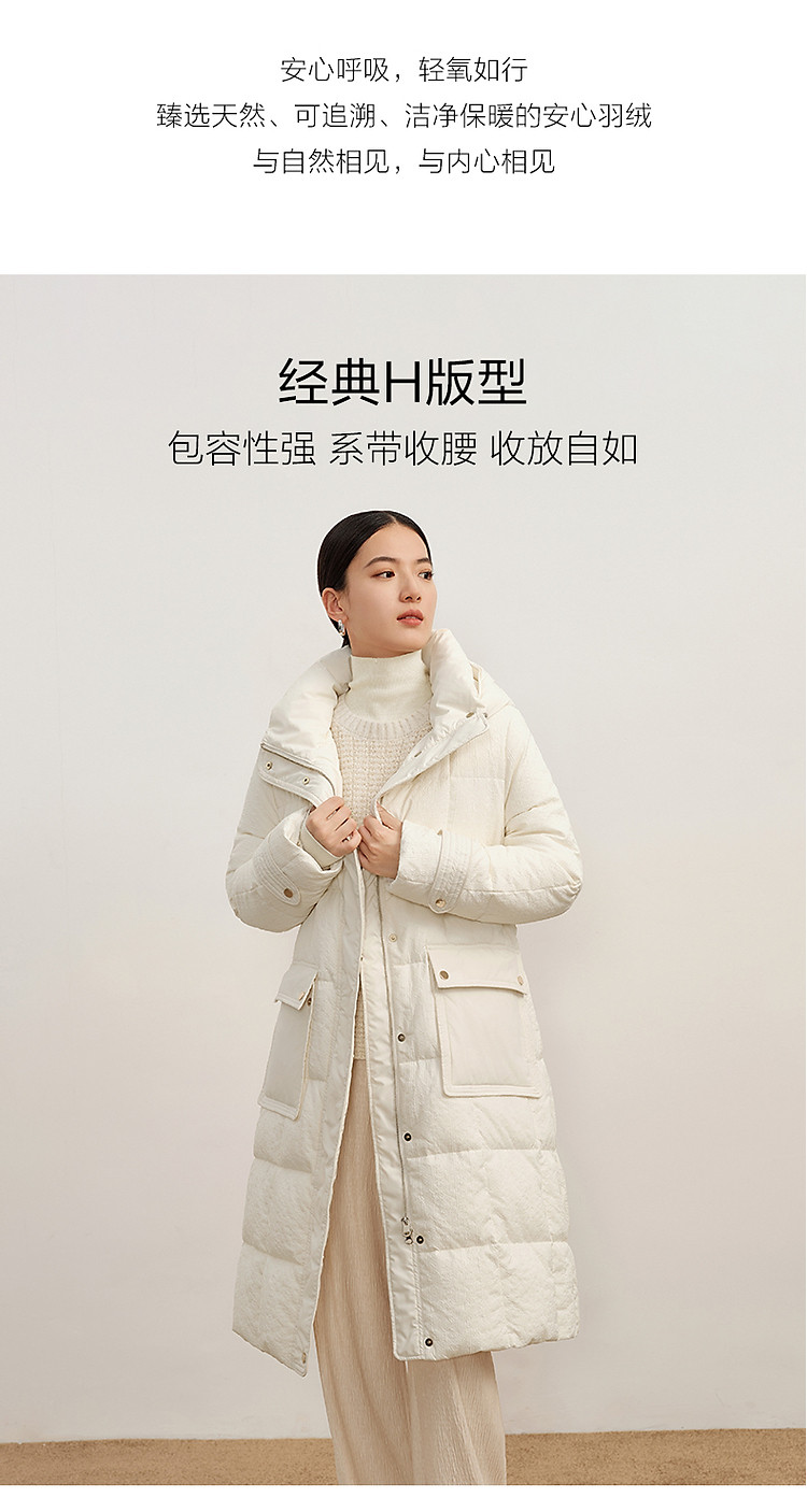 玖姿旗下安娜蔻系列肌理温柔风帽领羽绒长款女冬季 865420