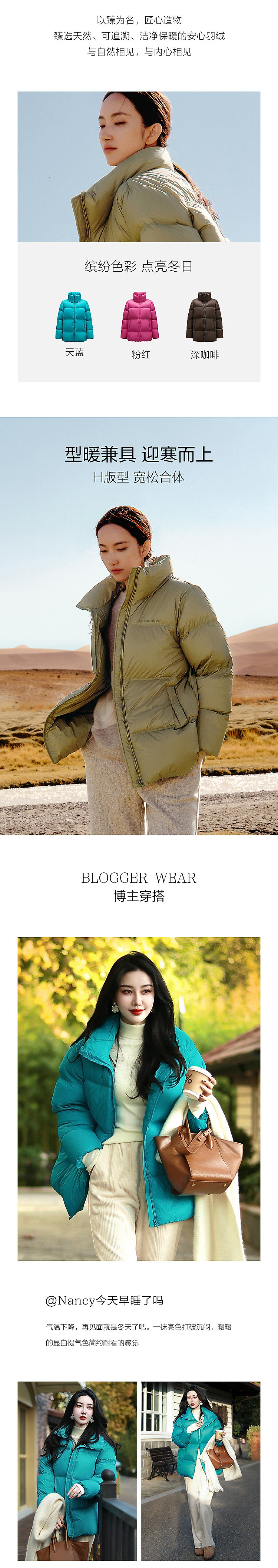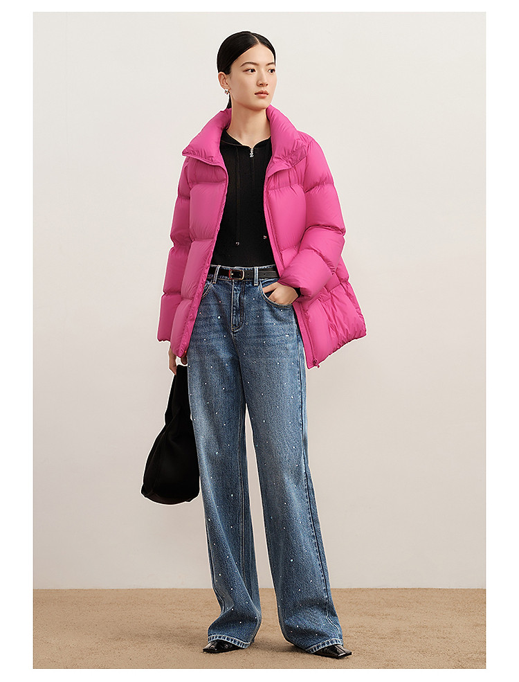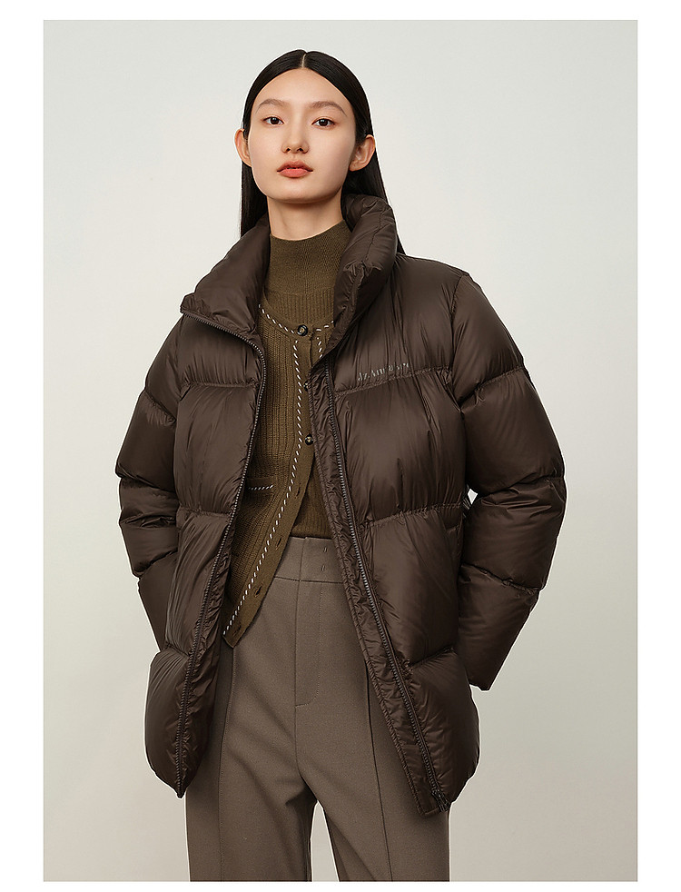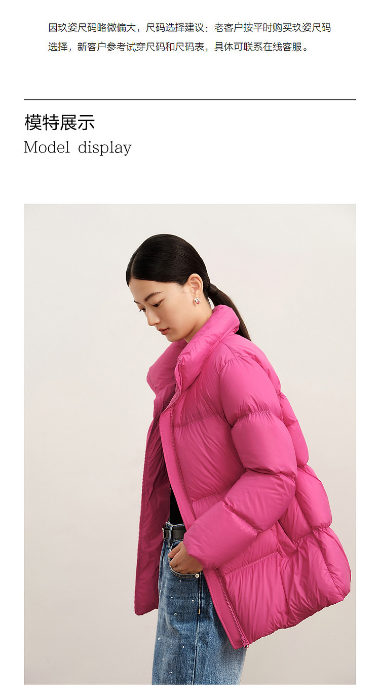 玖姿旗下安娜蔻系列通勤休闲立领直筒一手长白鸭绒羽绒女冬季 653388