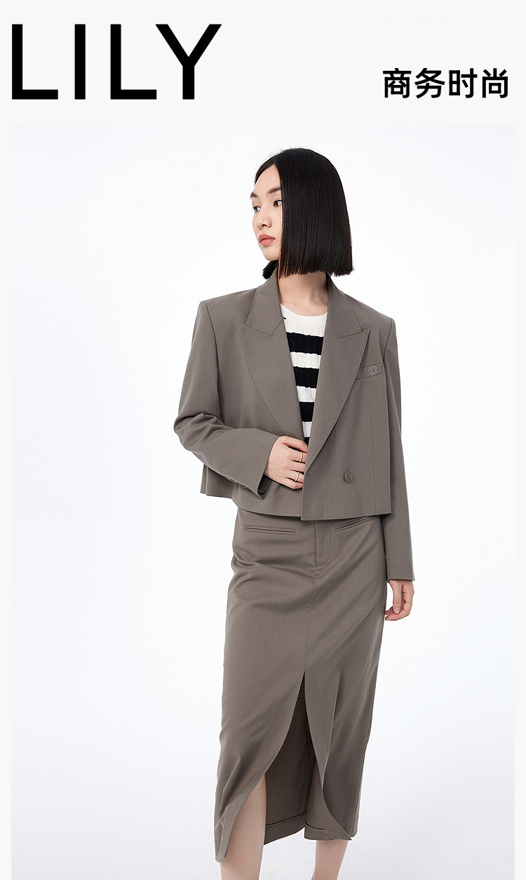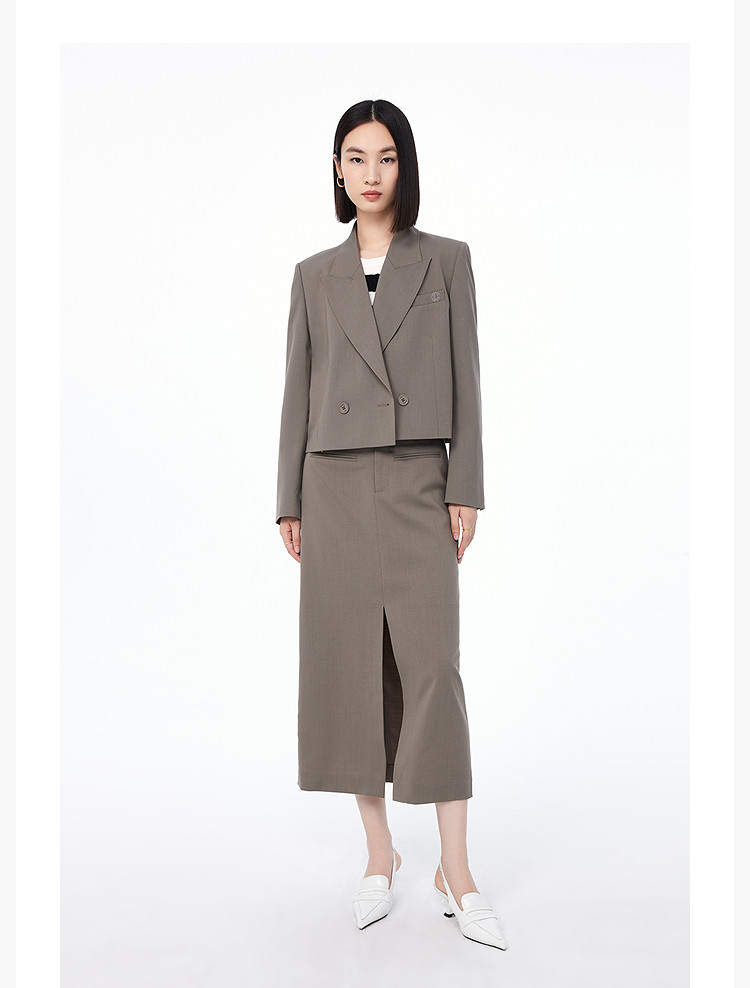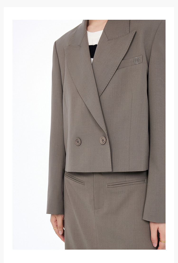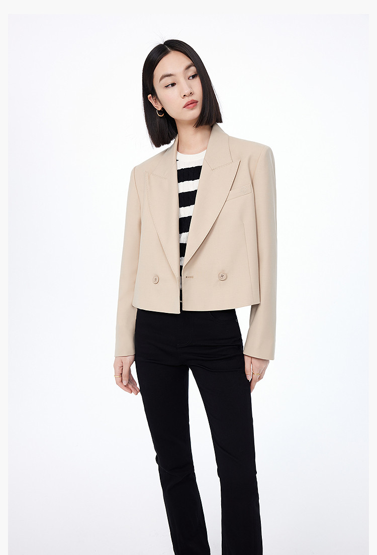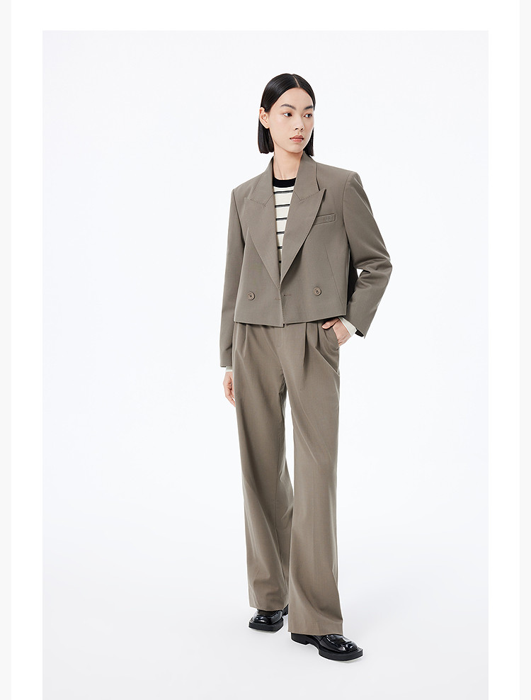 【绵羊毛】西服外套女春季都市通勤时尚双排扣百搭西装外套 816475